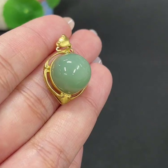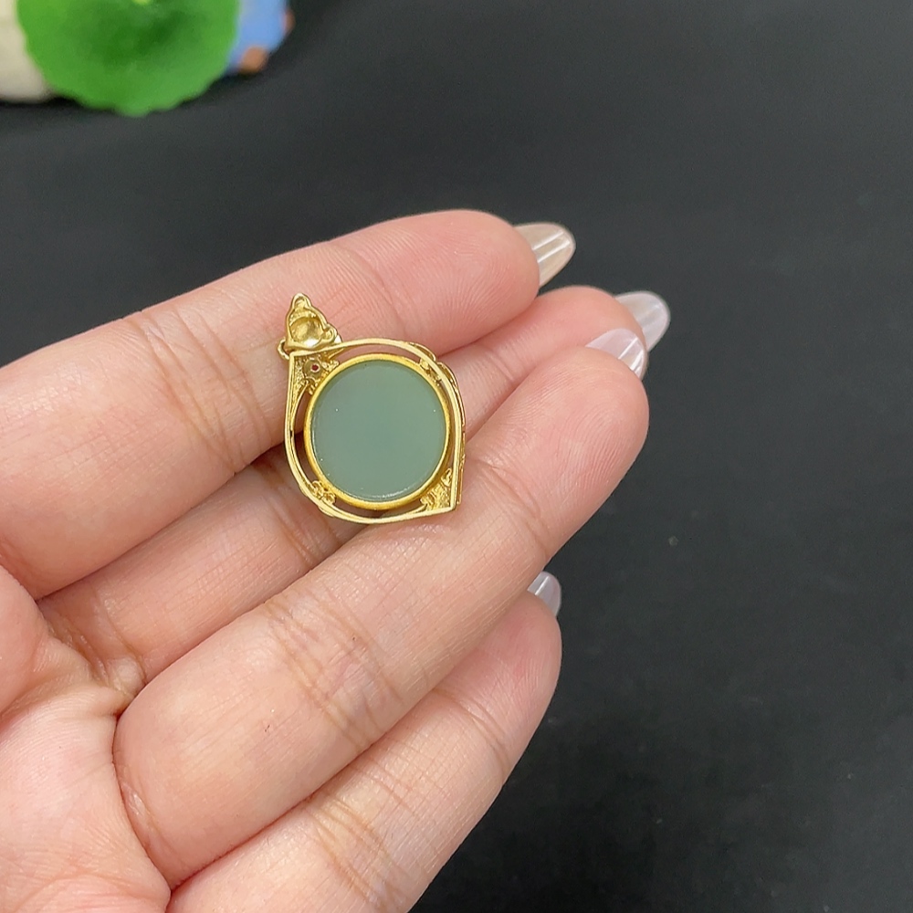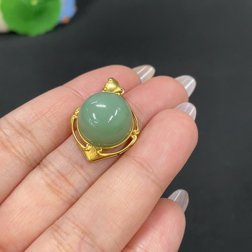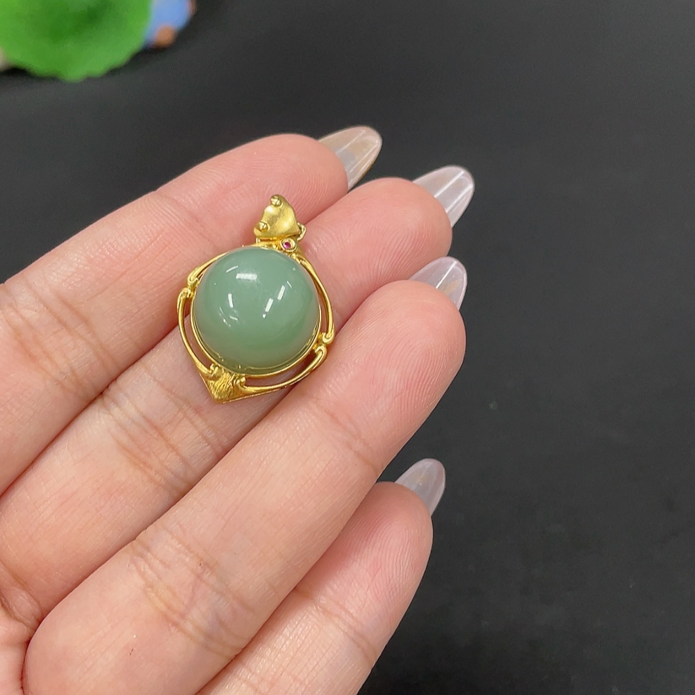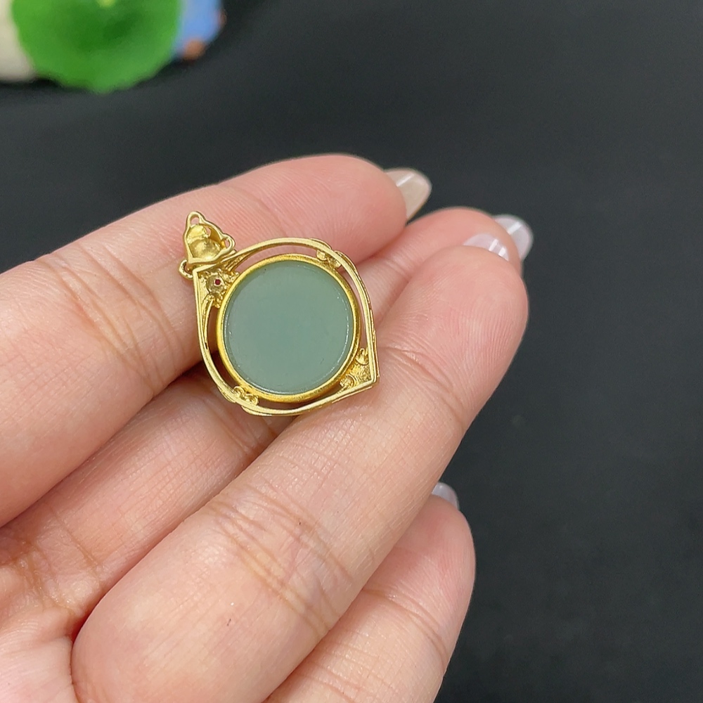 Hetian Jade Jasper Inlaid Pendant, 18k Gold, Total Weight Approximately 5.2g