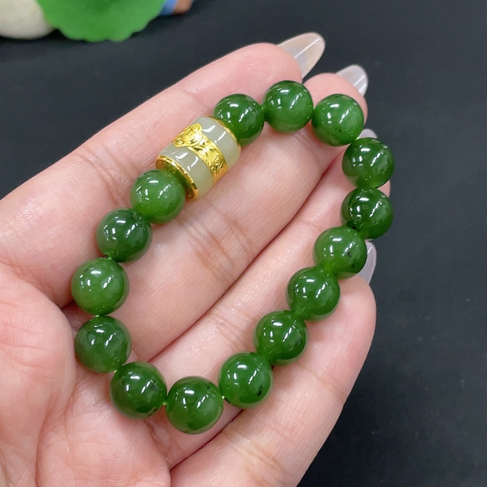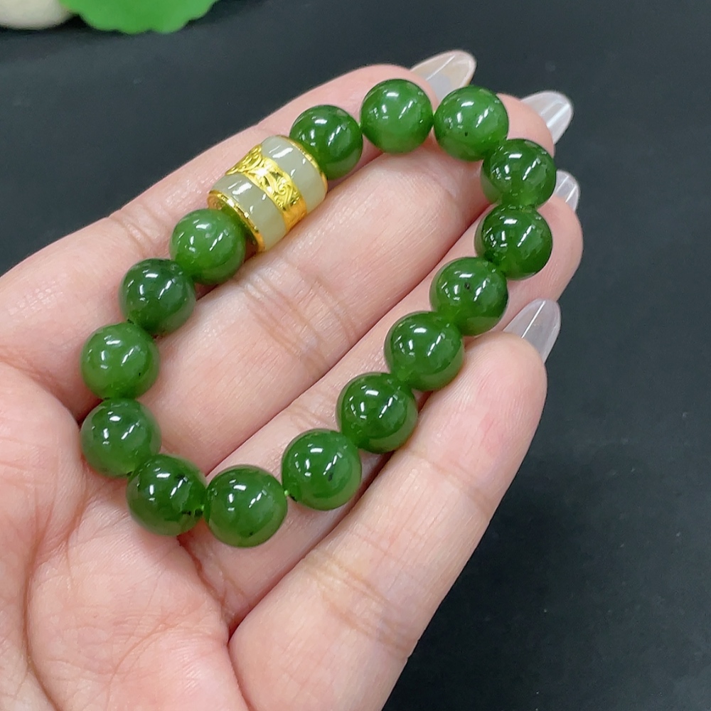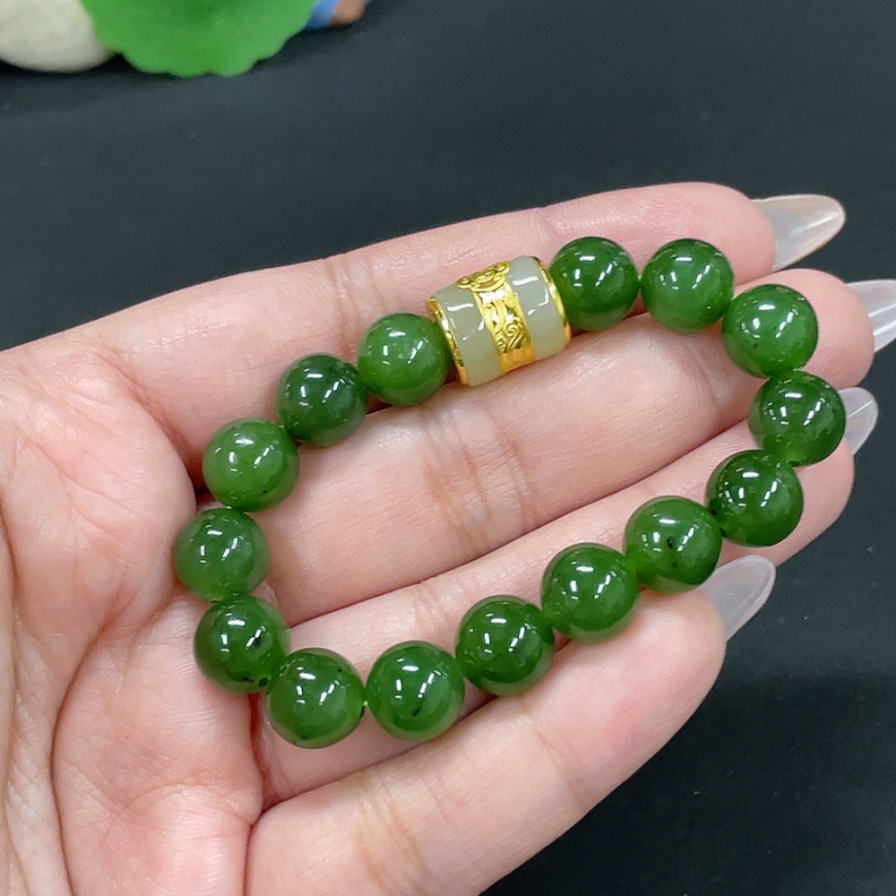 Hetian Jade Jasper Bracelet, approx. 9.2mm, no hallmark, gold content tested 89%, total weight approx. 22.4g