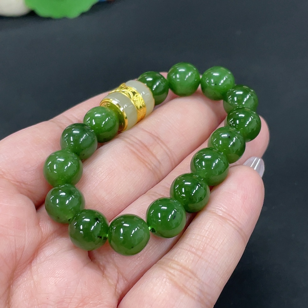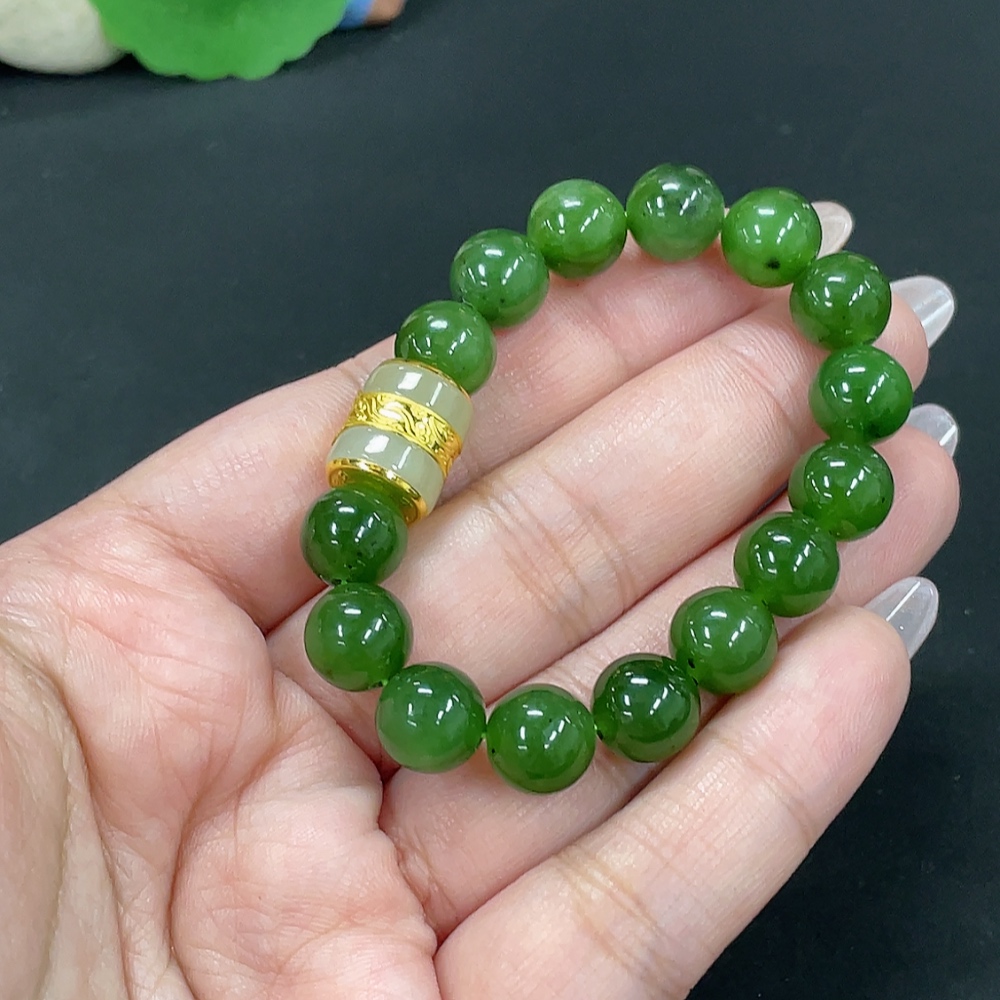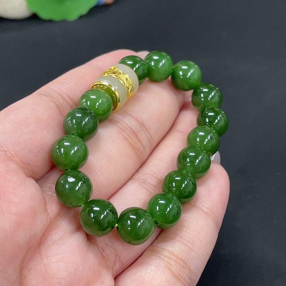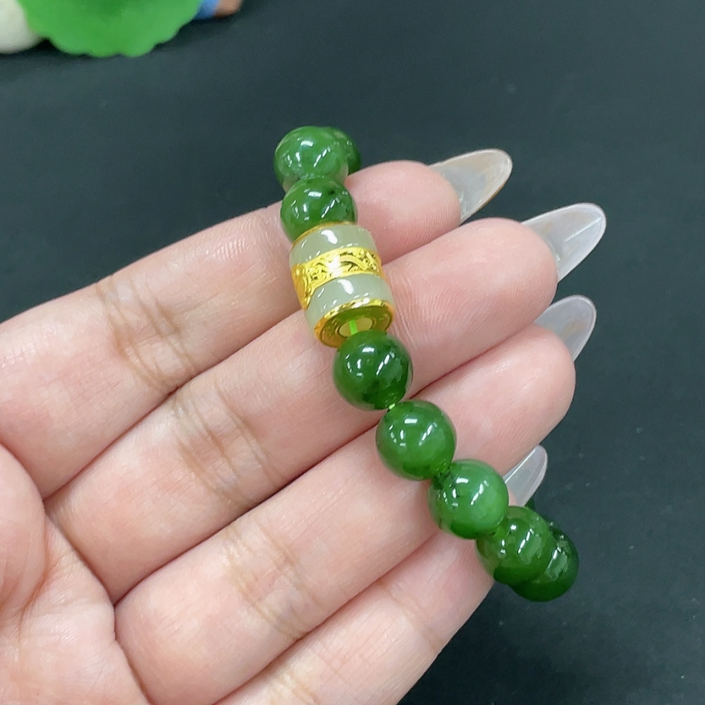Hetian Jade Jasper Bracelet, approx. 9.2mm, no hallmark, gold content tested 89%, total weight approx. 22.4g