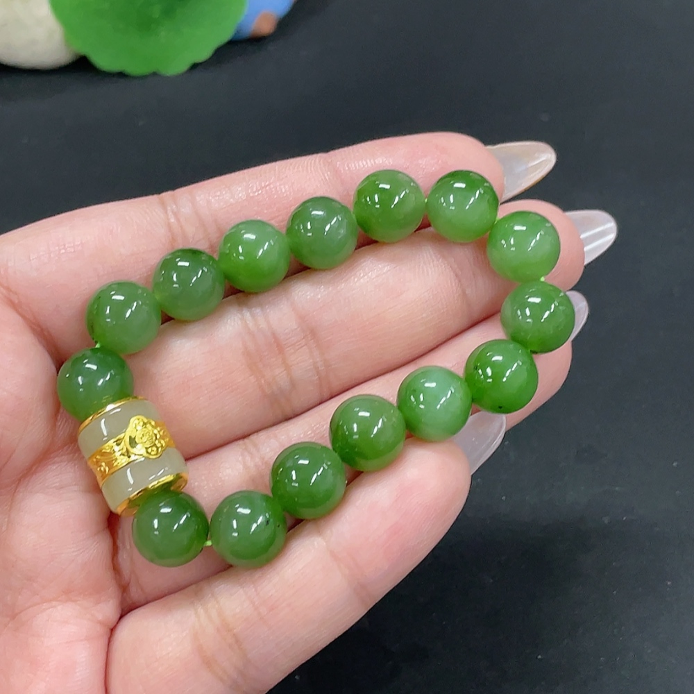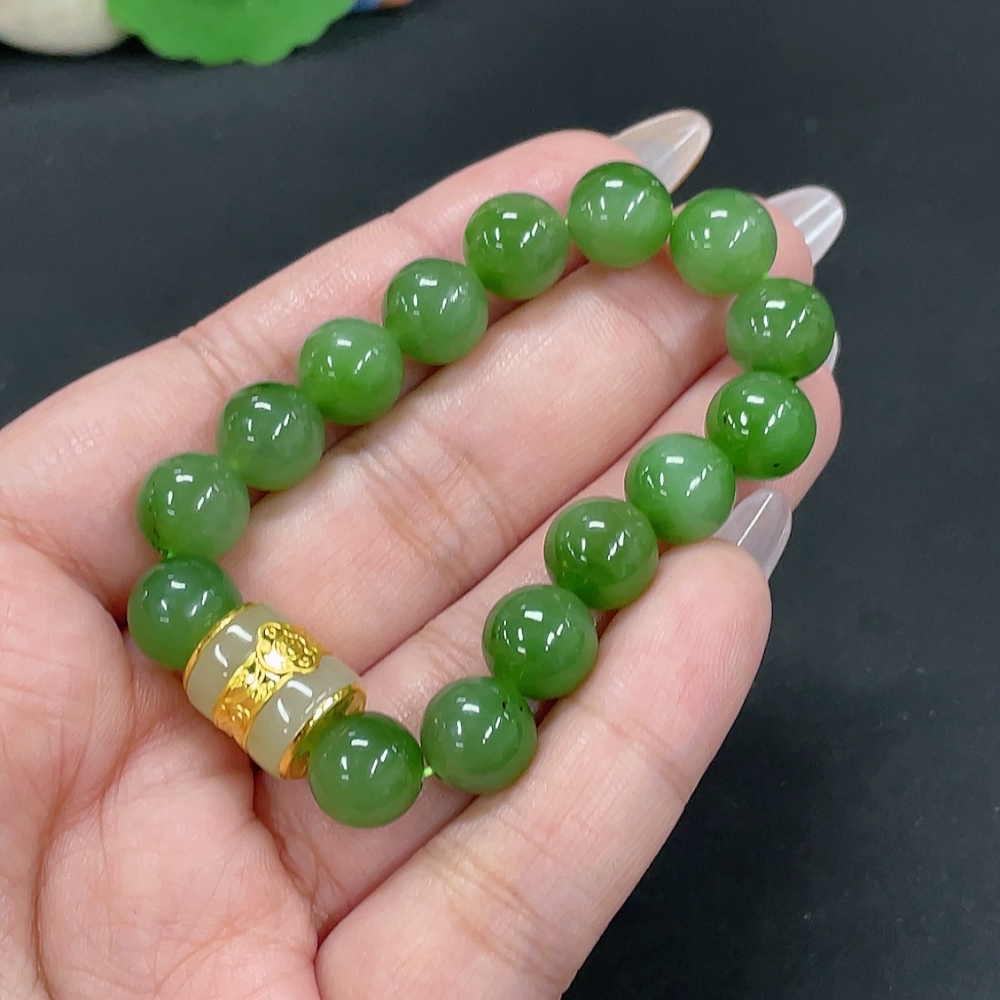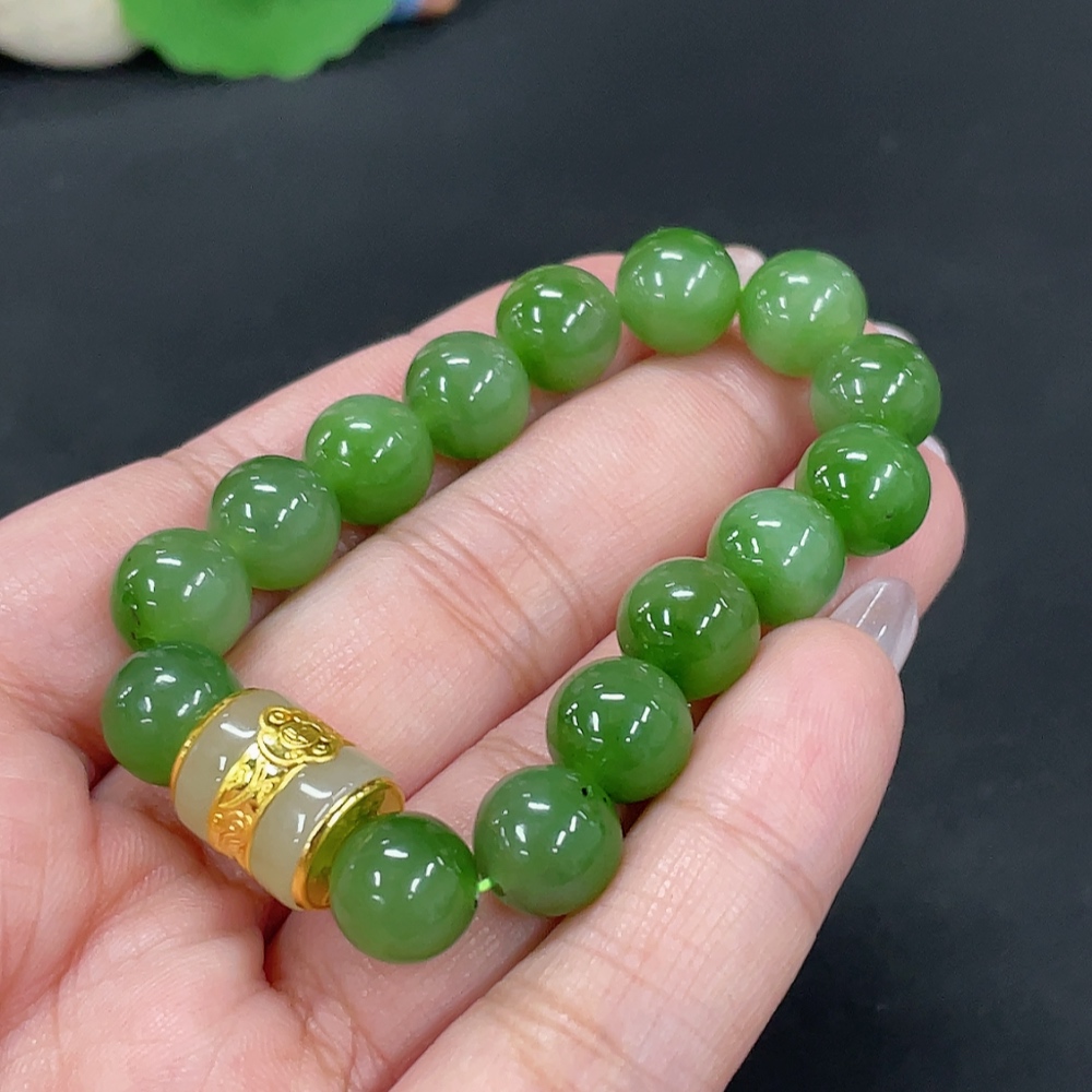 Hetian Jade Jasper Bracelet, approx. 9.4mm, no imprint, gold content tested 89%, total weight approx. 23g