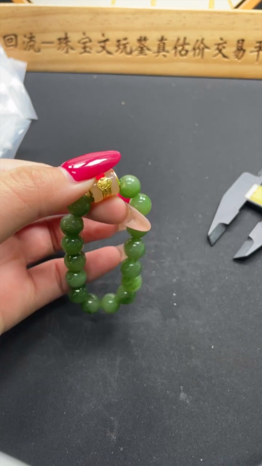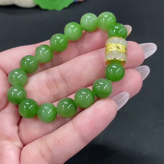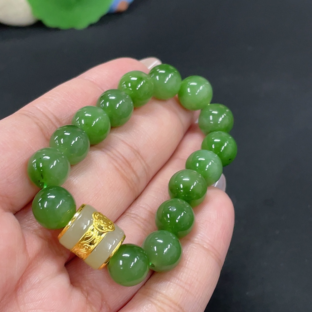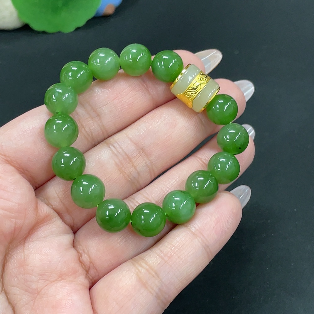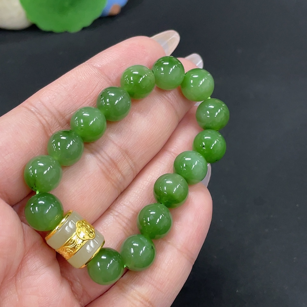 Hetian Jade Jasper Bracelet, approx. 9.4mm, no imprint, gold content tested 89%, total weight approx. 23g