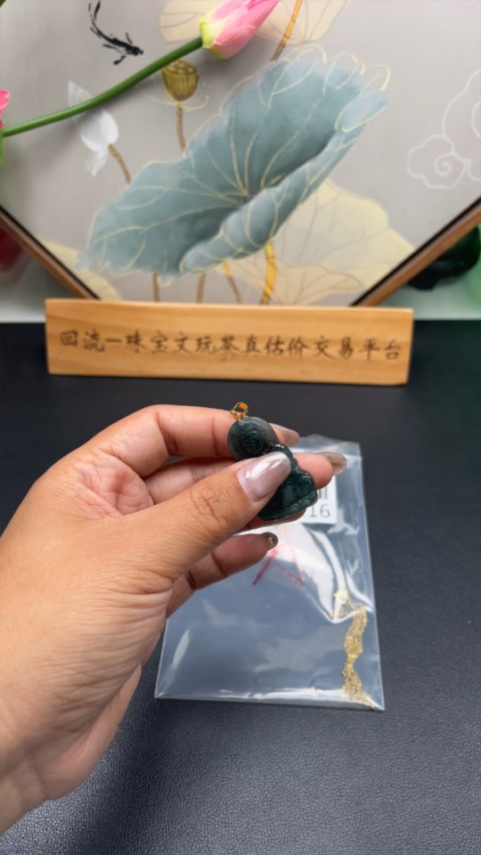 Jadeite Guanyin Pendant Non-Gold Inlaid Total Weight Approx. 7.5g