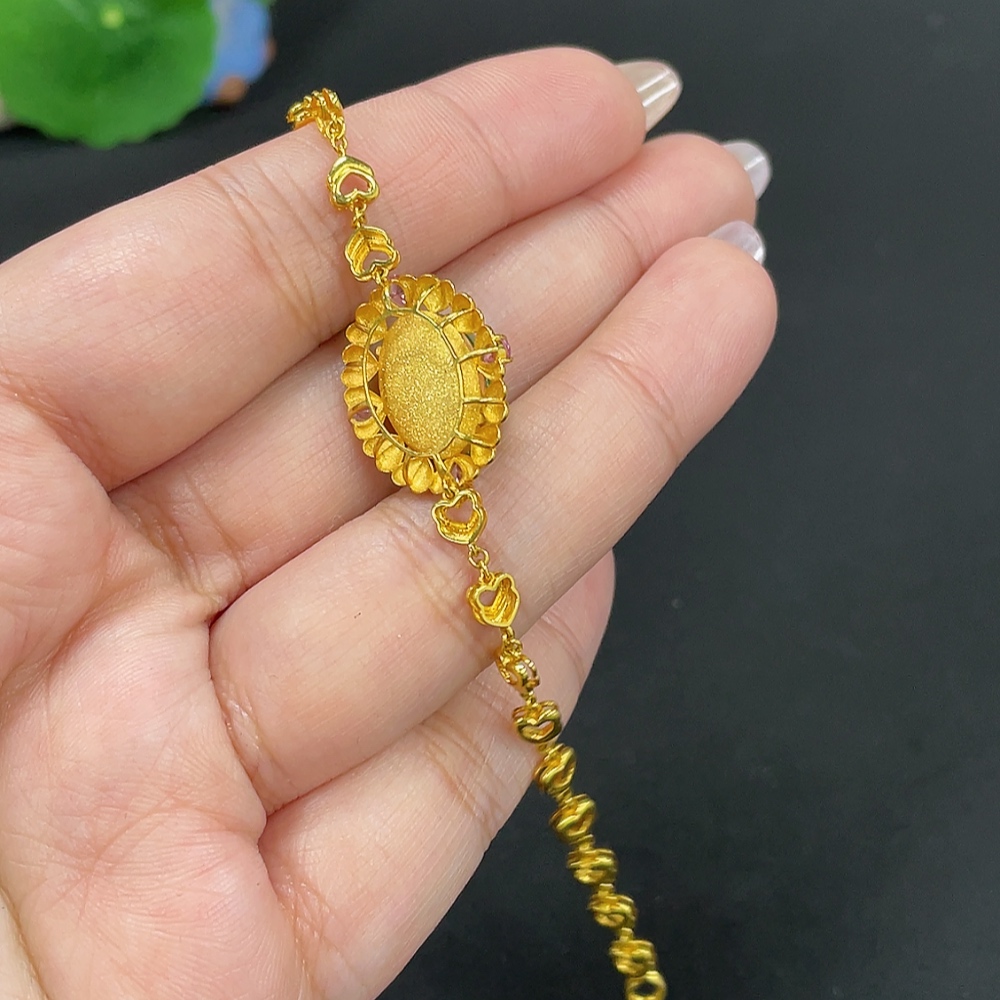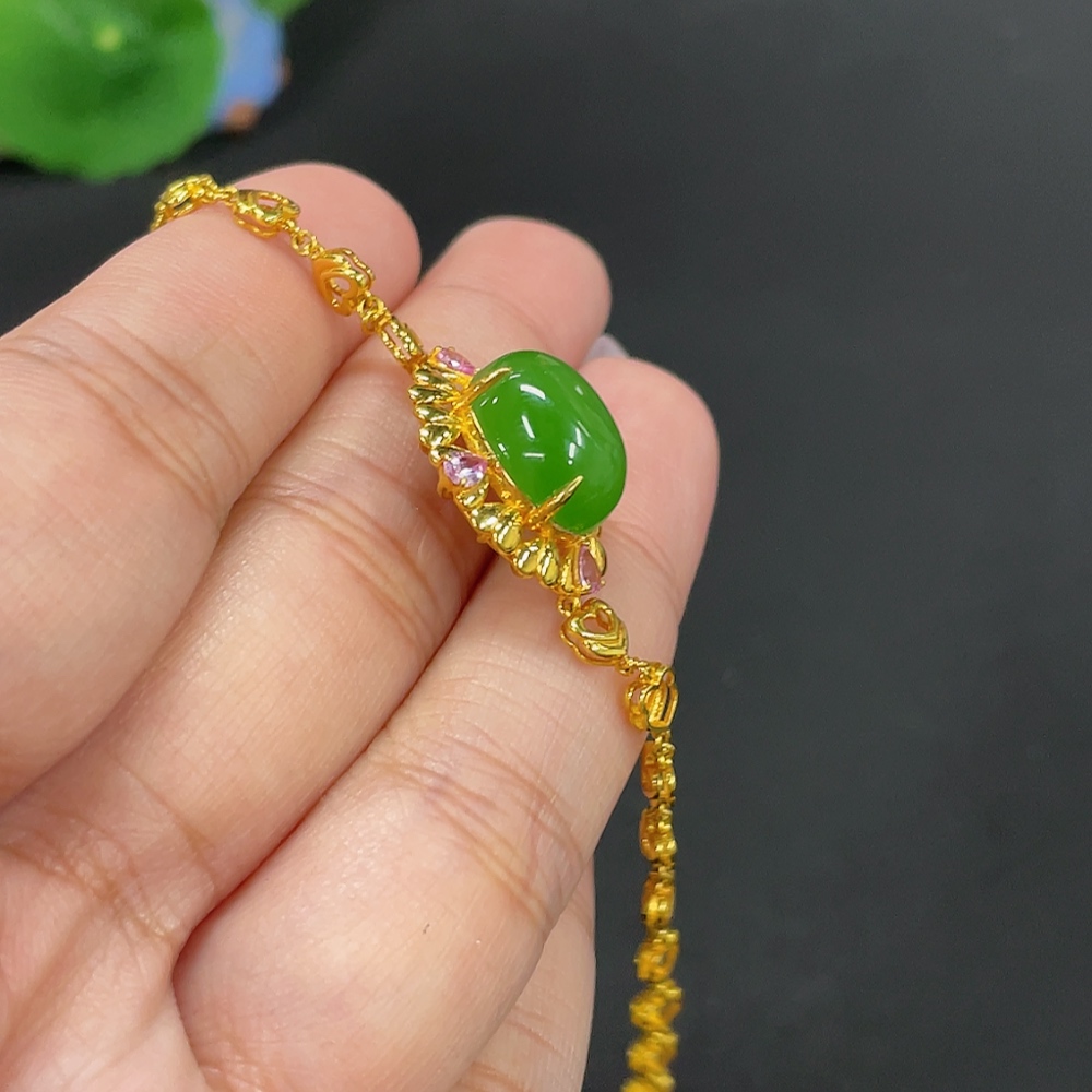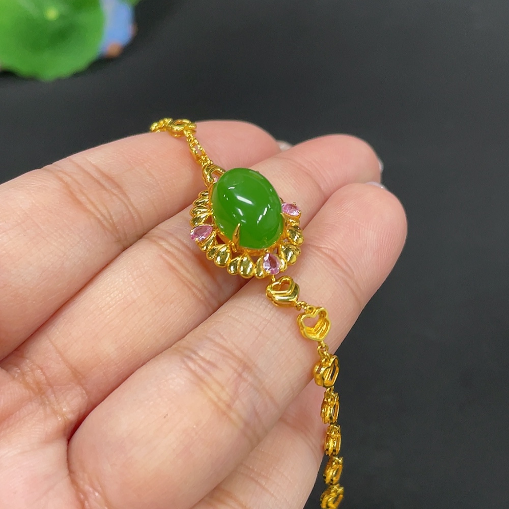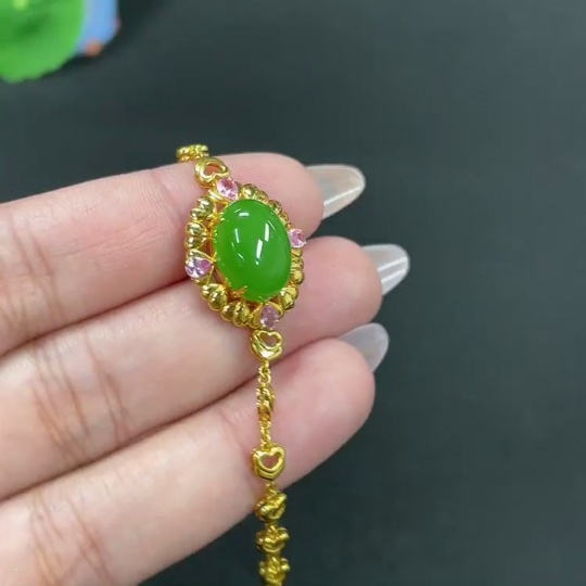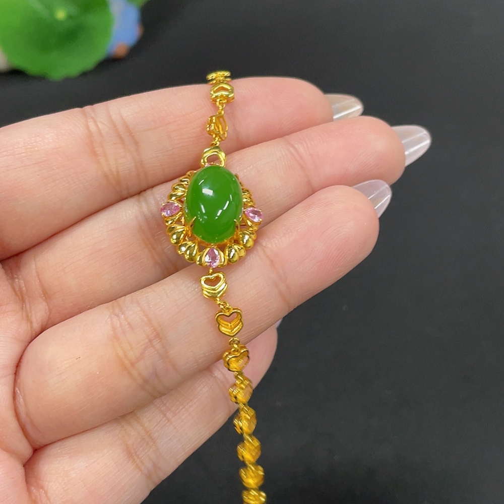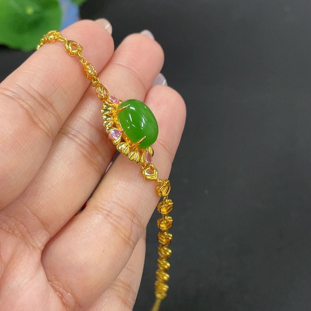 Hetian Jade Jasper Cabochon Inlaid Bracelet, 18k Gold, Total Weight Approx. 5.3g