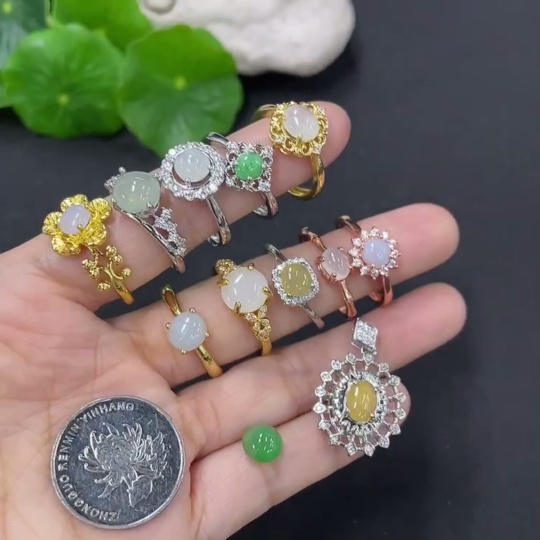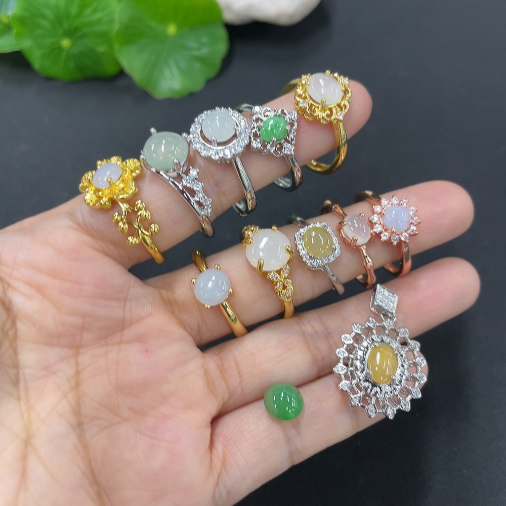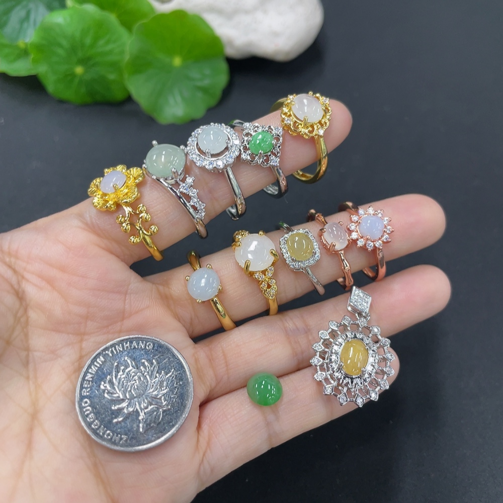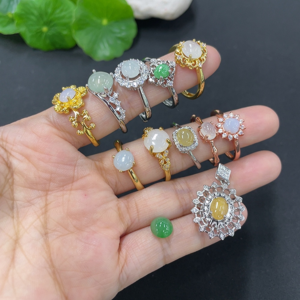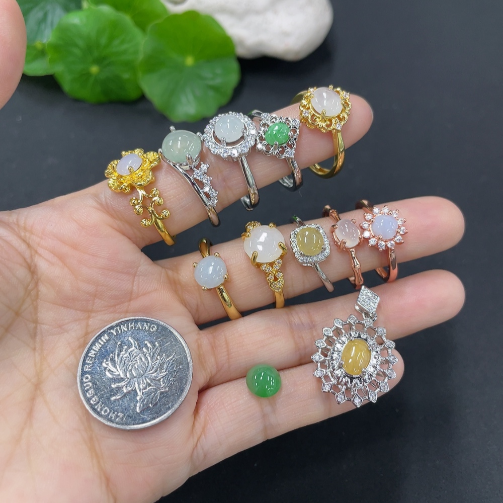 Jadeite Cabochon Solitaire Ring + Cabochon Non-Gold Setting Adjustable Size Sell as a Lot