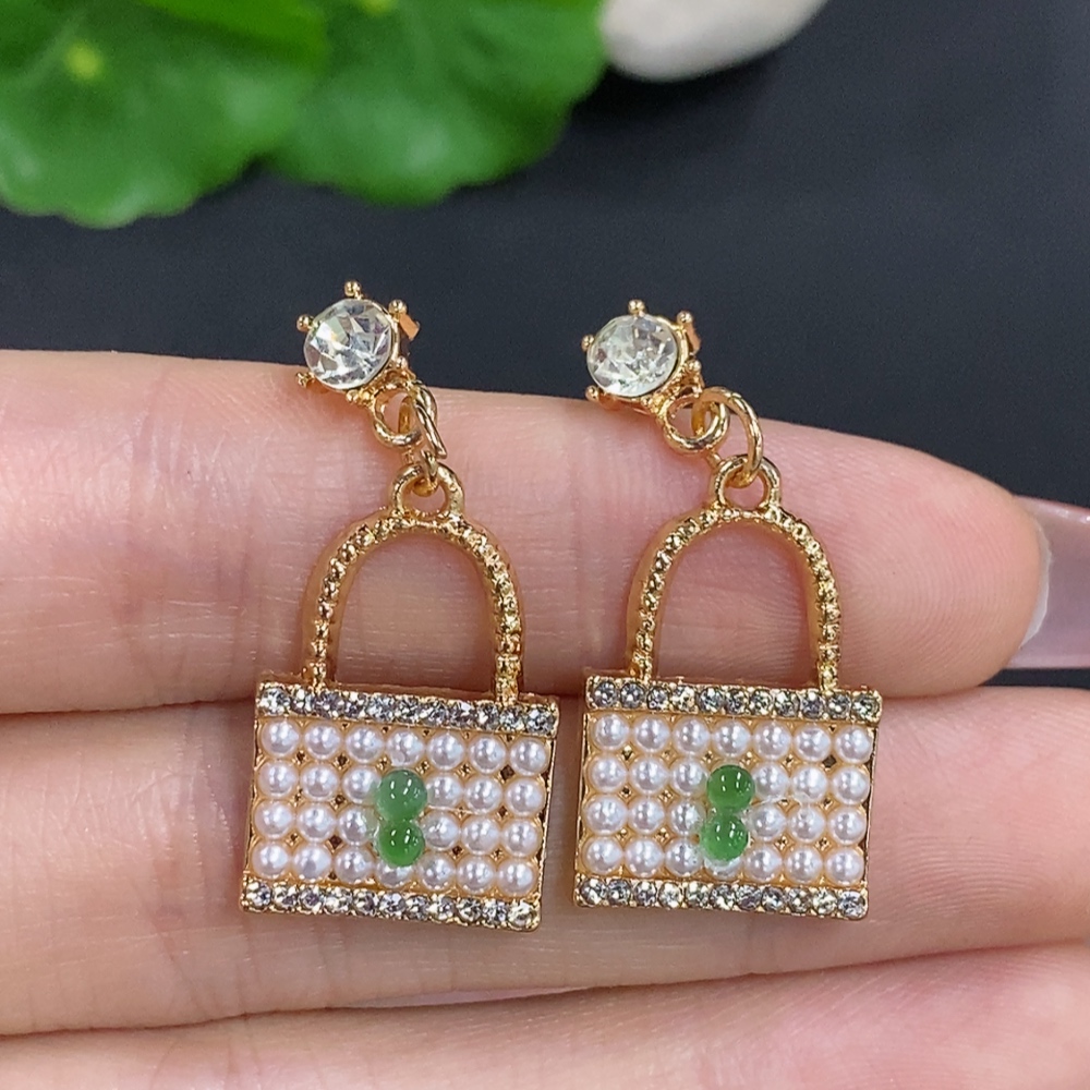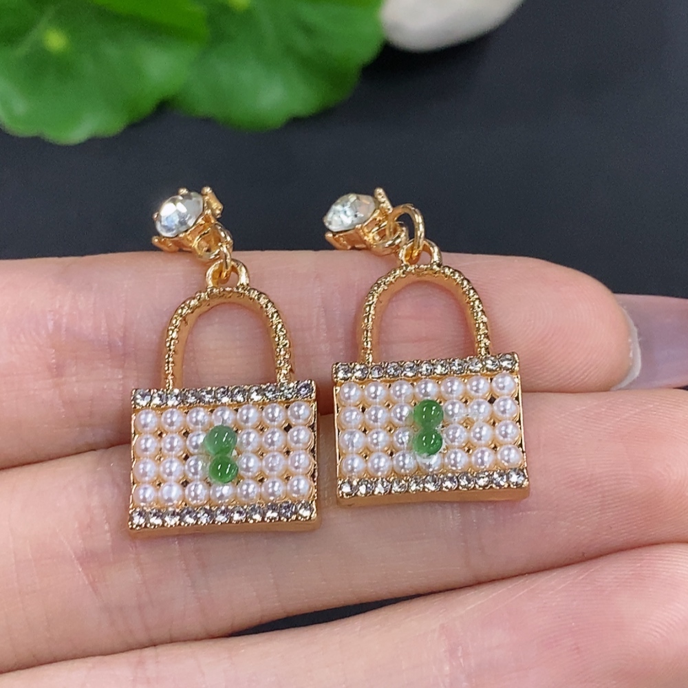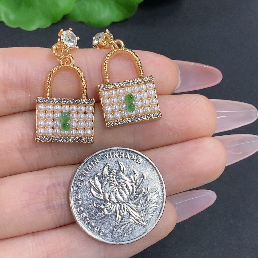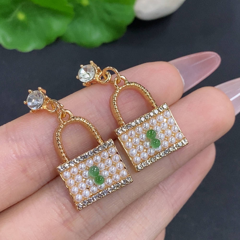 Jadeite cabochon stud earrings pair, non-gold setting, total weight approx. 6.51g