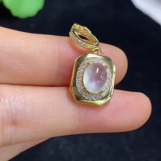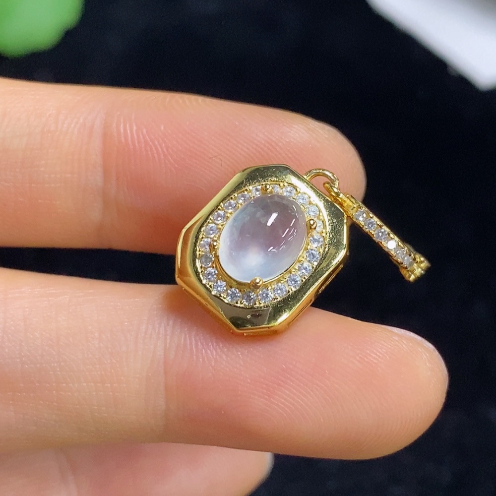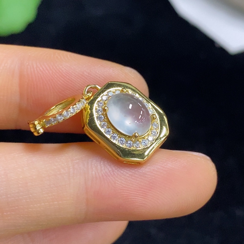 Jadeite Cabochon Inlaid Pendant Non-Gold Total Weight Approx. 2.78g