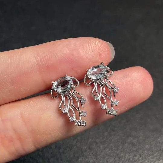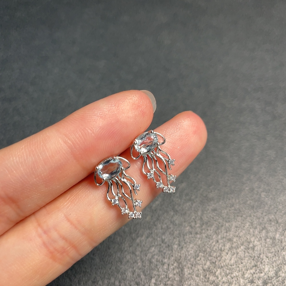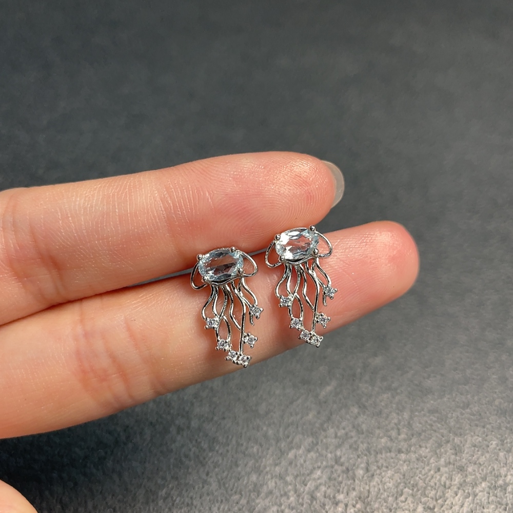 Topaz earrings, color origin undetermined, non-gold, total product weight approximately 1.96g