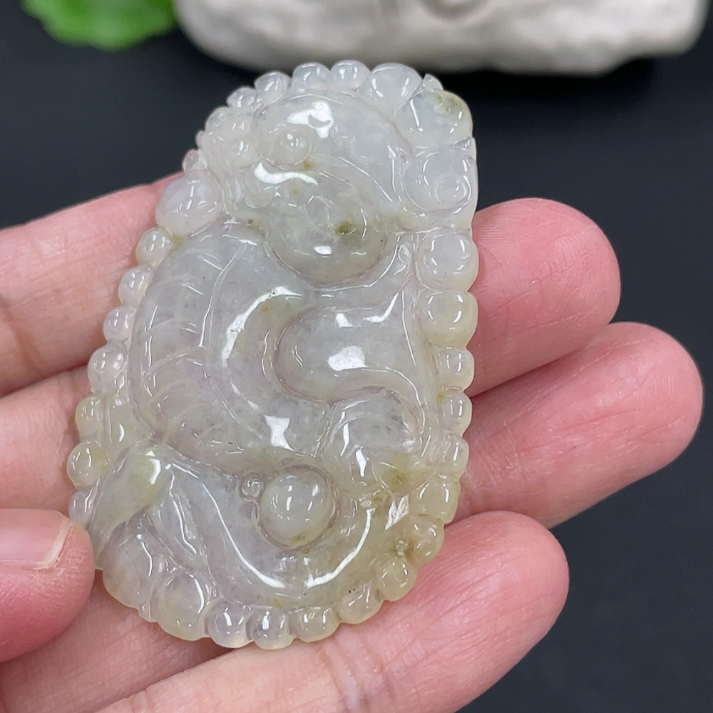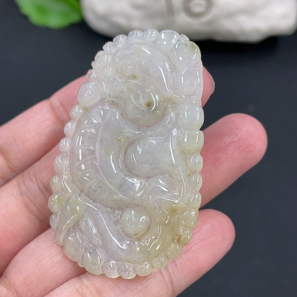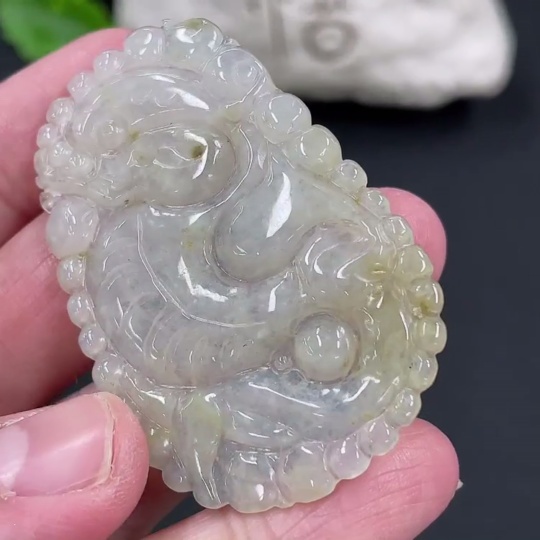 Jadeite Bubble Dragon Pendant, Total Weight Approx. 10.28g