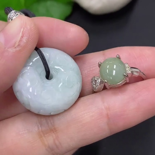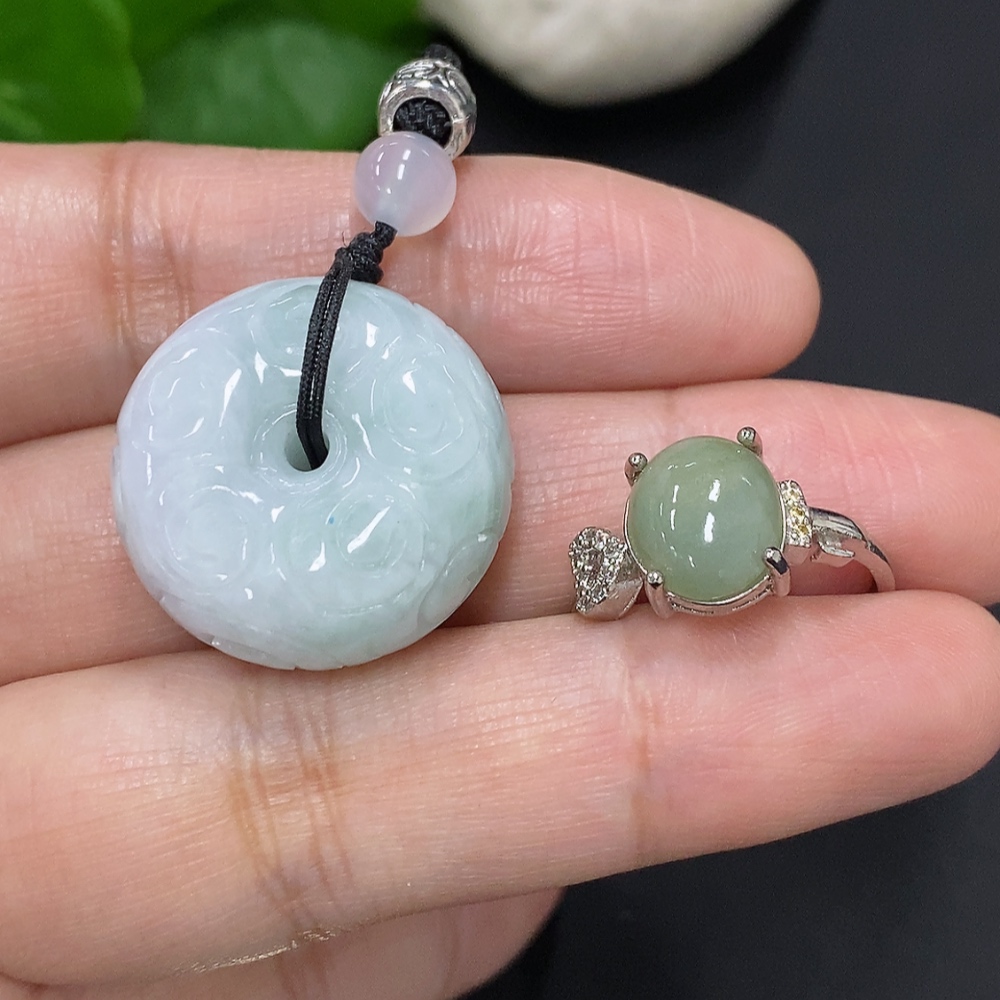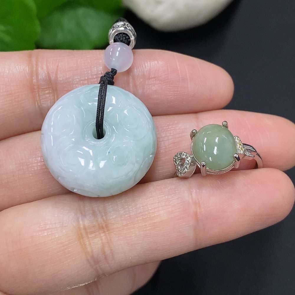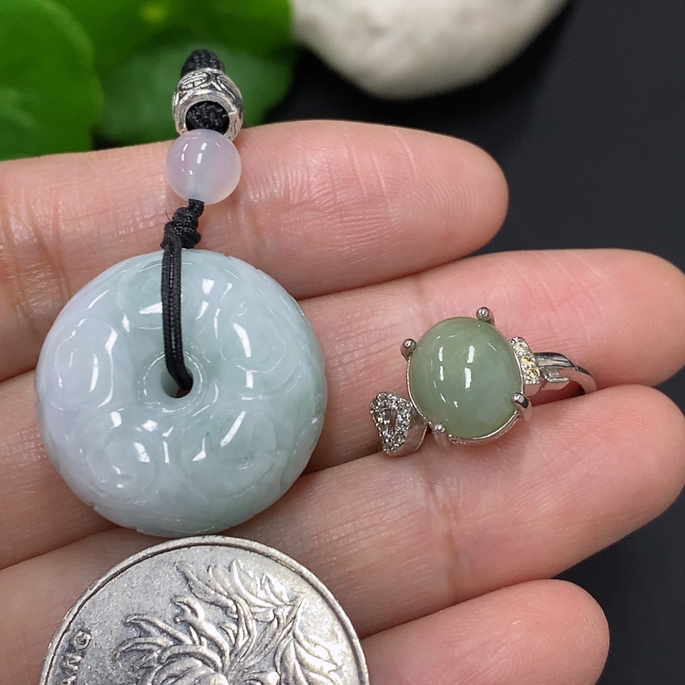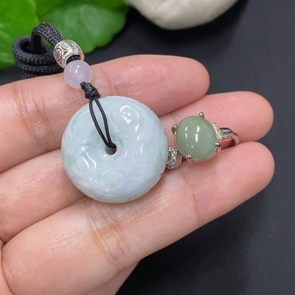 Jadeite Pendant with Ring Sell as a Lot Adjustable Size Non-Gold Inlaid