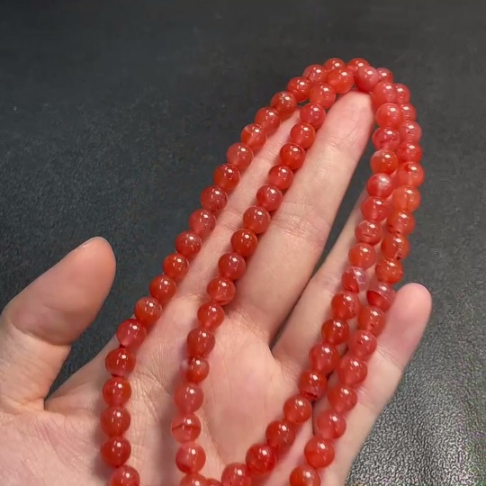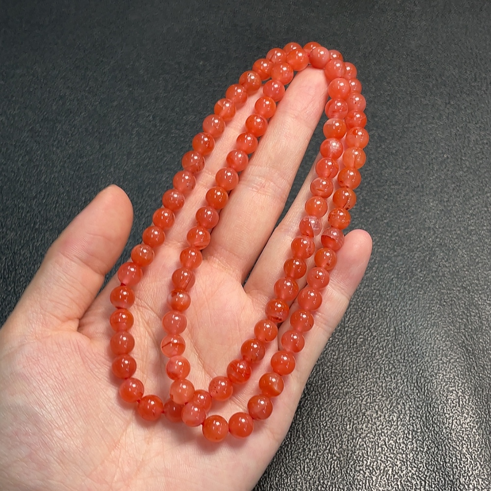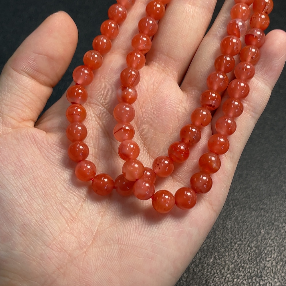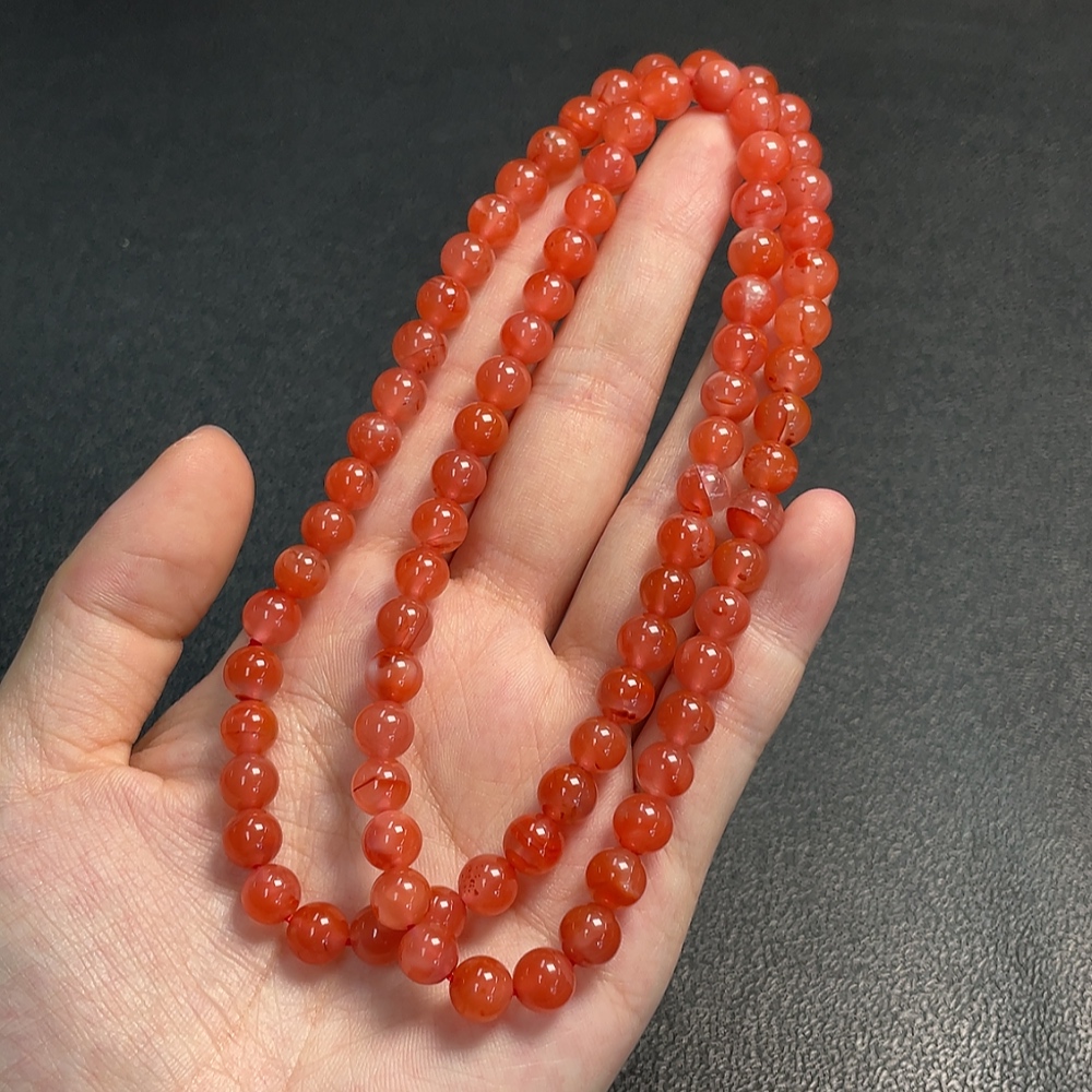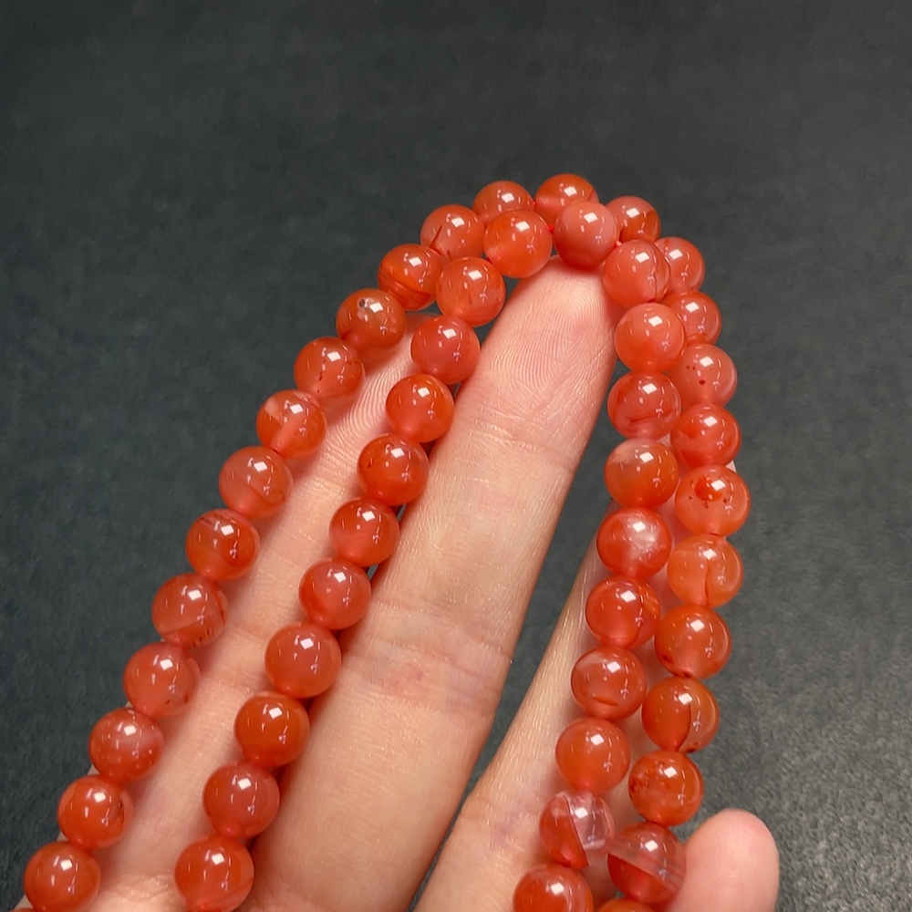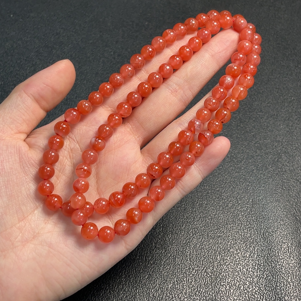 Red Agate Bead Strand with Visible Organic Matter, Total Weight Approx. 41.81g, Size About 7.3mm
