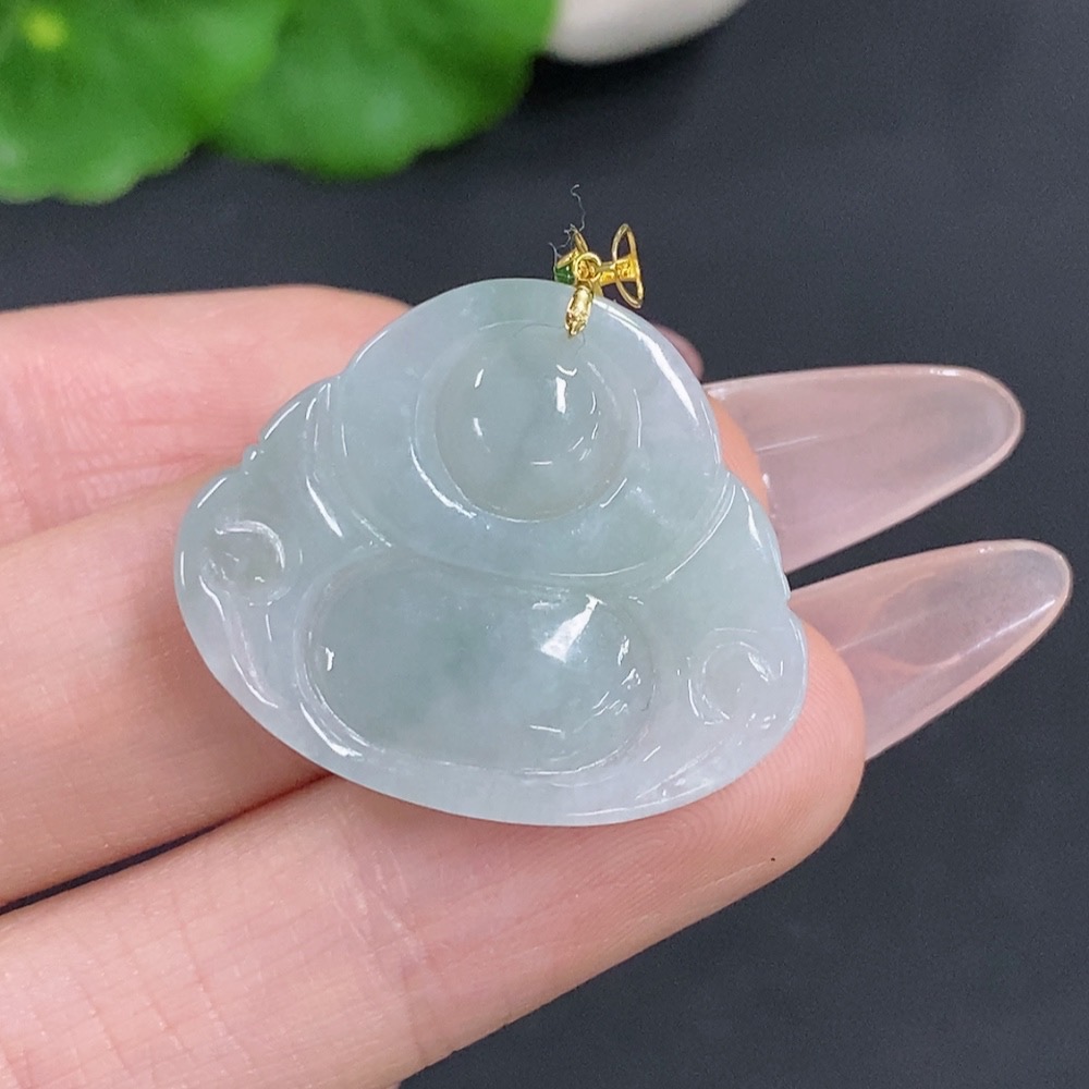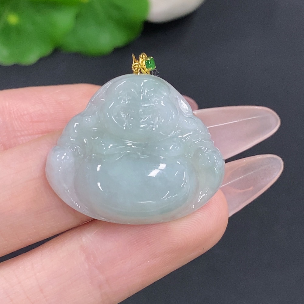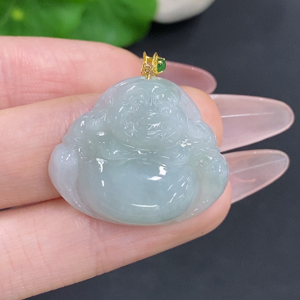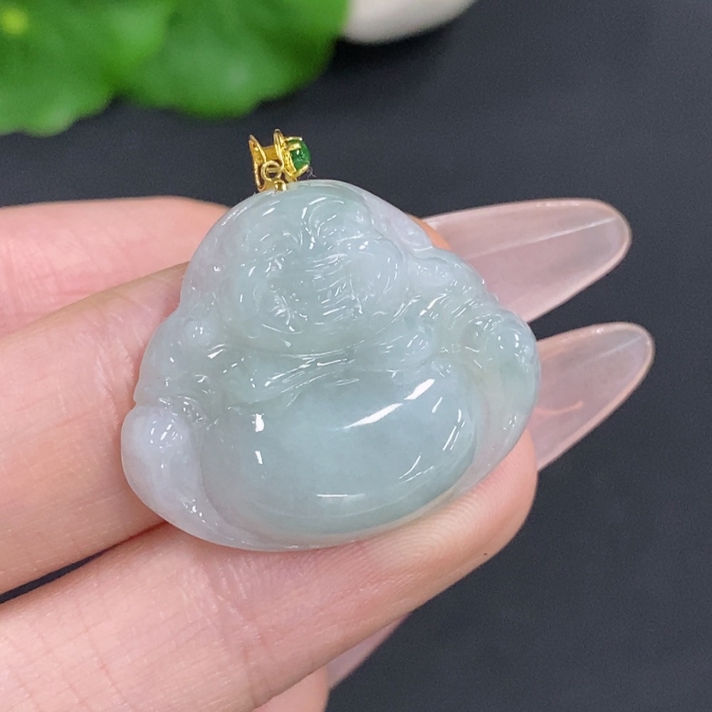 Jadeite Buddha Pendant with 18k Gold Clasp, Total Weight Approximately 6.4g