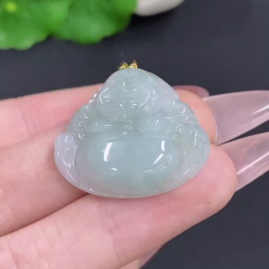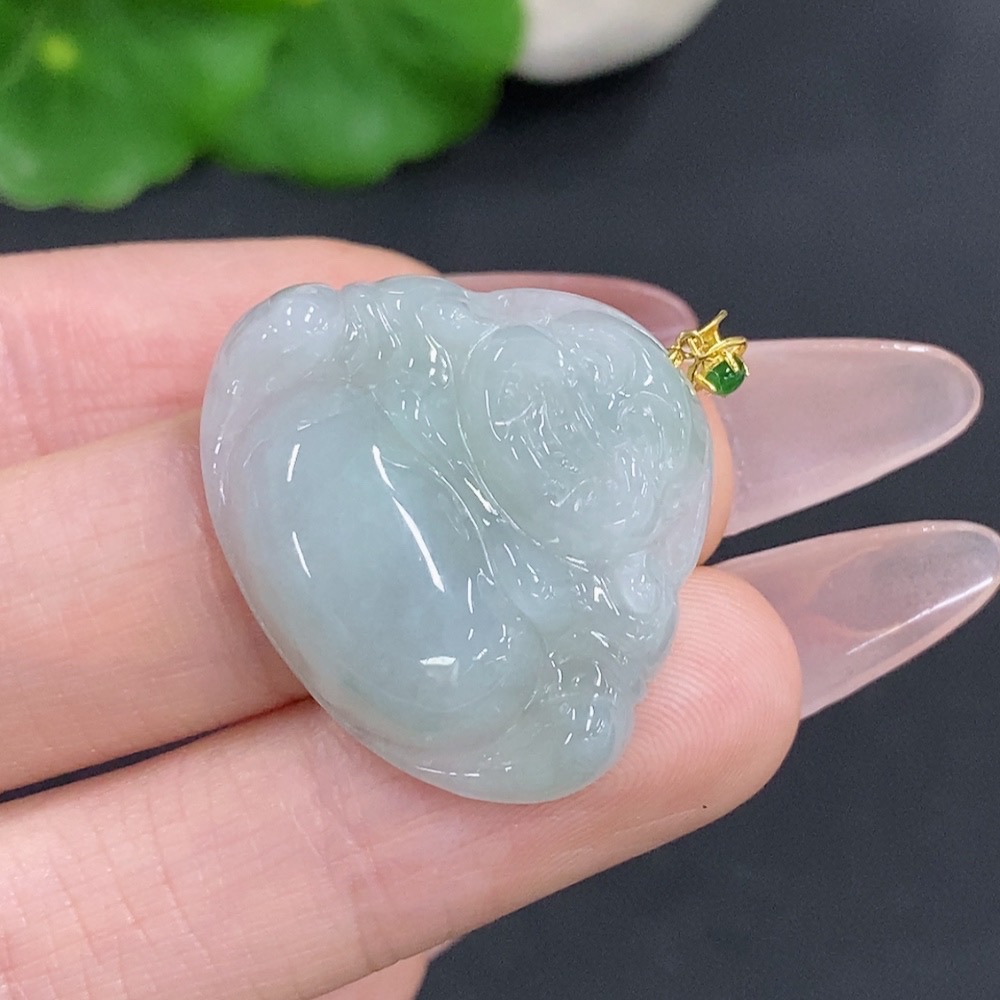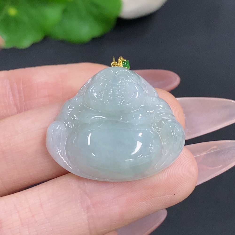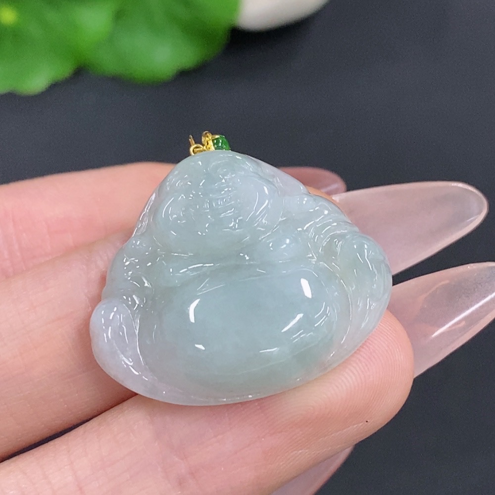 Jadeite Buddha Pendant with 18k Gold Clasp, Total Weight Approximately 6.4g