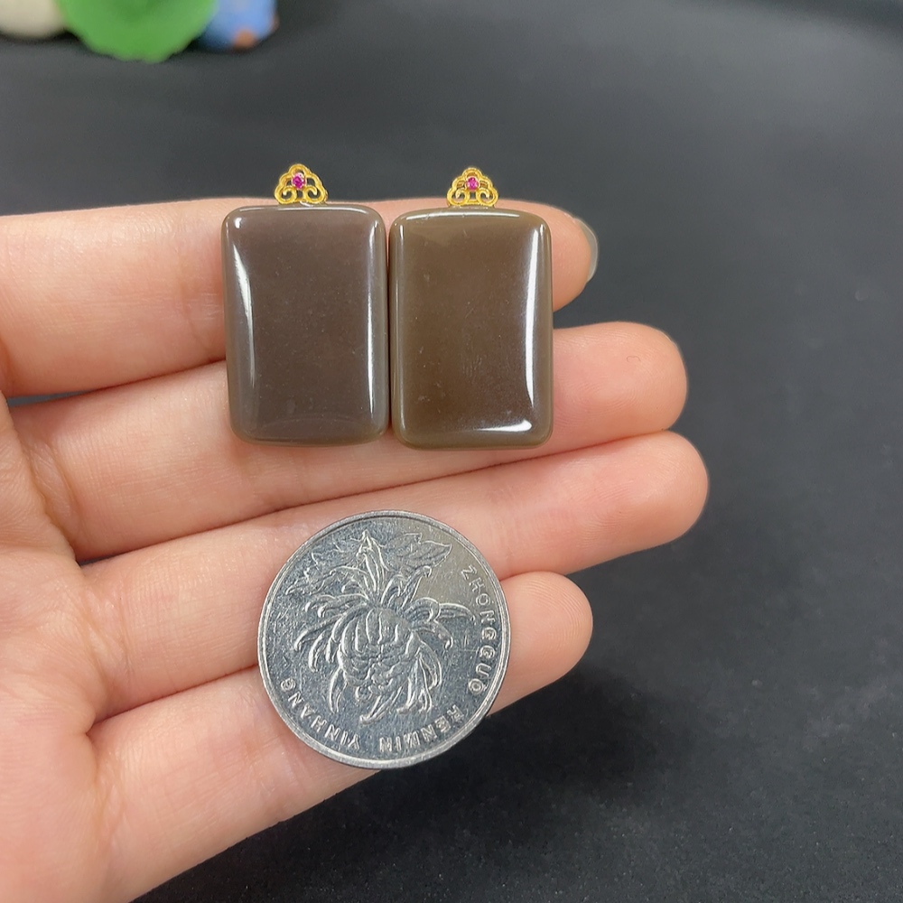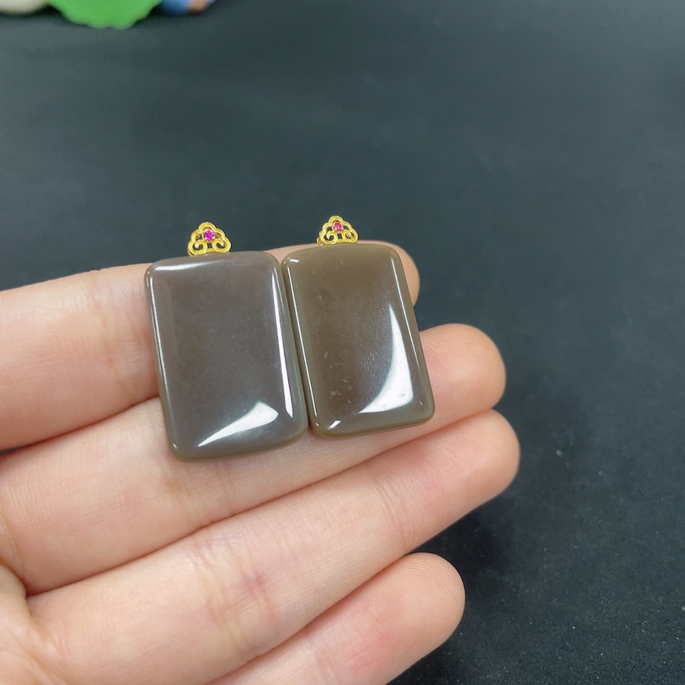 Hetian Jade Pendant Plain Pendant with 18K Gold Clasp Total Weight Approx. 8.2g