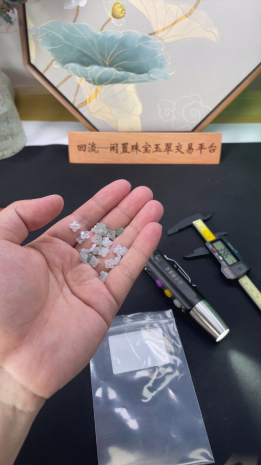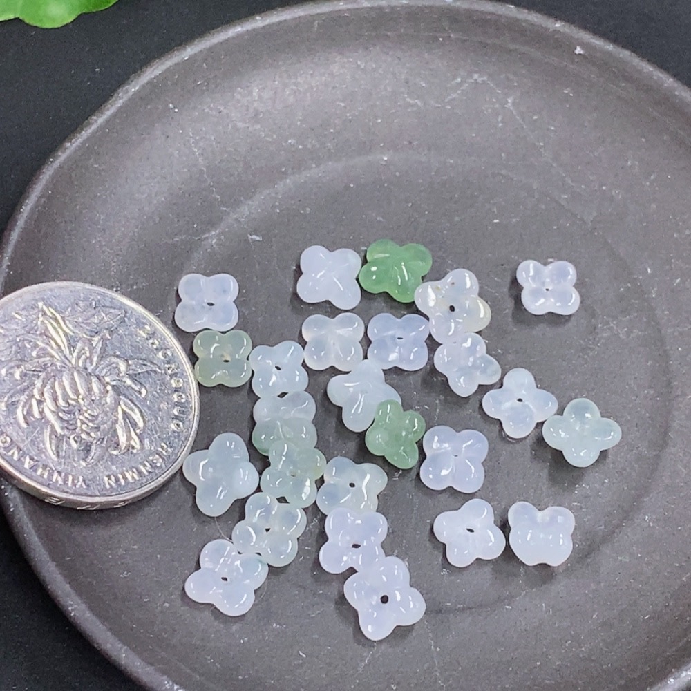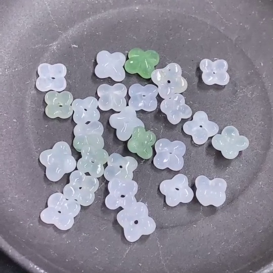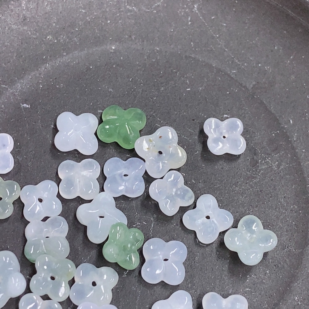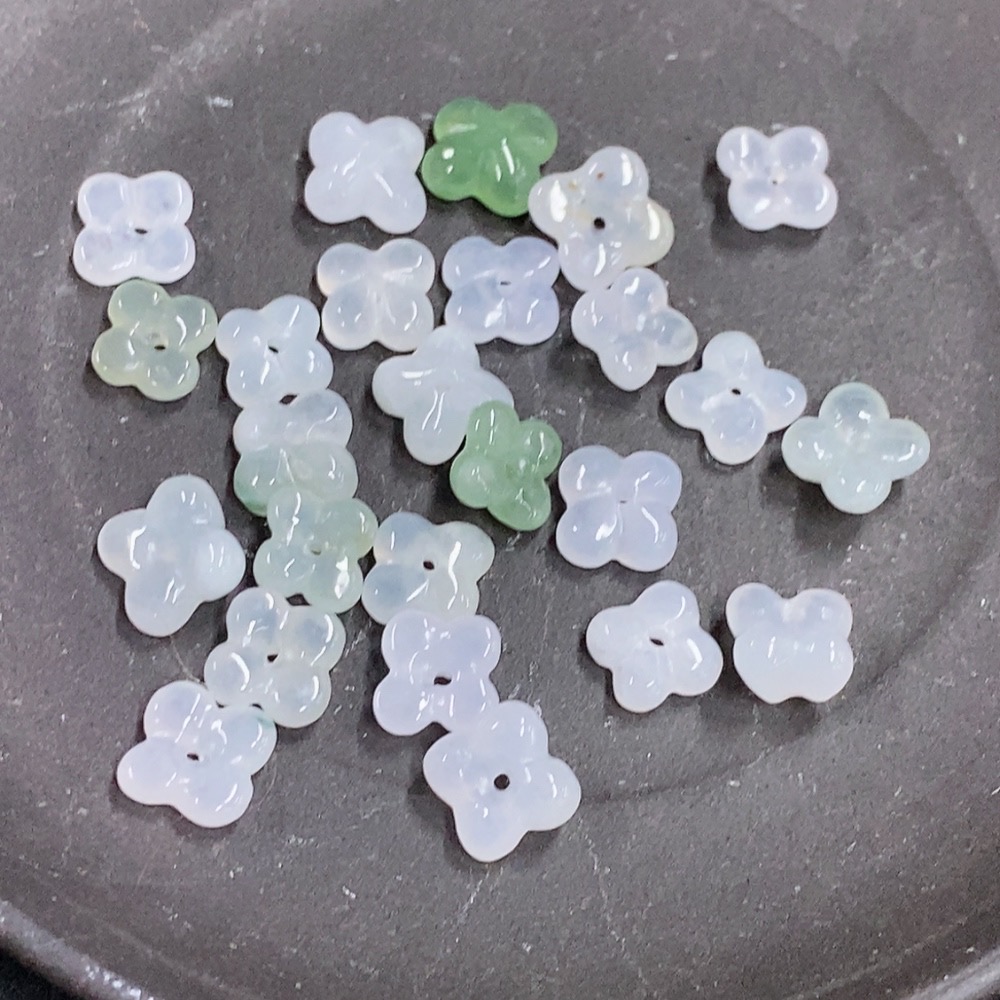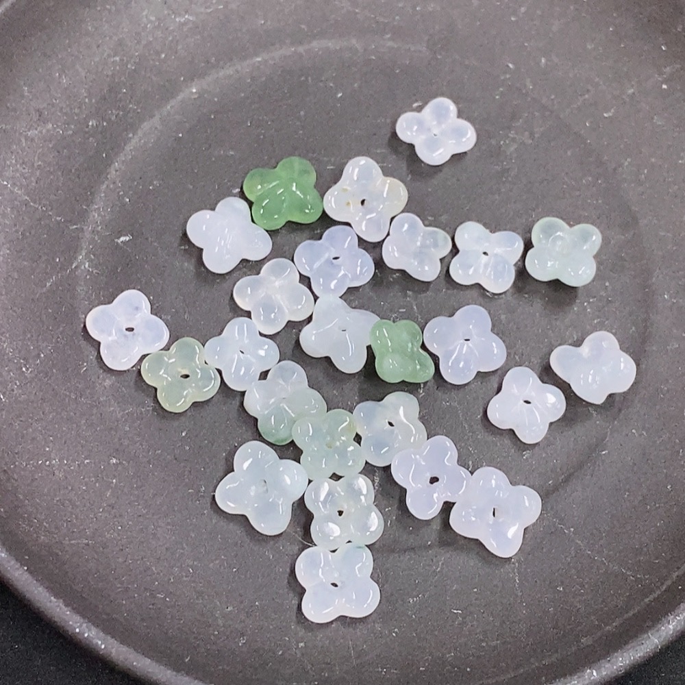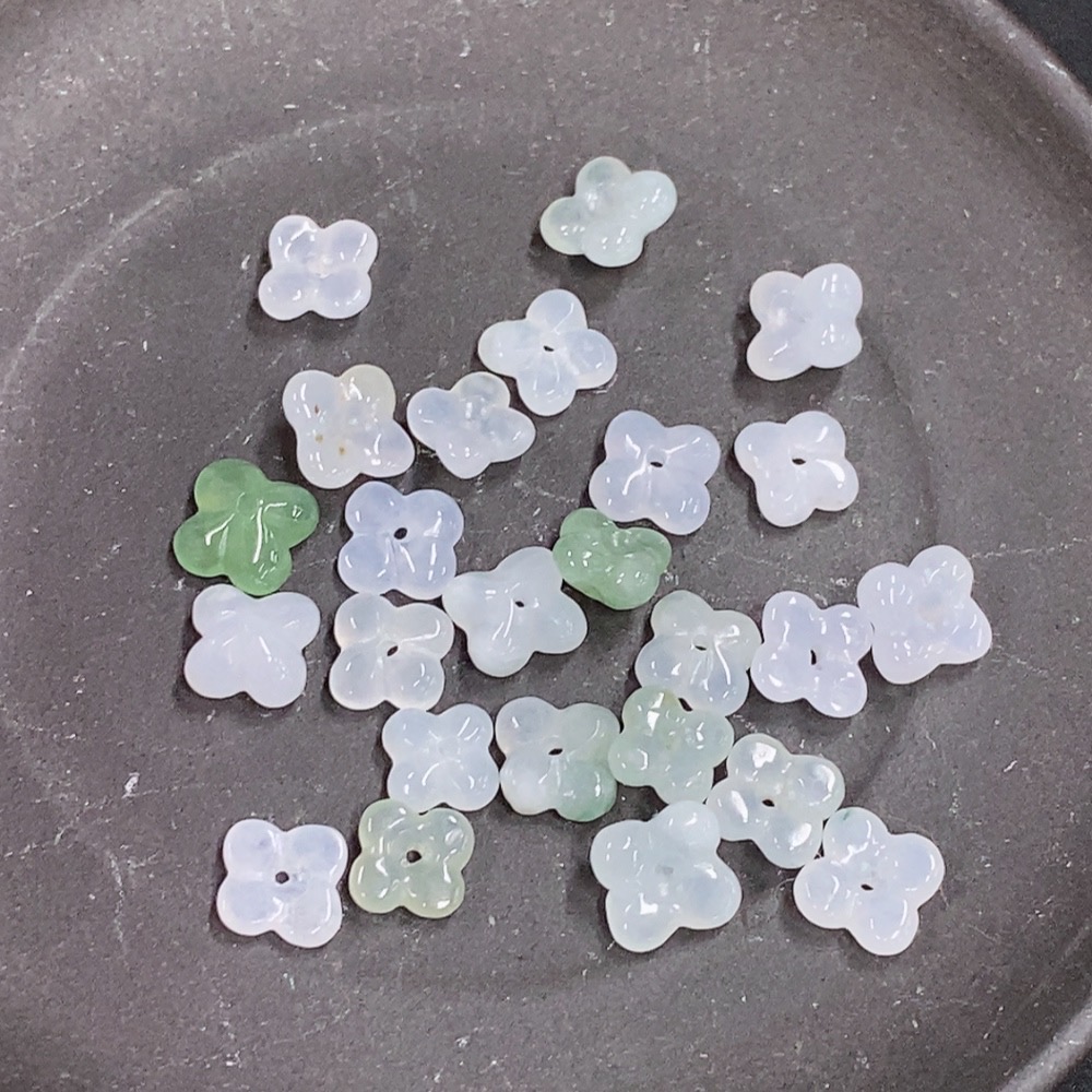 Jadeite Cherry Blossom Beads Sell as a Lot Total Weight Approx. 7.2g (Including Small Bag)