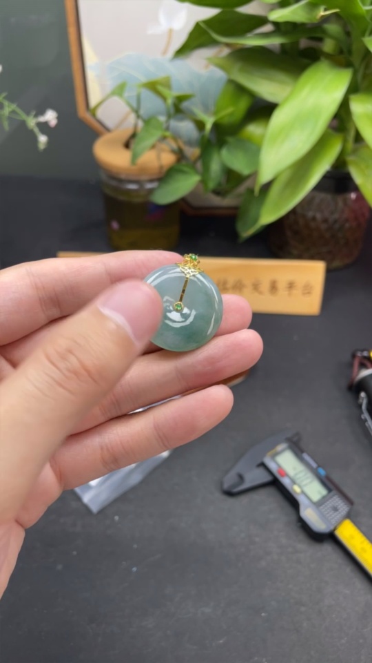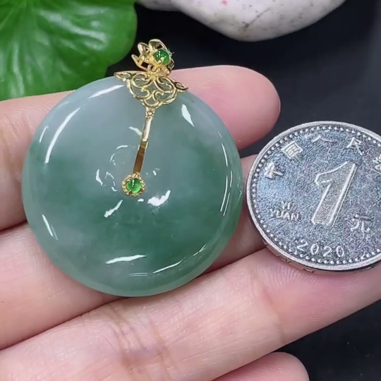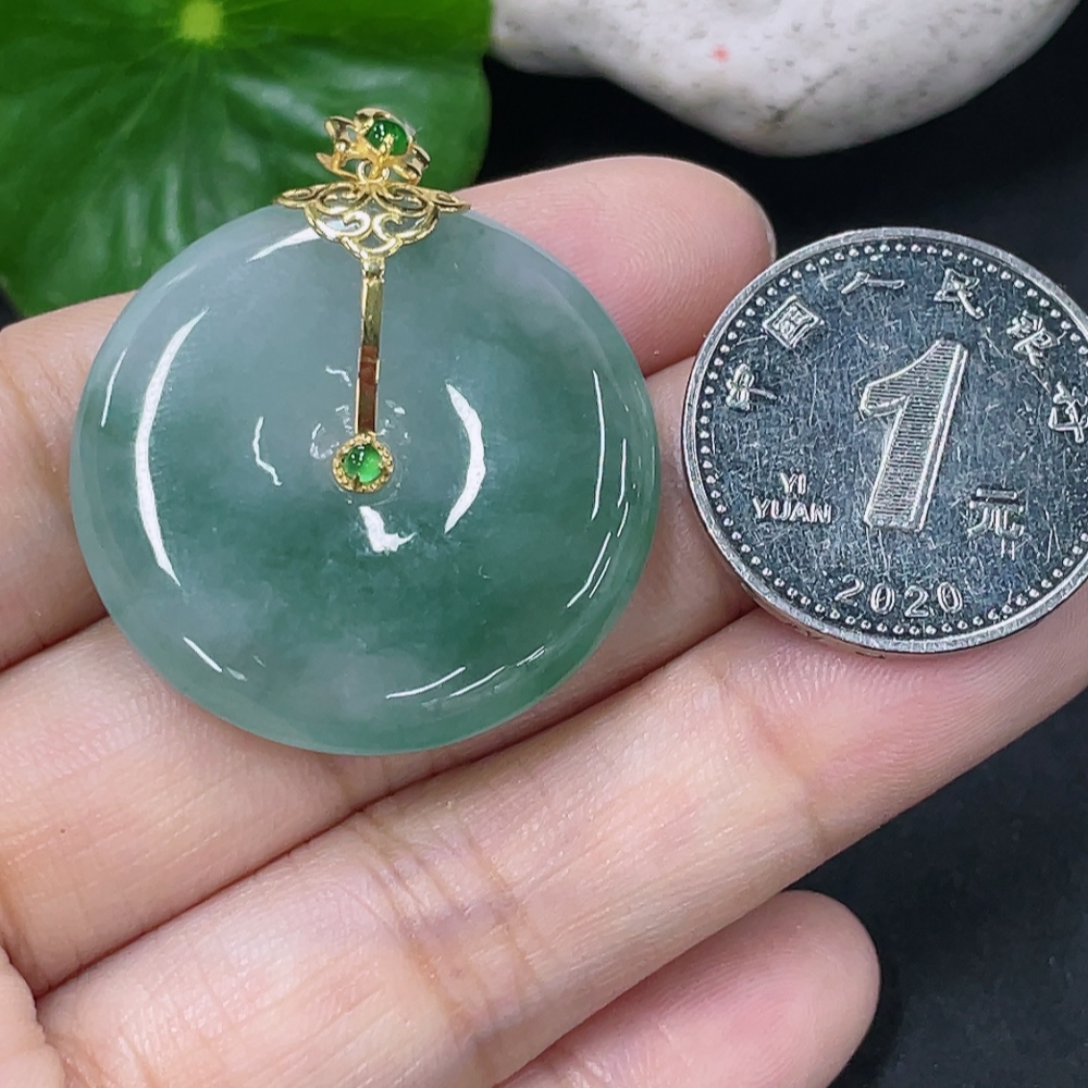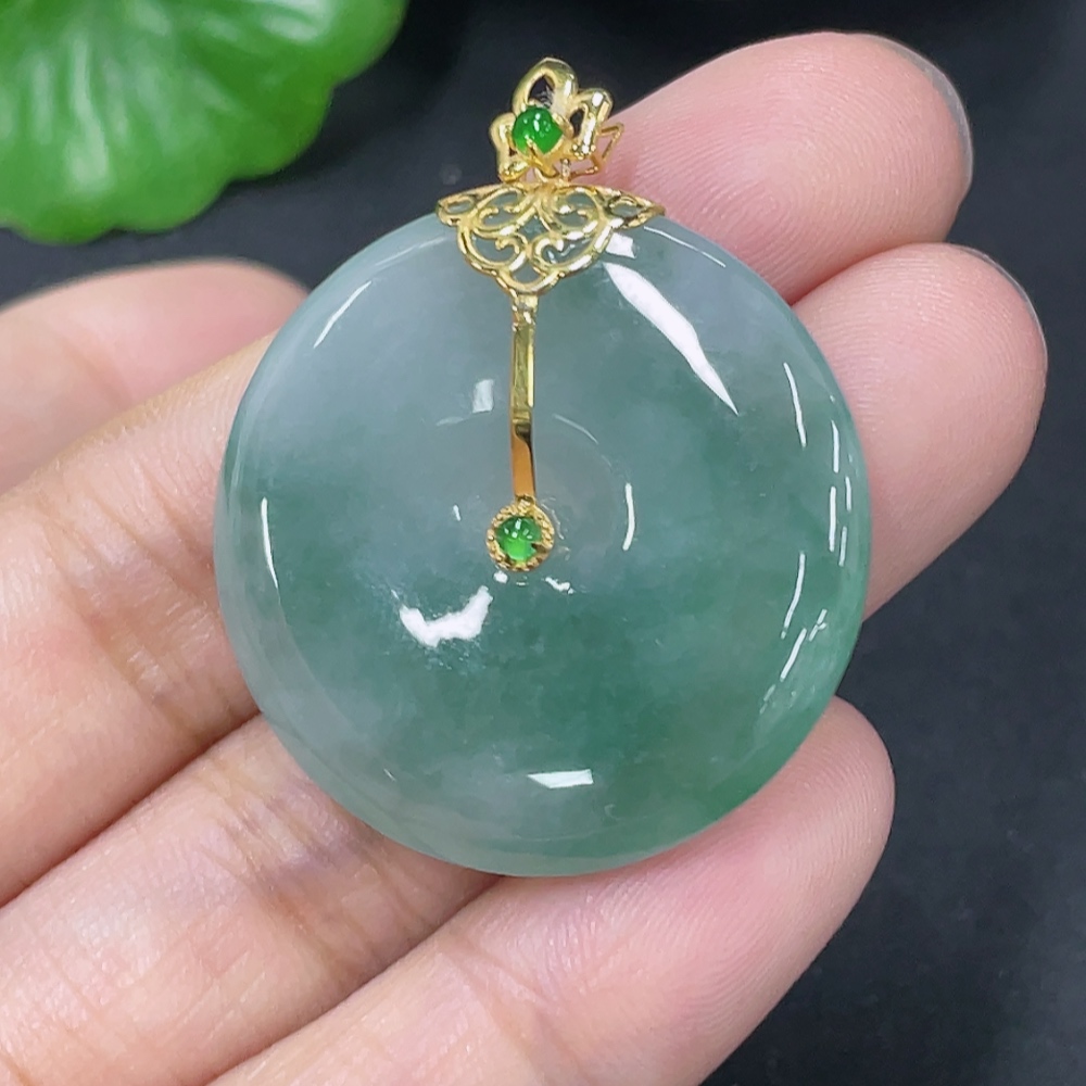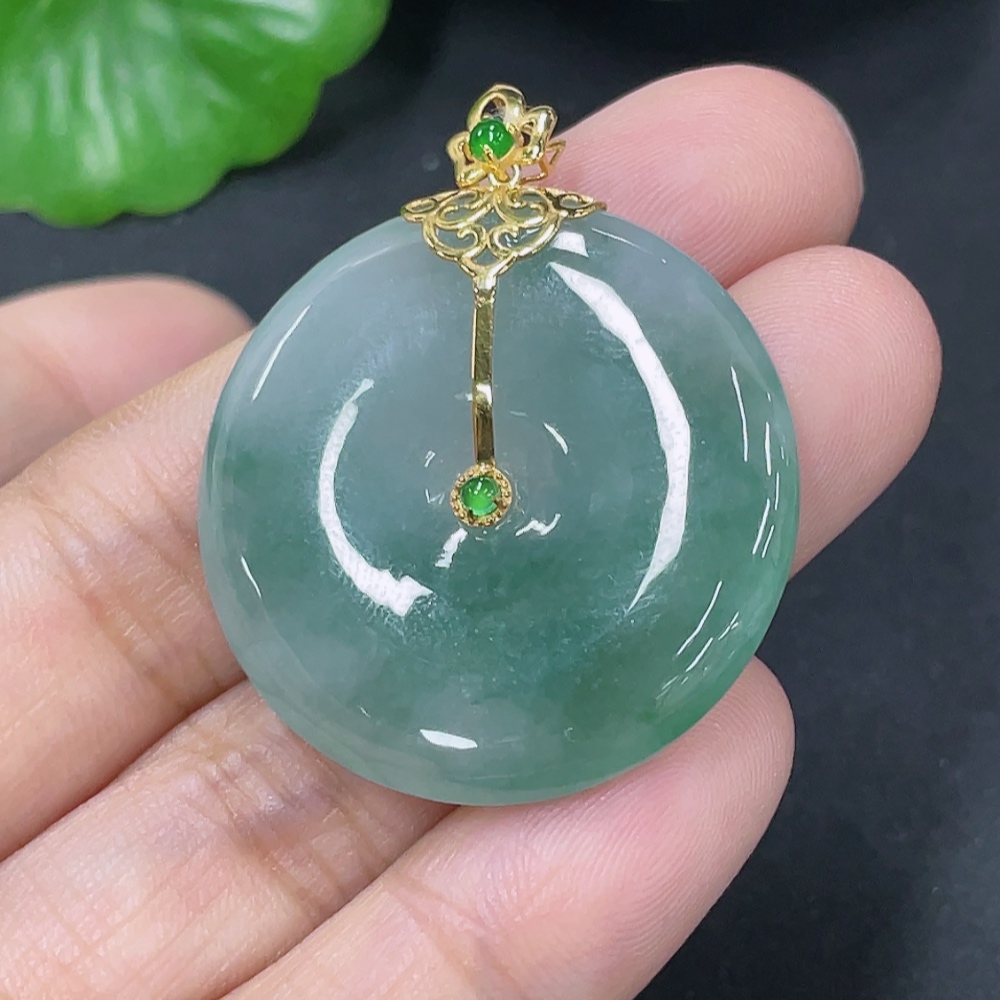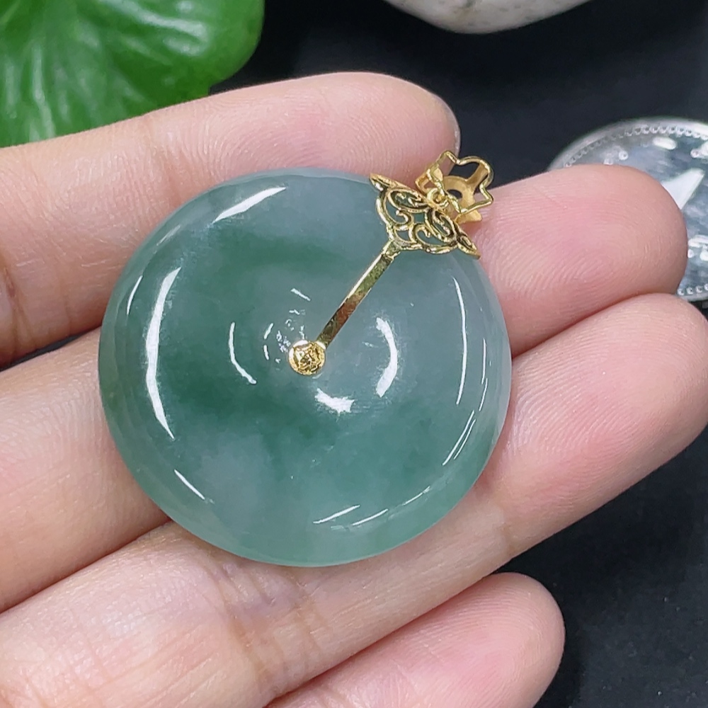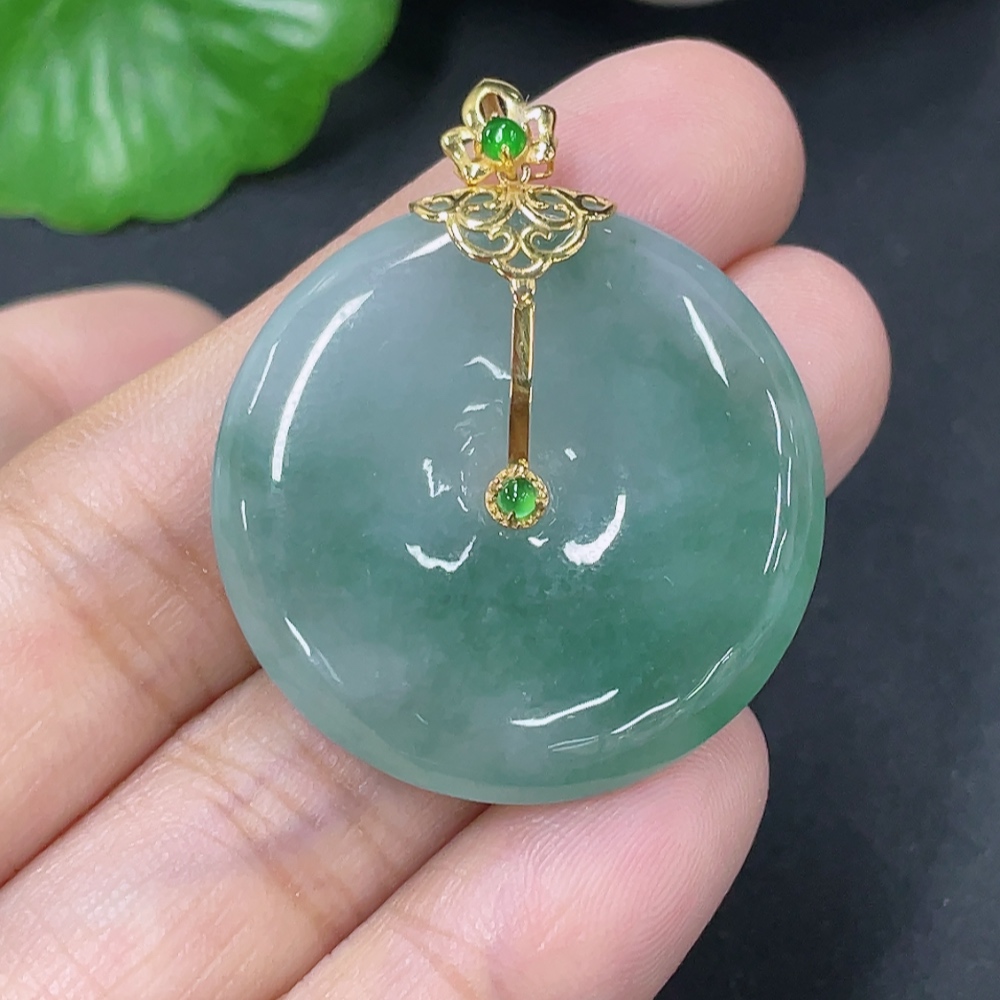 Jadeite Peace Button Pendant with 18k Gold Clasp, Total Weight Approx. 10.18g