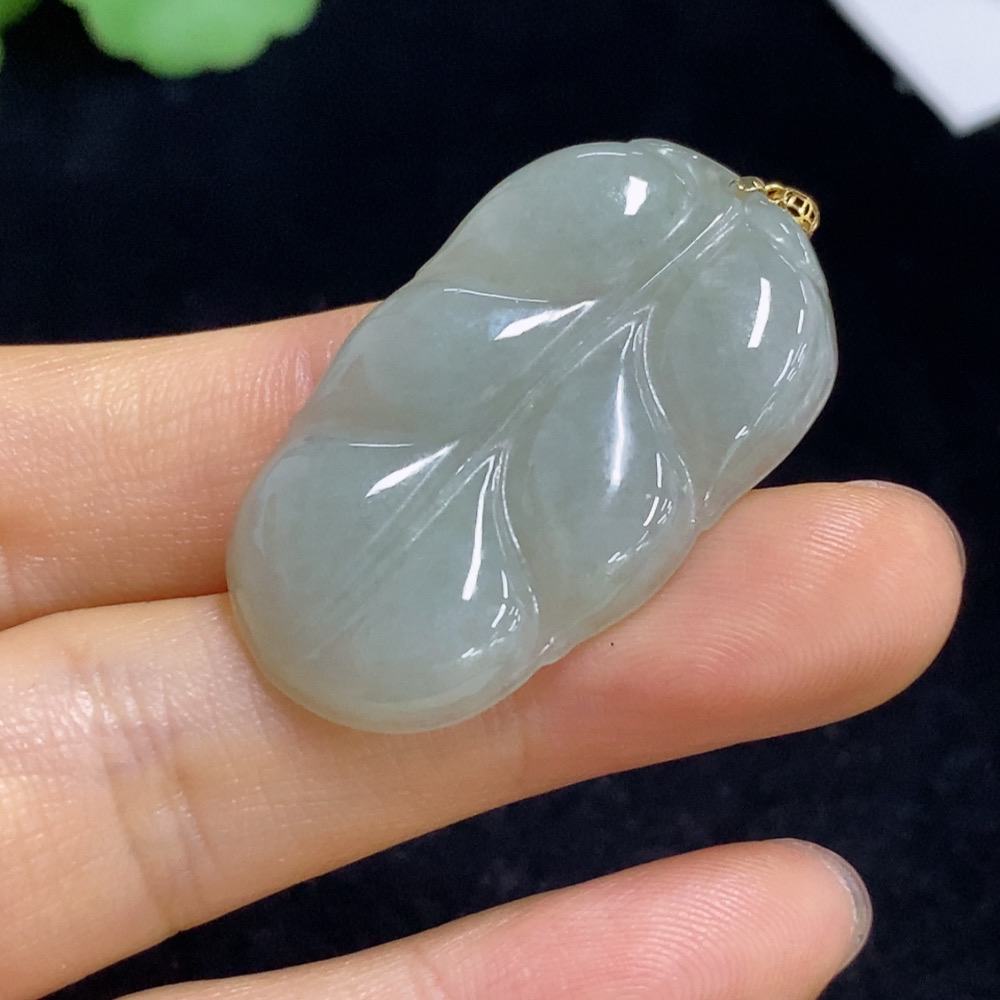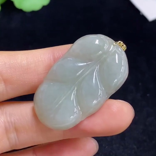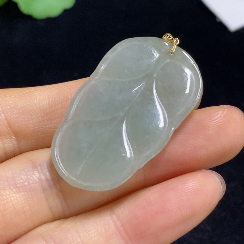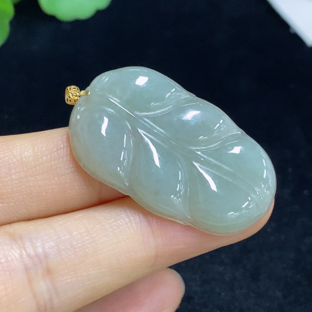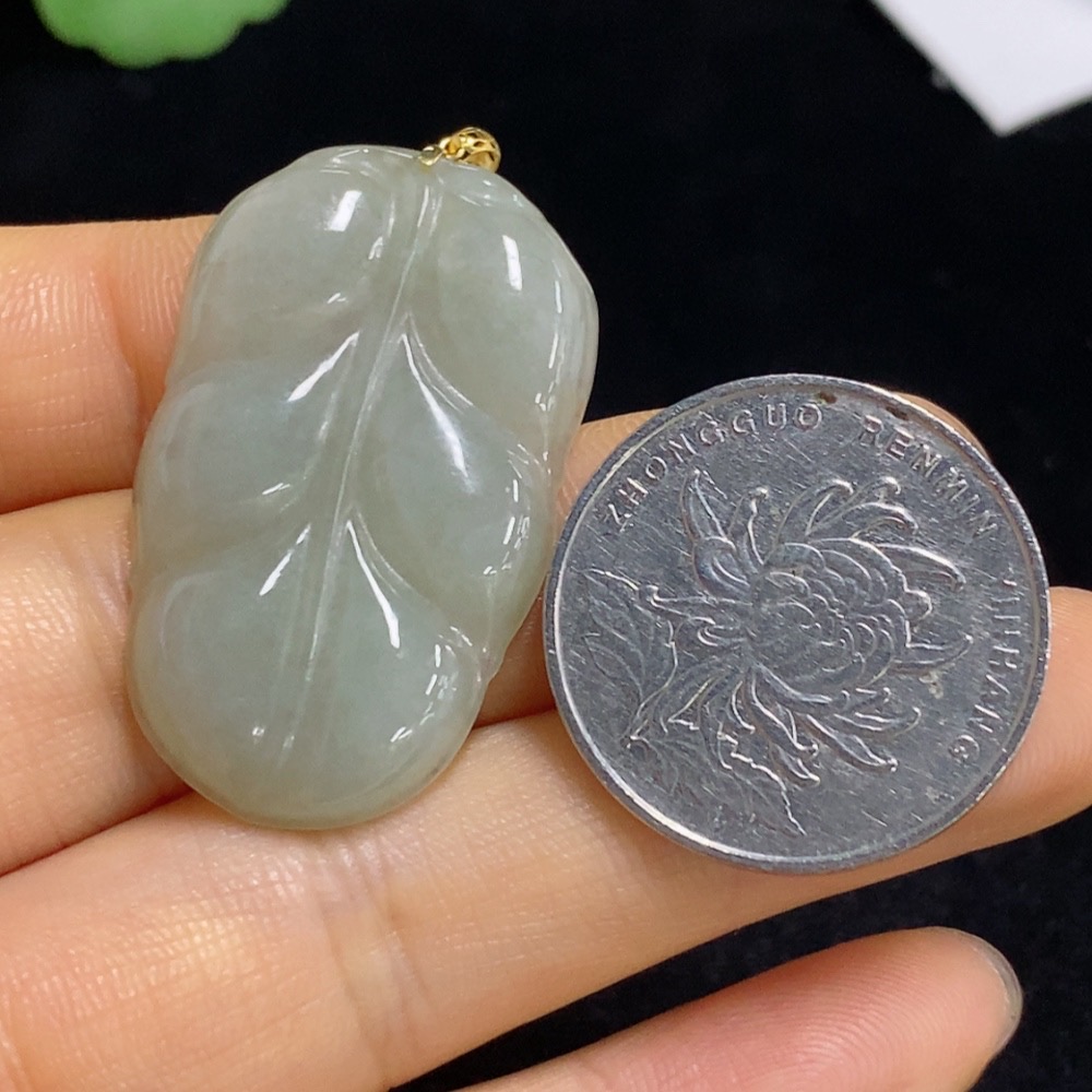 Jadeite Leaf Pendant 18K Gold Total Weight Approx. 7.3g