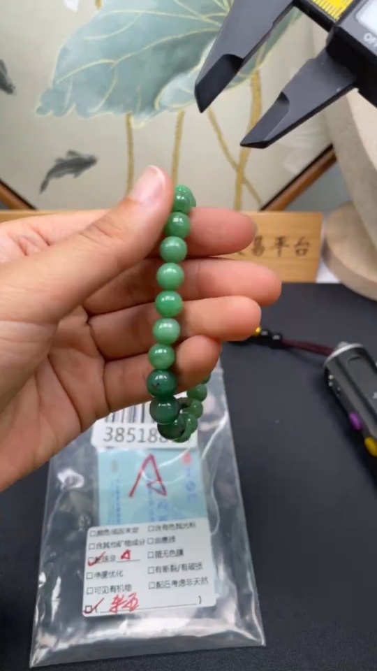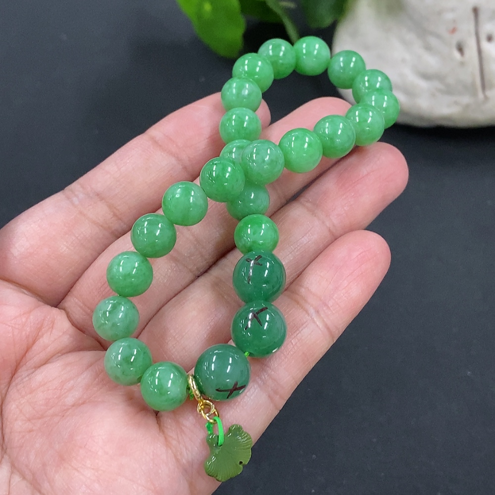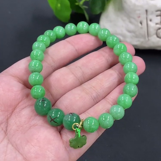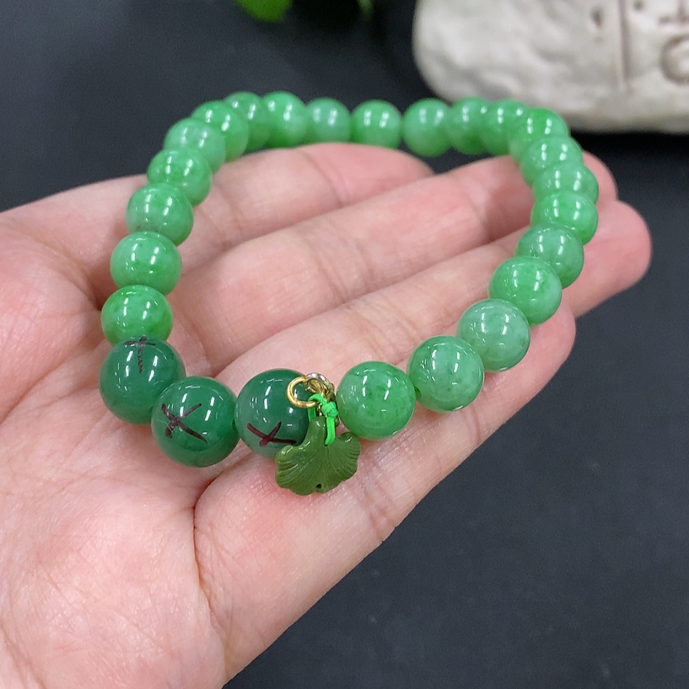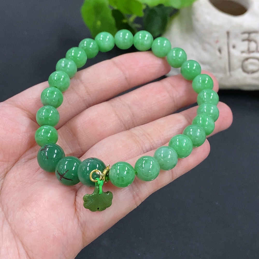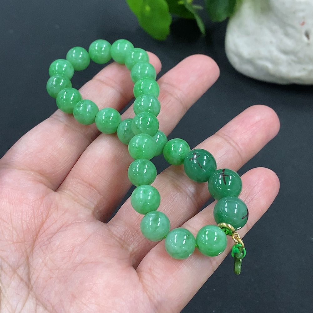 Jadeite Bracelet approx.8.2mm Total Weight approx.25.7g Non-Grade A Beads With Impurities Non-Gold