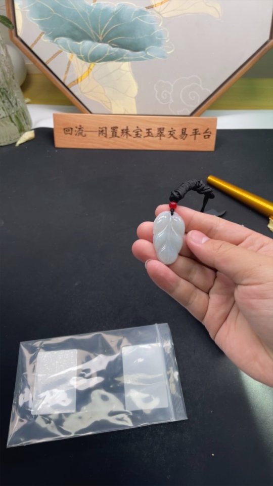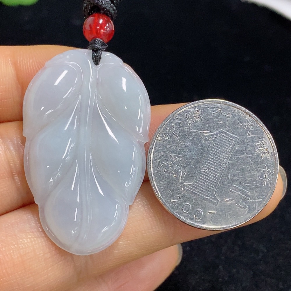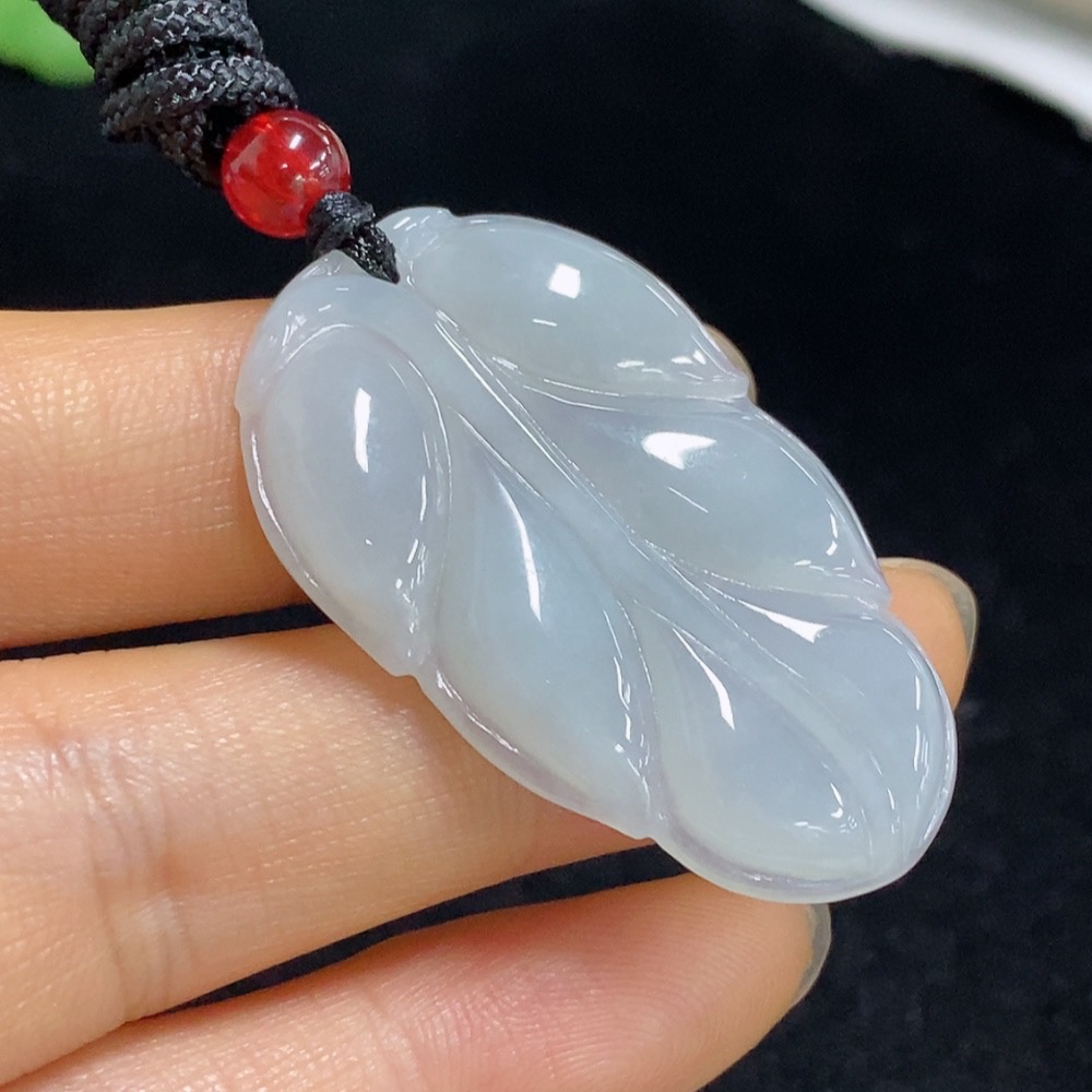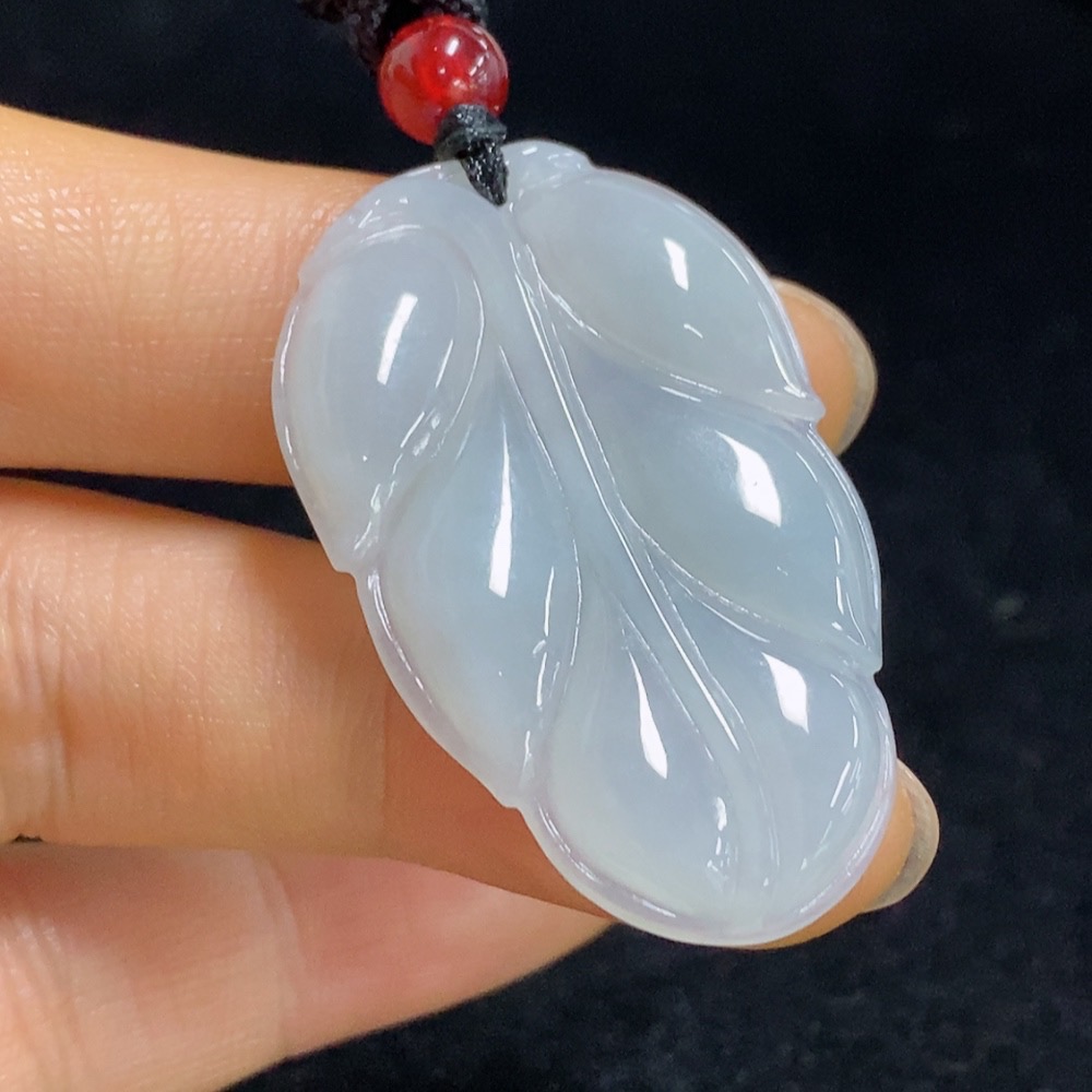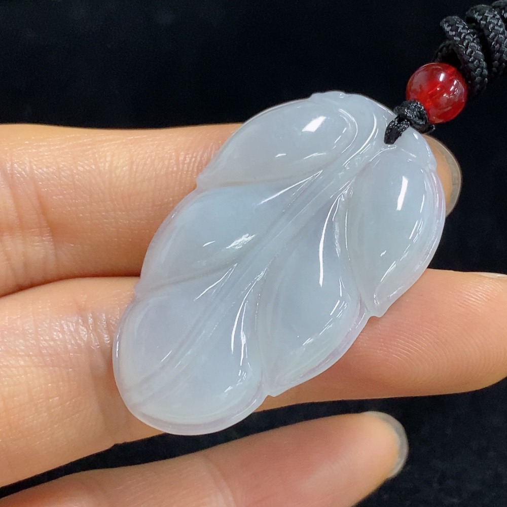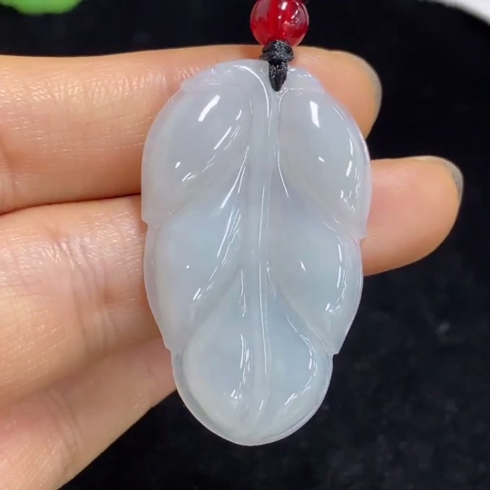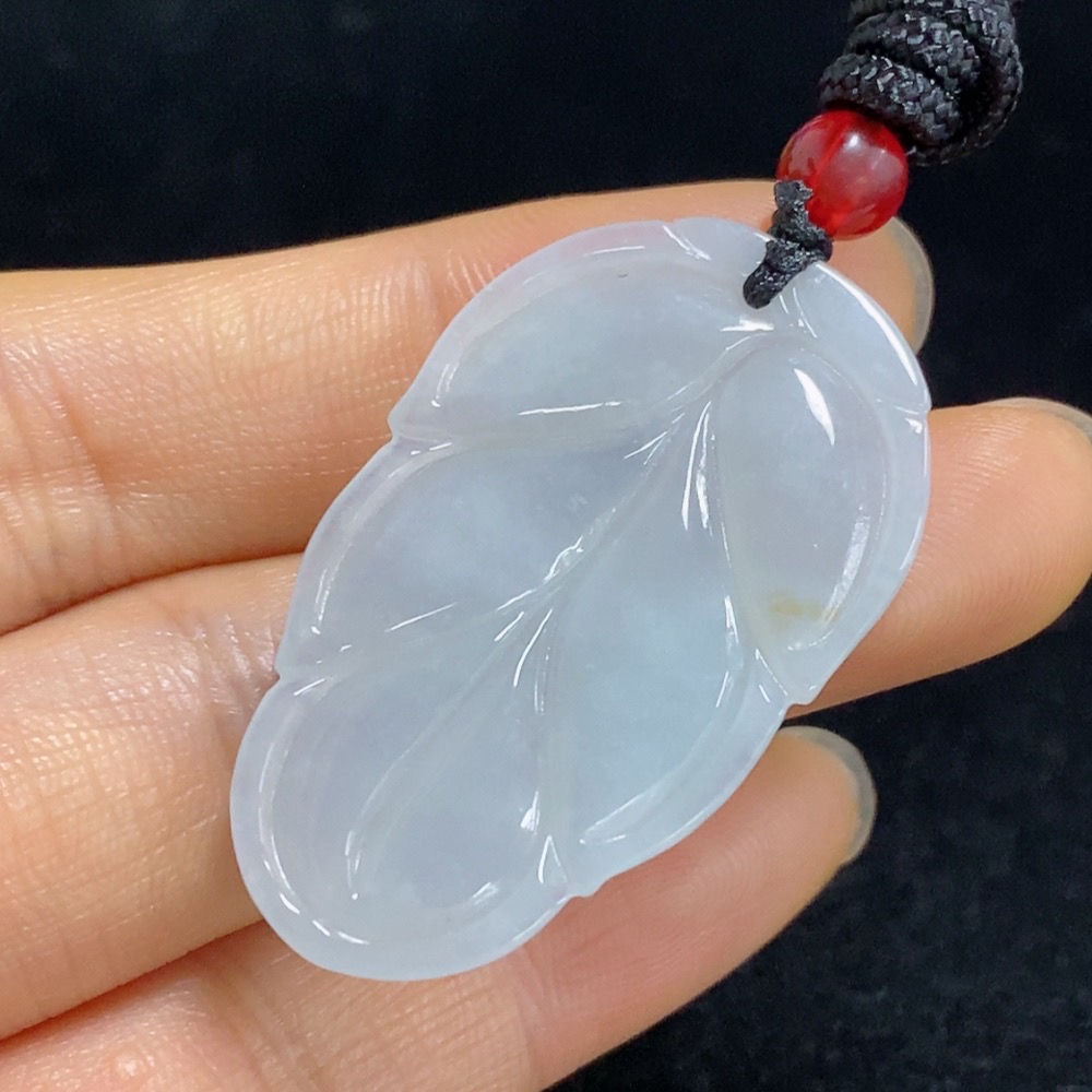 Jadeite Leaf Pendant Total Weight Approx. 9.38g (including rope weight) with non-A grade beads
