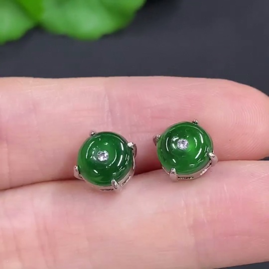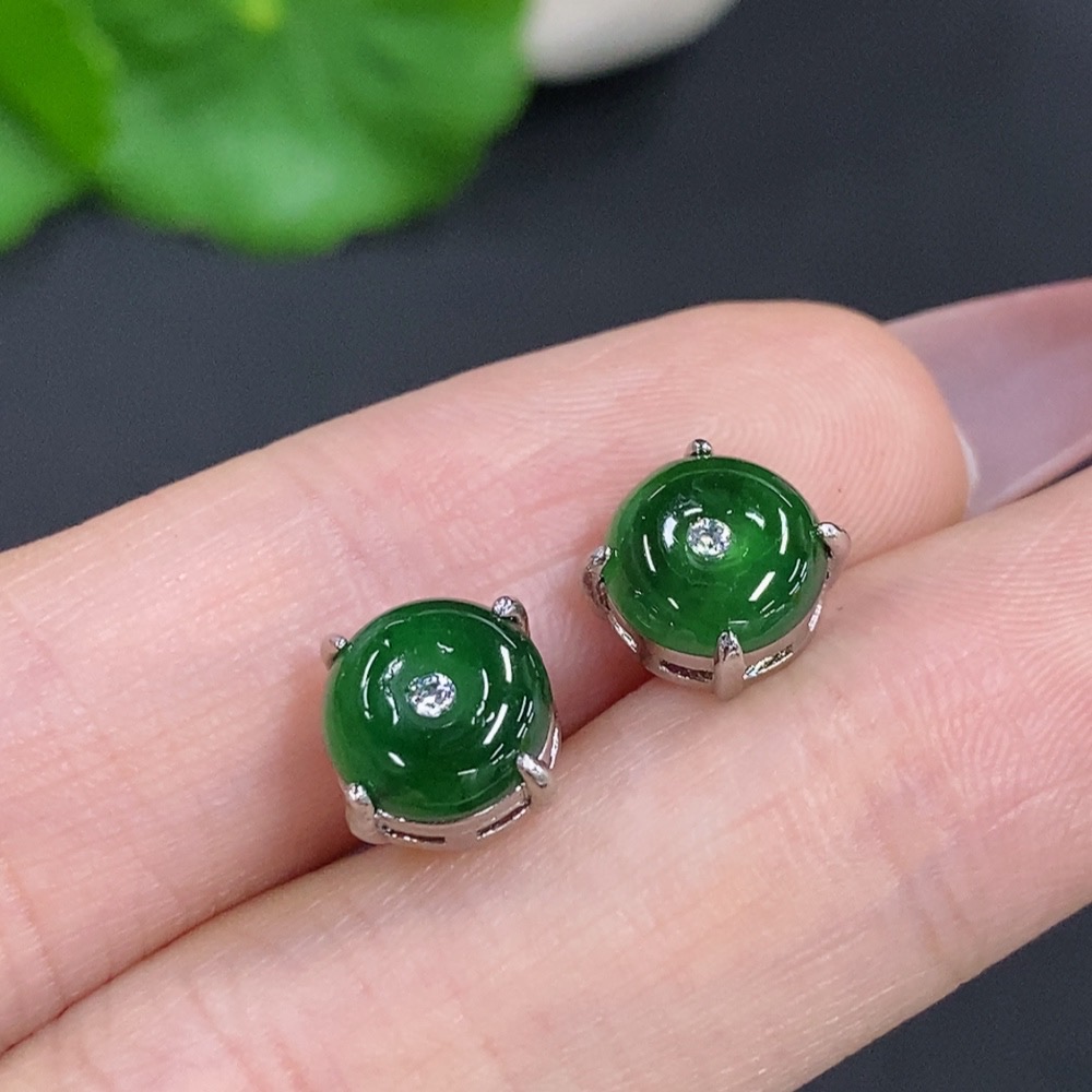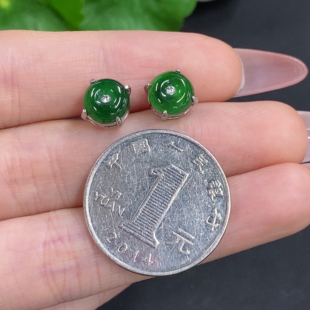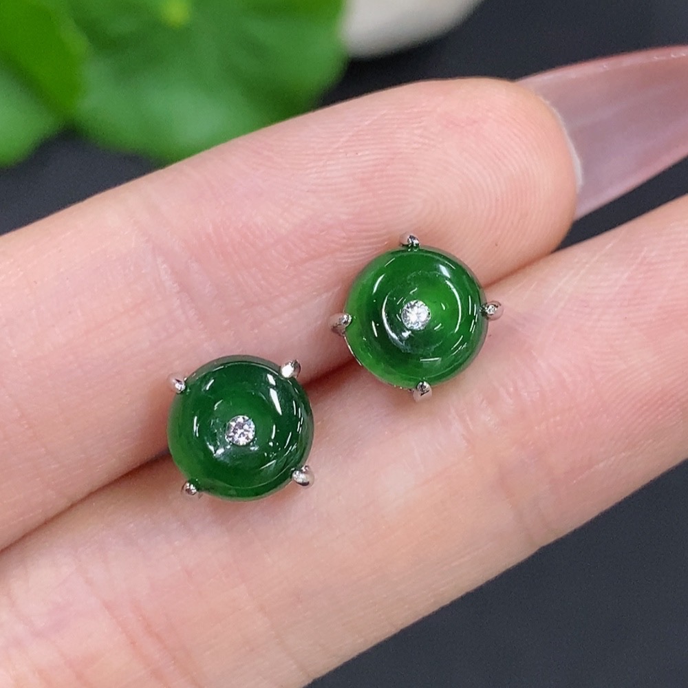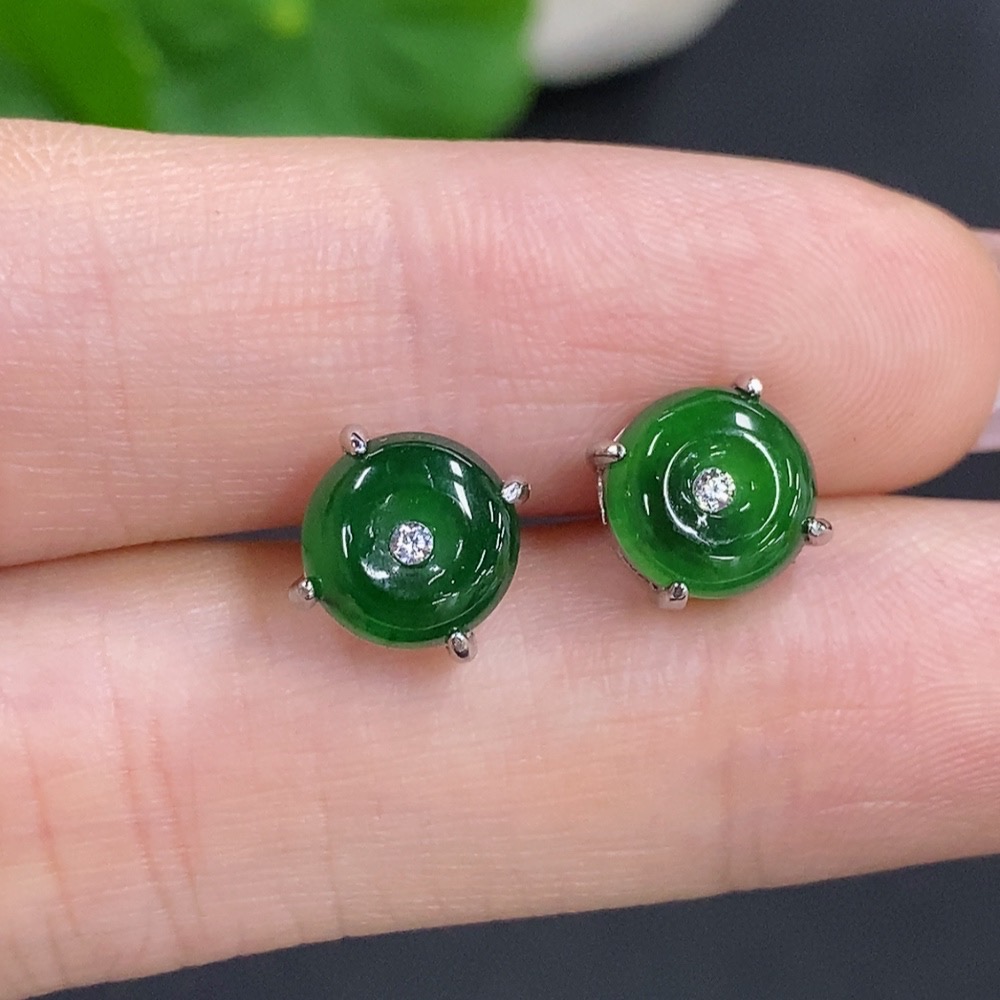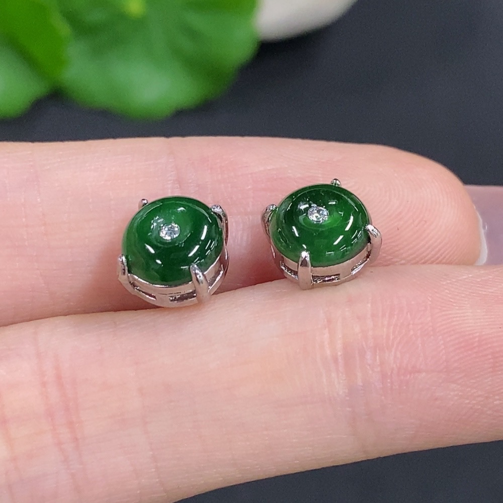 Jadeite Inlaid Earrings Non-Gold Inlaid Total Weight Approx. 2g