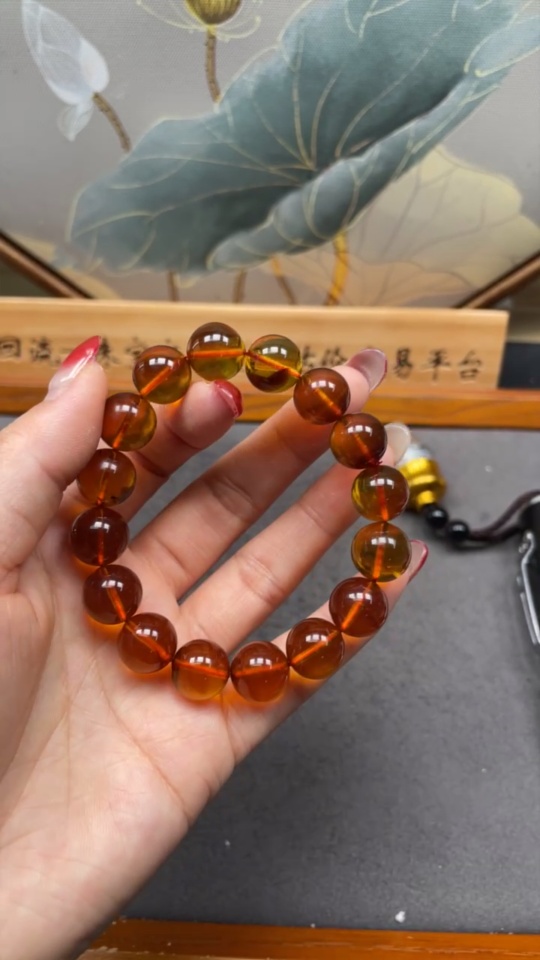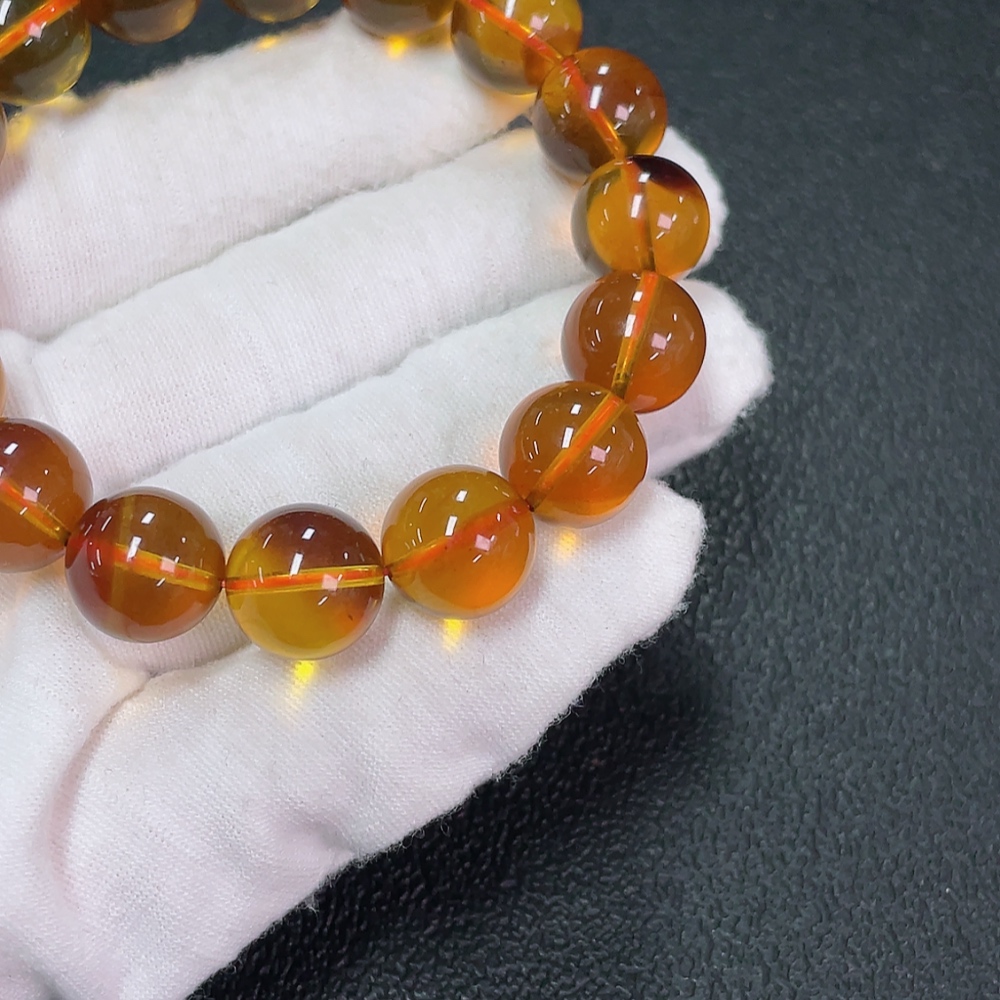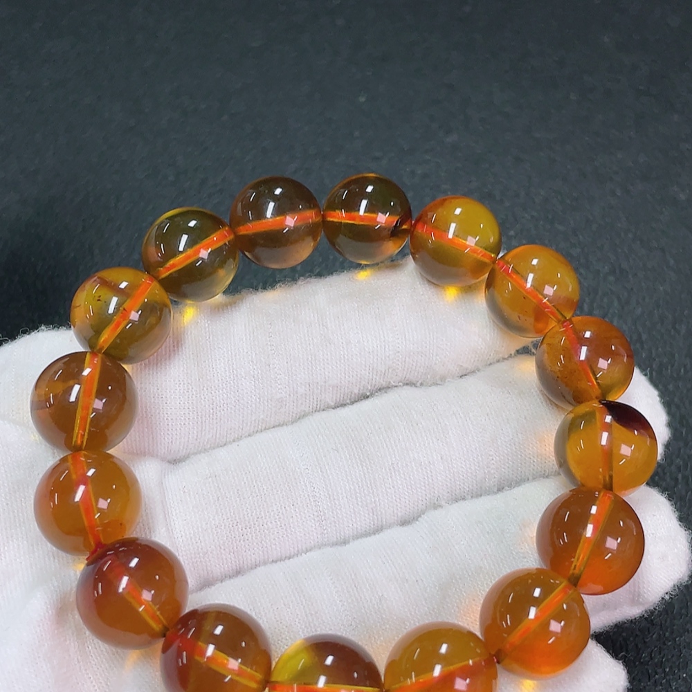 Amber Beeswax Bracelet, Total Weight Approx. 15.92g, Size About 12.1mm