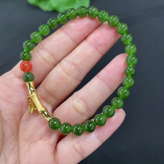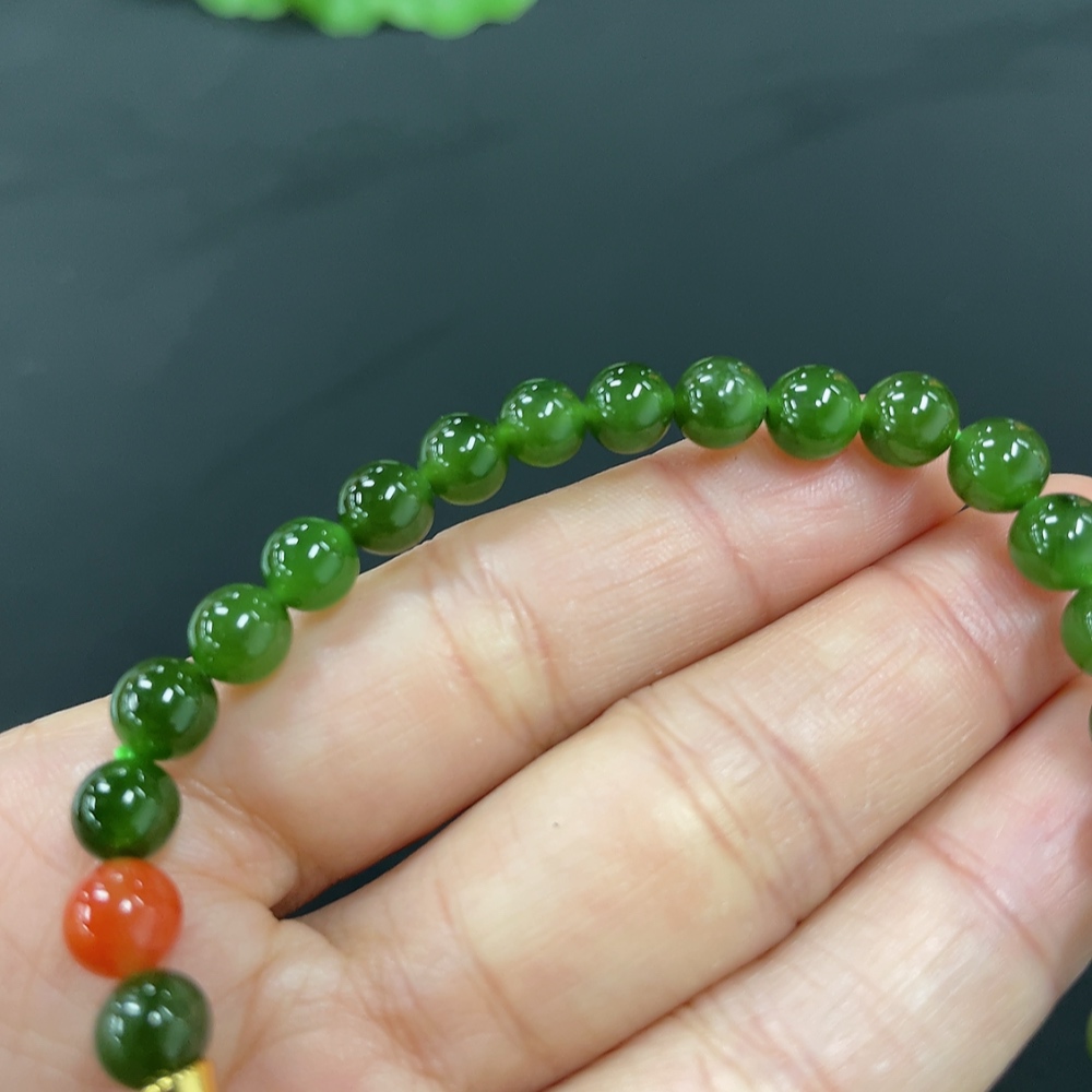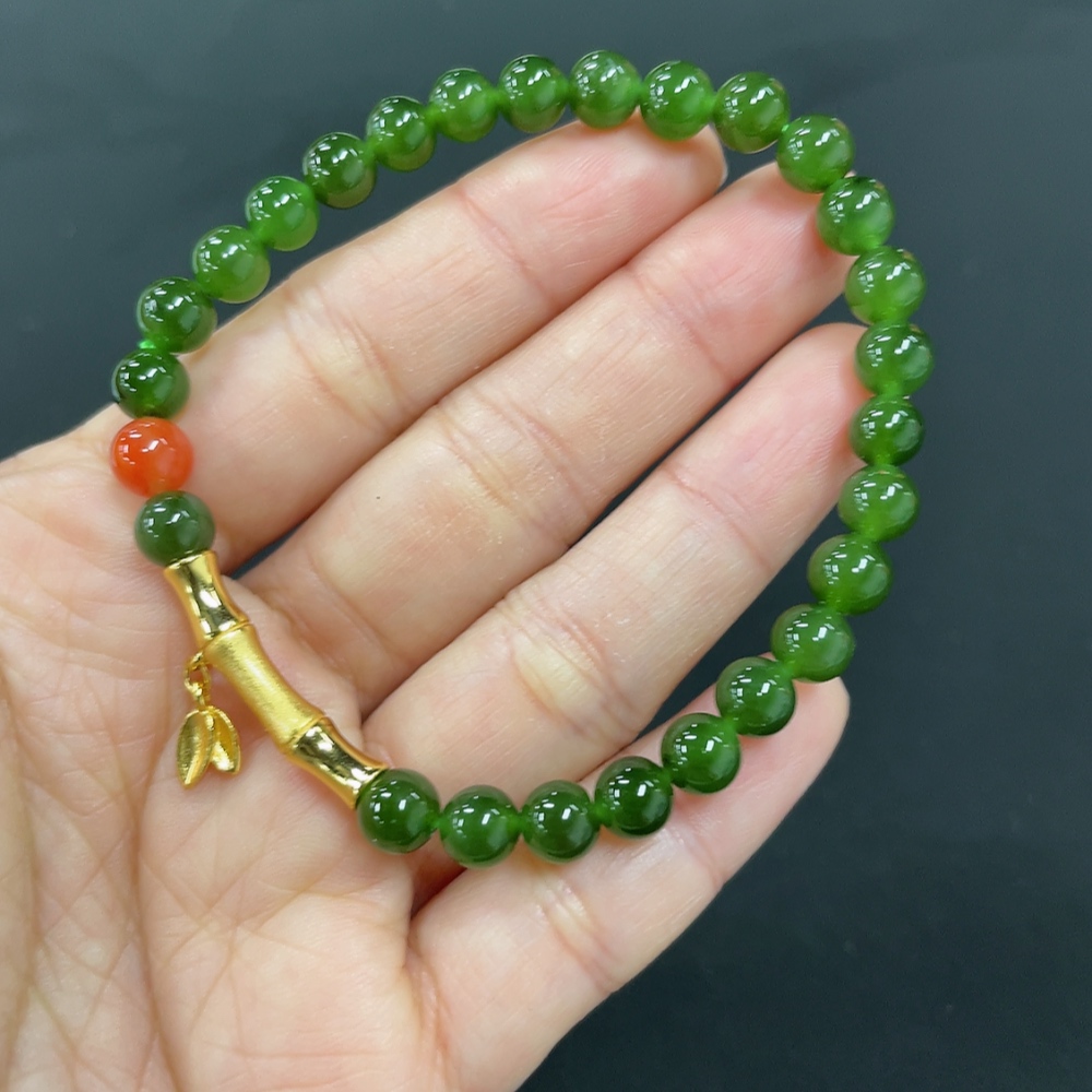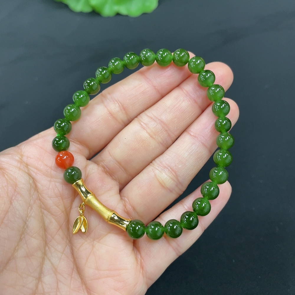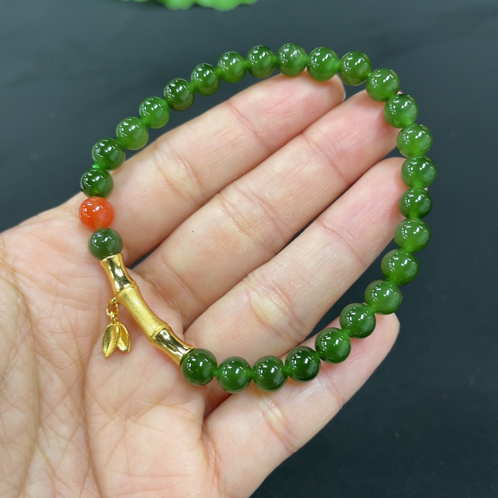 Hetian Jade Jasper Bracelet, approx. 5.7mm, non-gold inlaid, total weight approx. 10.4g, beads not Hetian Jade
