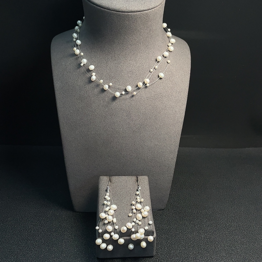Pearl Bead Necklace + Earrings Non-Gold Total Weight Approx. 16.99g Sell as a Lot