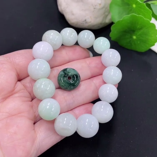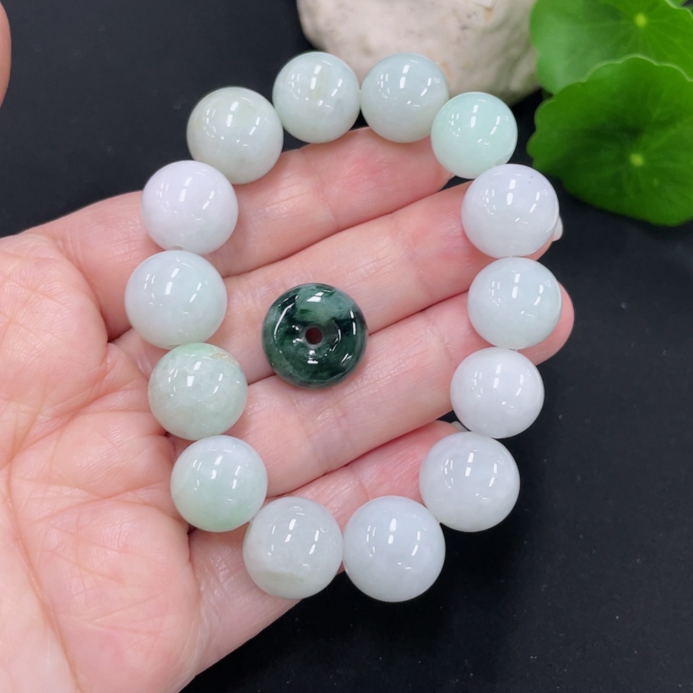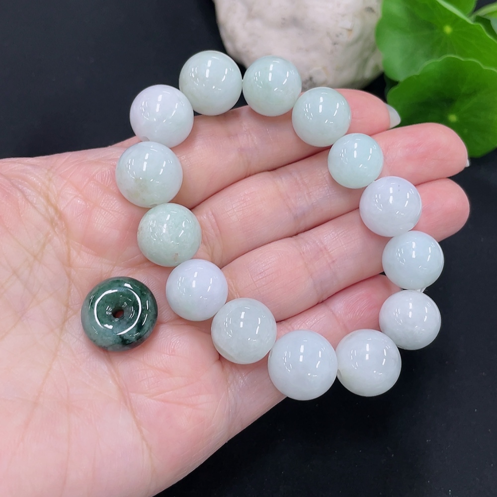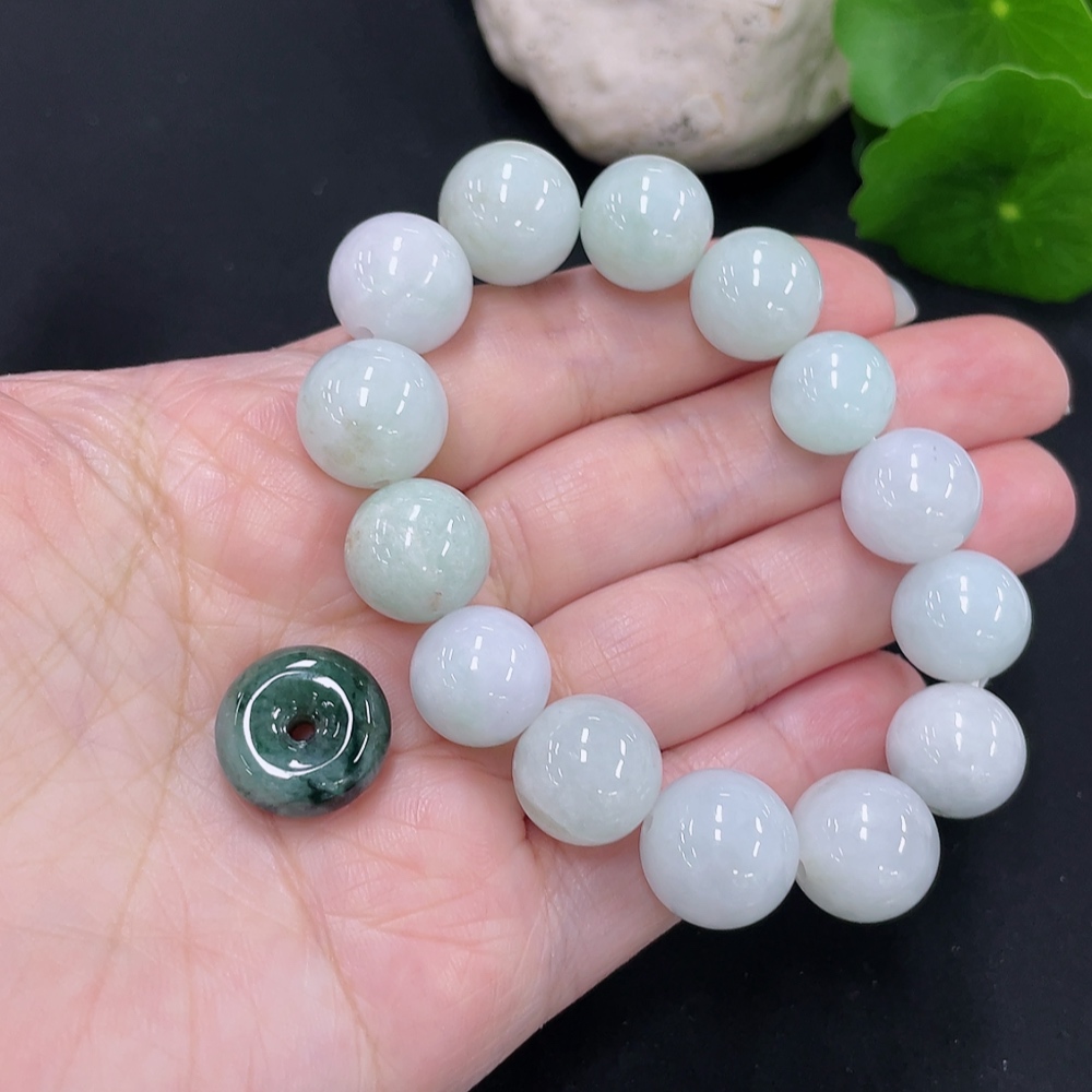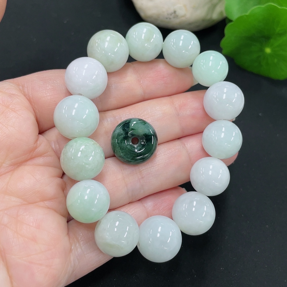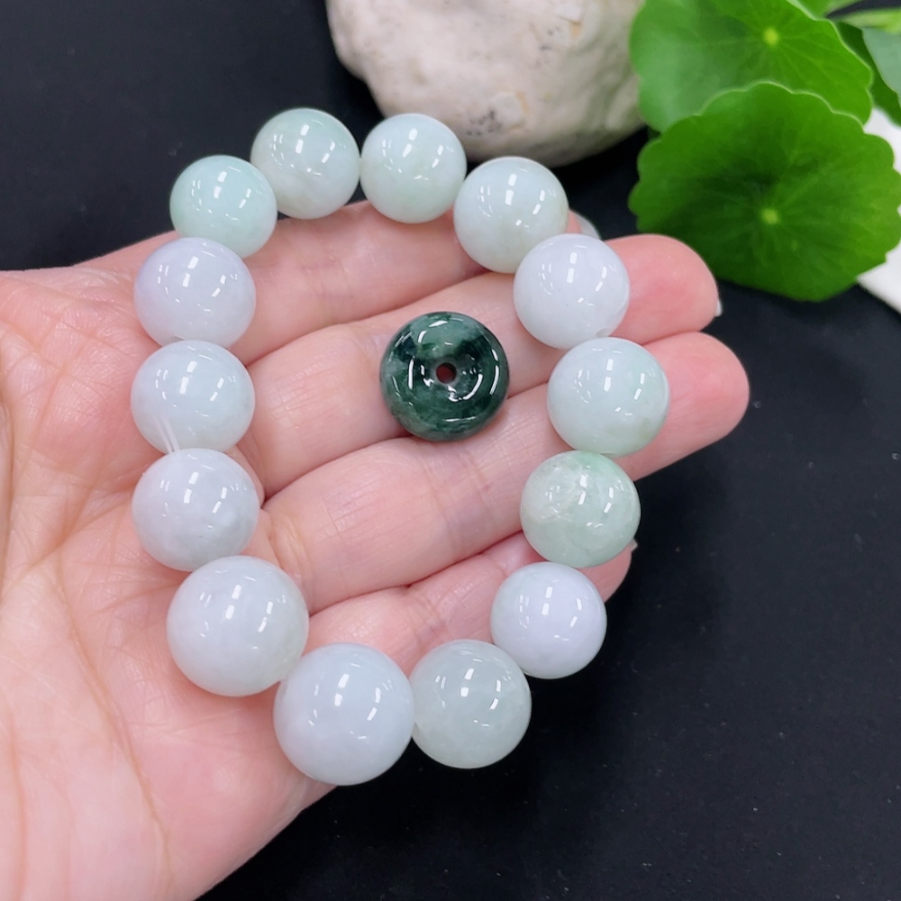 Jadeite Bead Necklace with Peace Pendants Sell as a Lot, Largest Bead Approx. 13.5mm (Including Other Mineral Components)