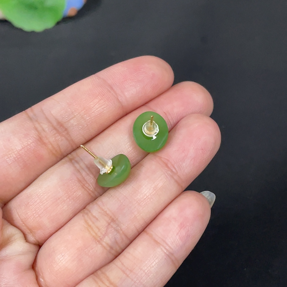 Hetian Jade Jasper Inlaid Earrings 18k Total Weight Approx. [Including Ear Studs] 1.9g