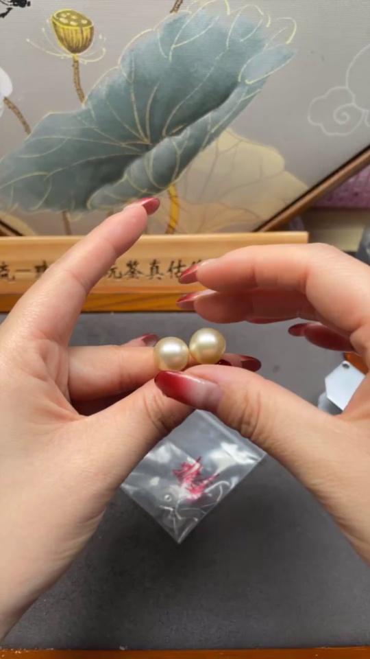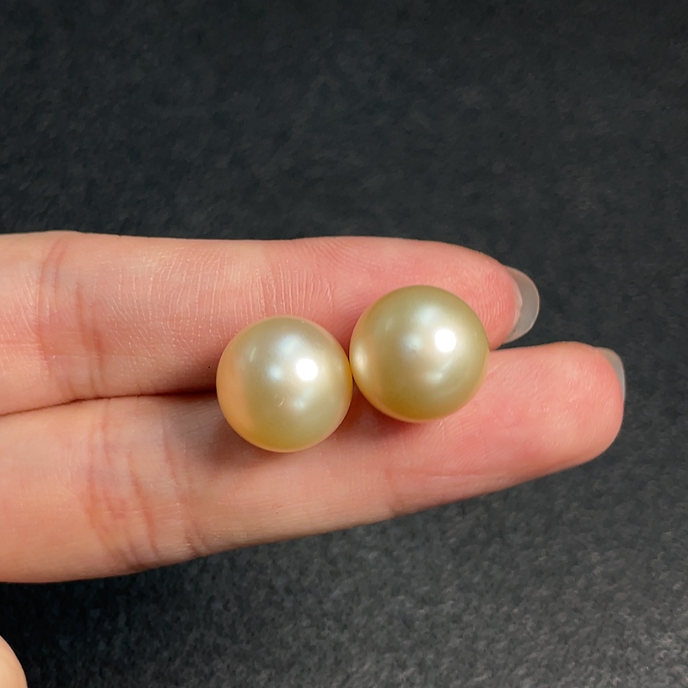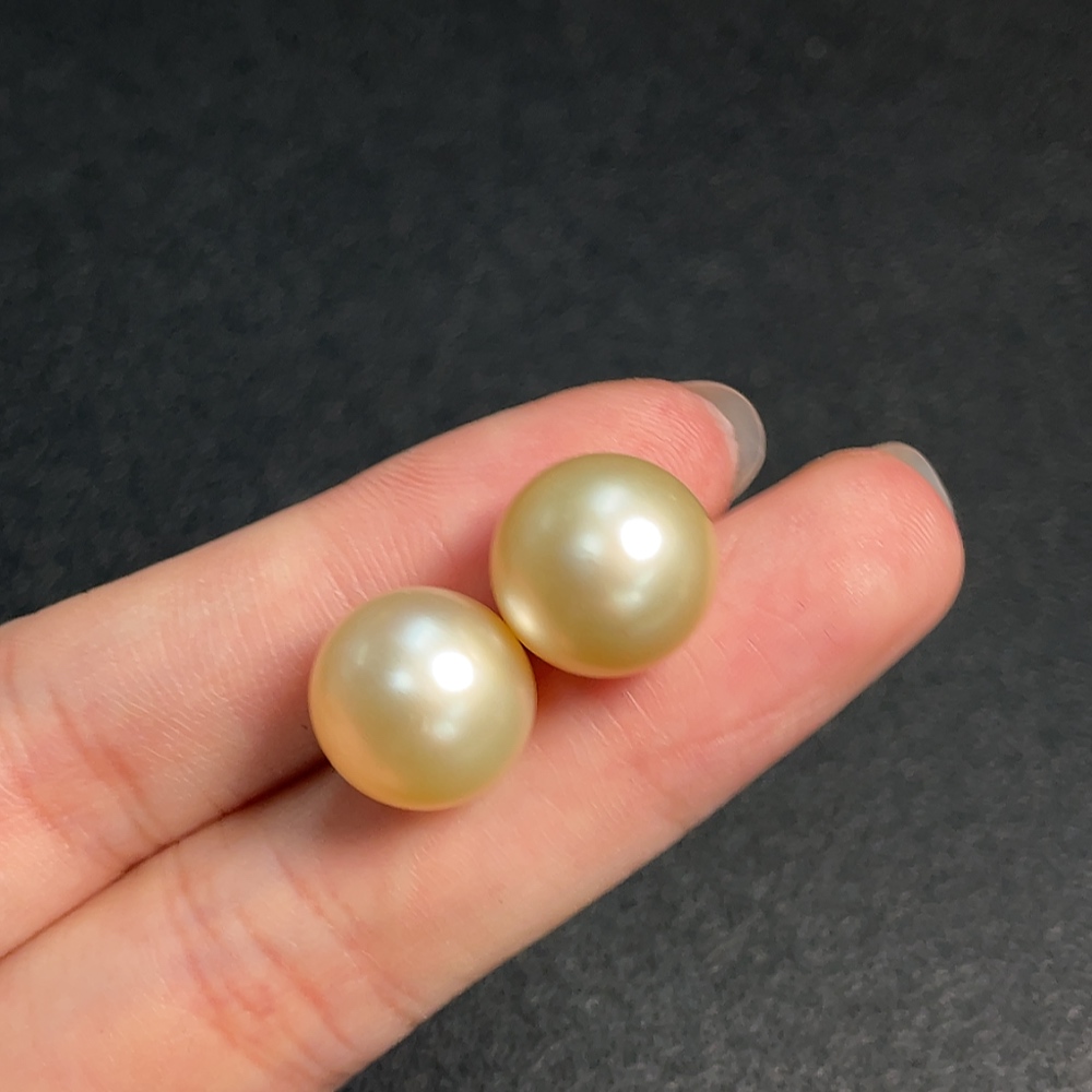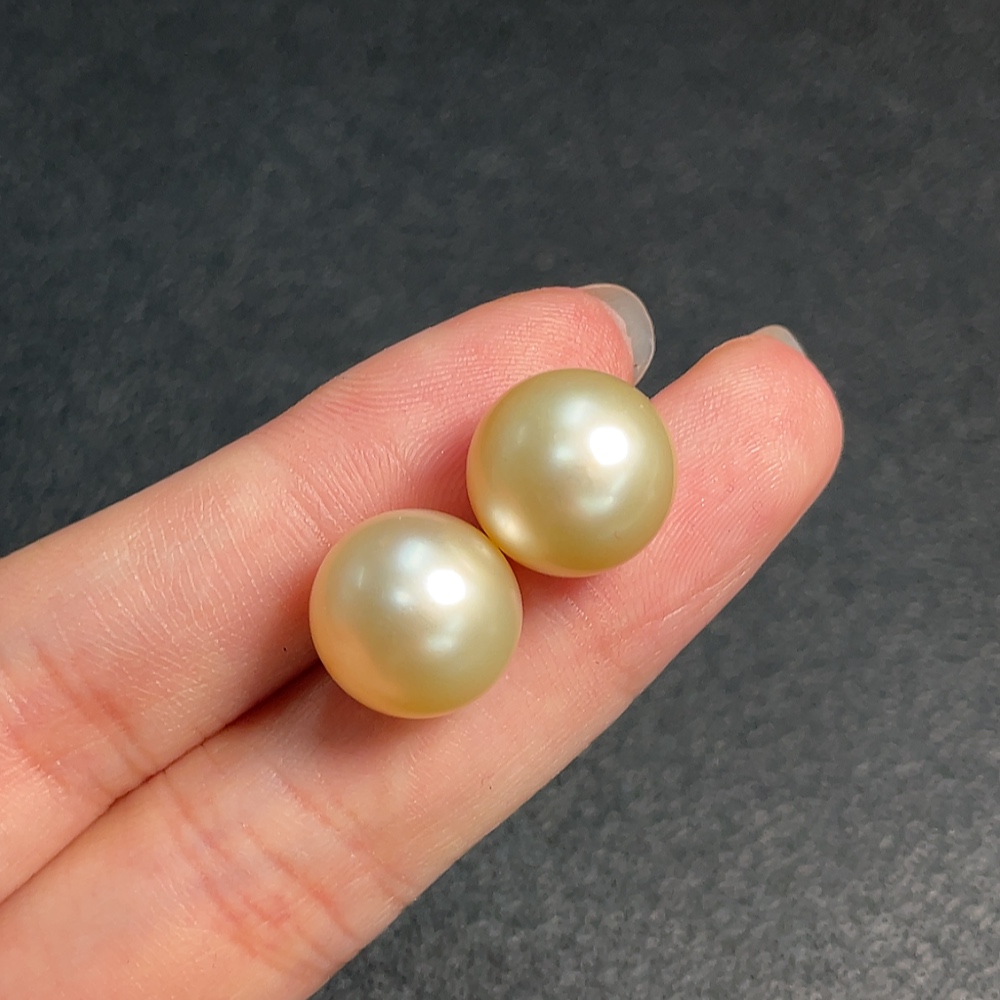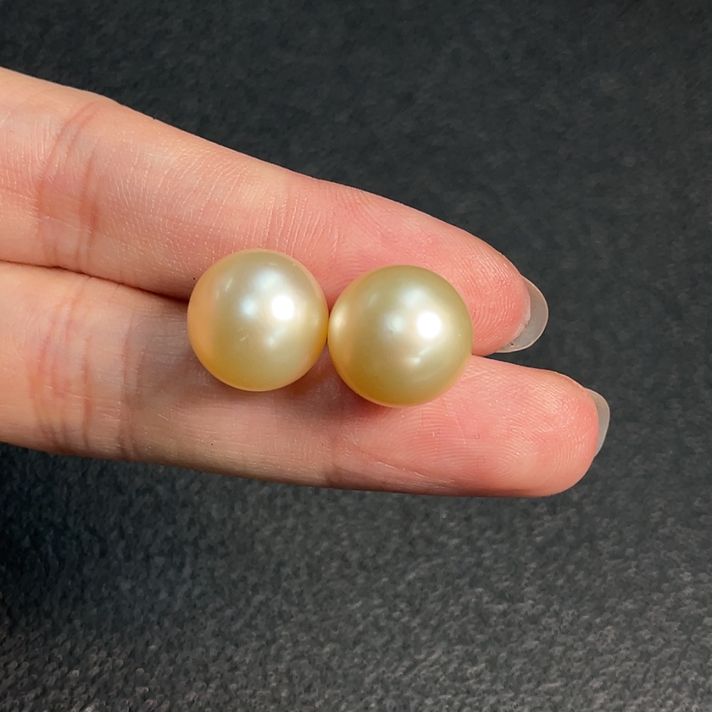 18k seawater pearl earrings, color origin undetermined, total weight approximately 5.84g, size about 12.3mm