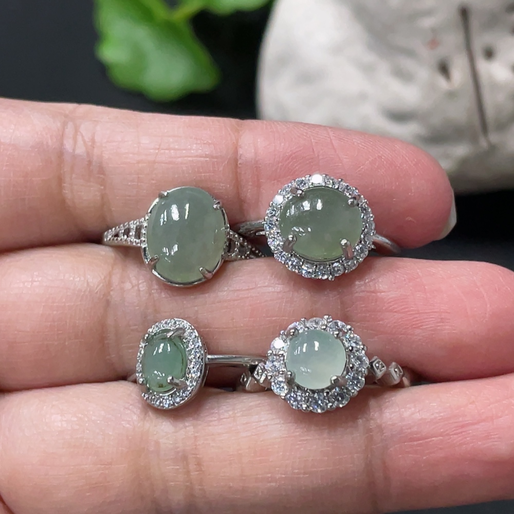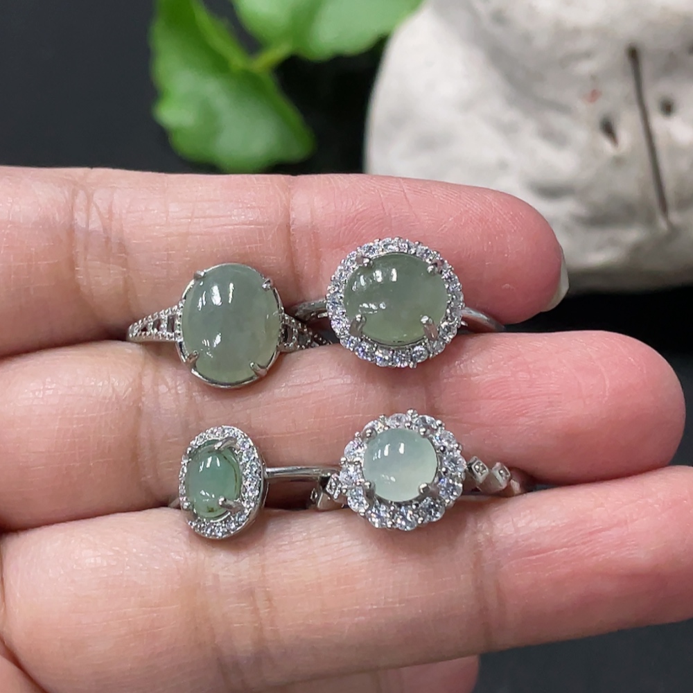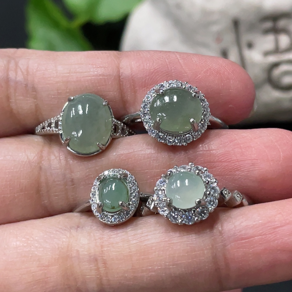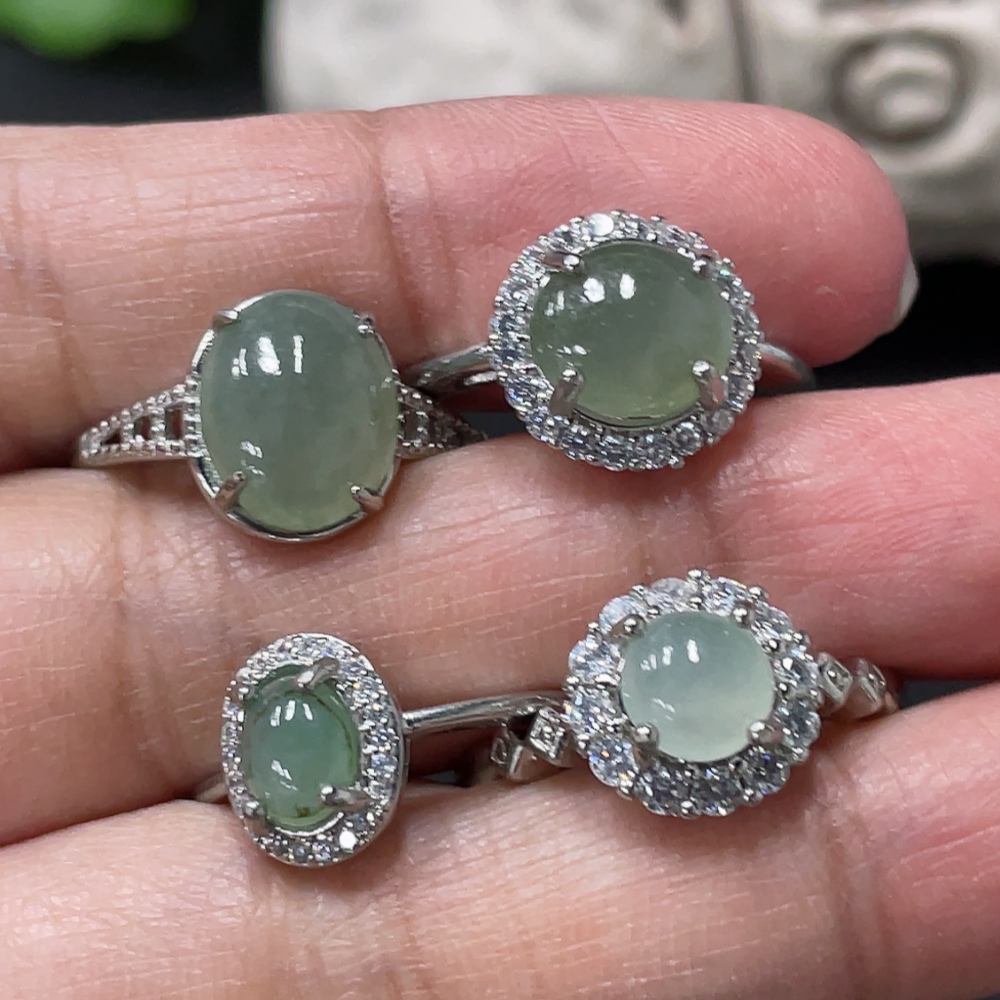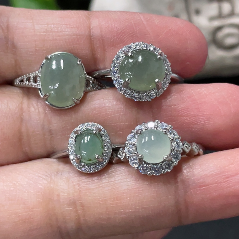 Jadeite Cabochon Inlaid Ring Non-Gold Inlaid Adjustable Size Total Weight Approx. 8.66g