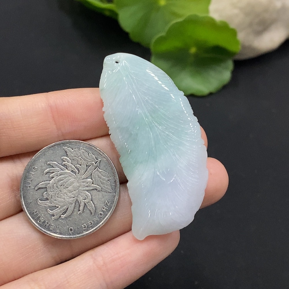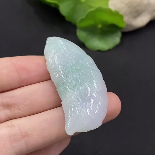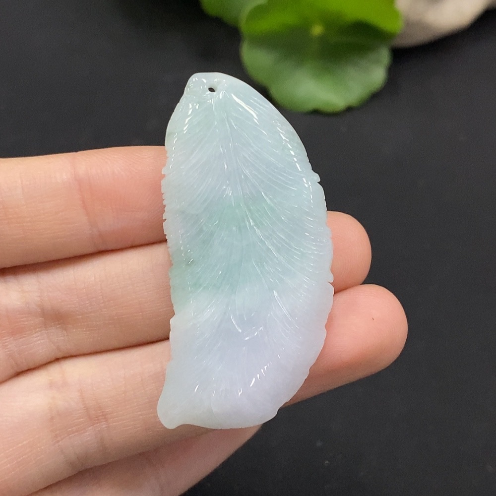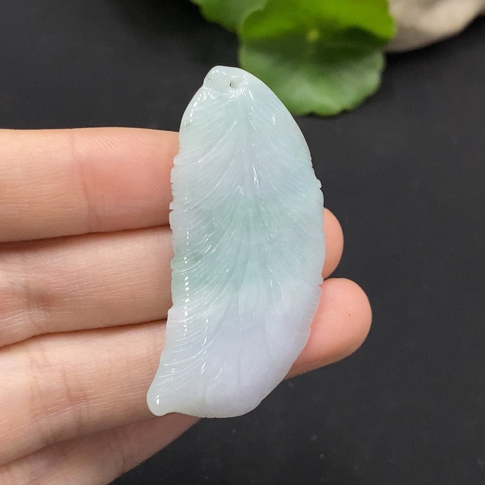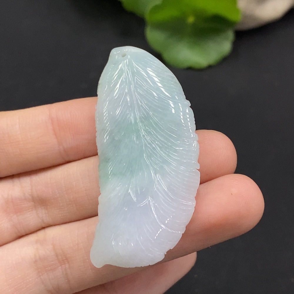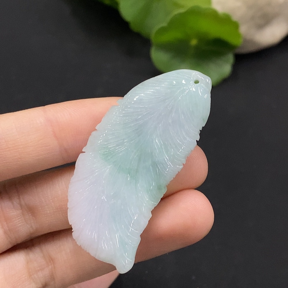 Jadeite Feather Pendant Total Weight Approx. 13.5g