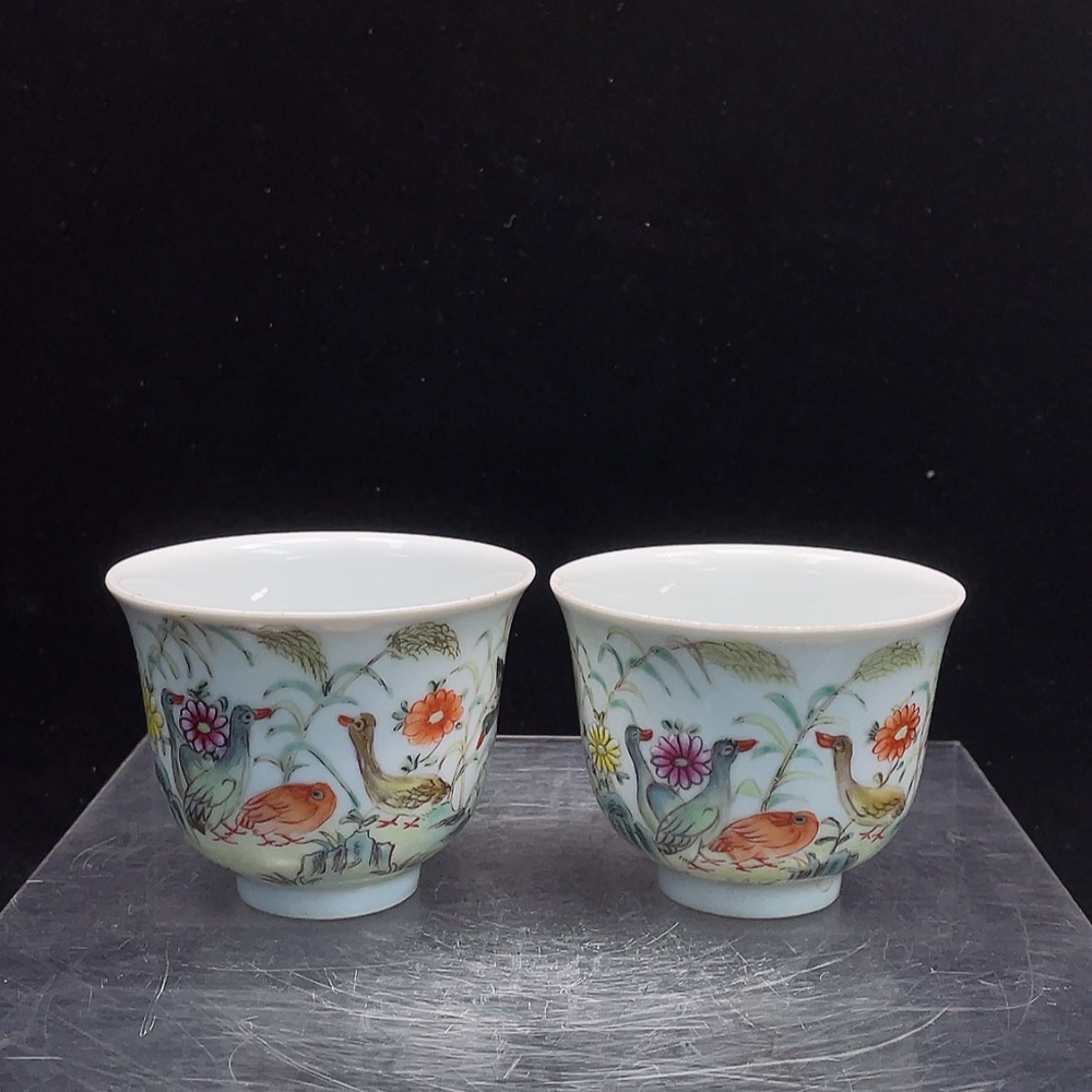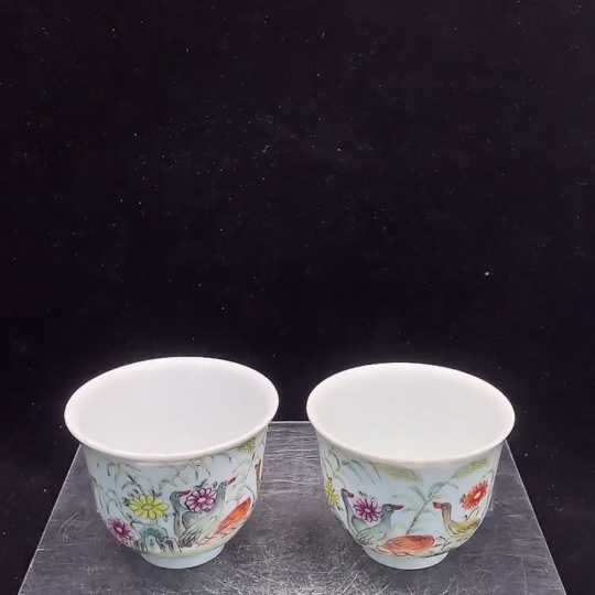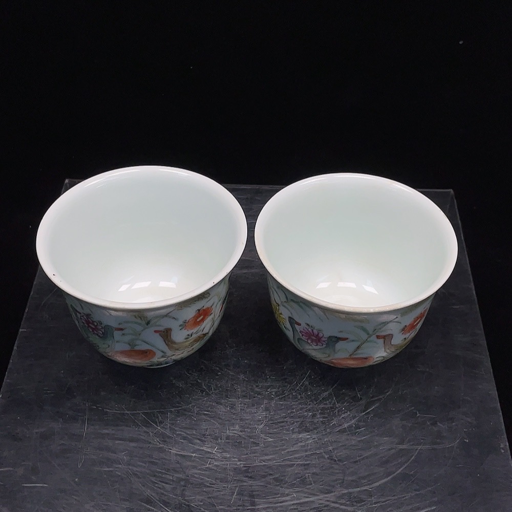 Ceramic 2-piece set, mint condition, Republic of China era🪟painted animal motif cups