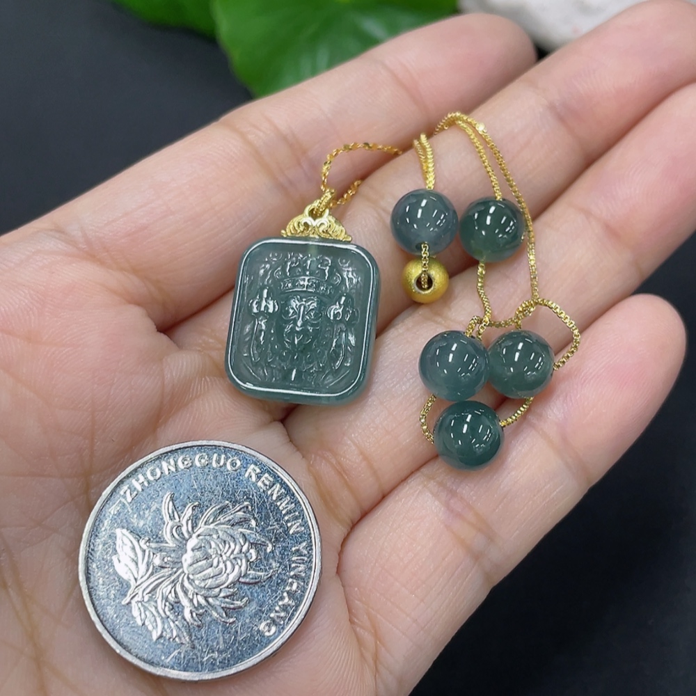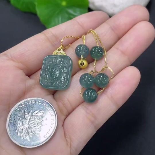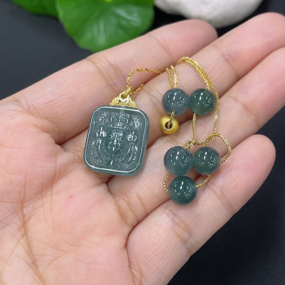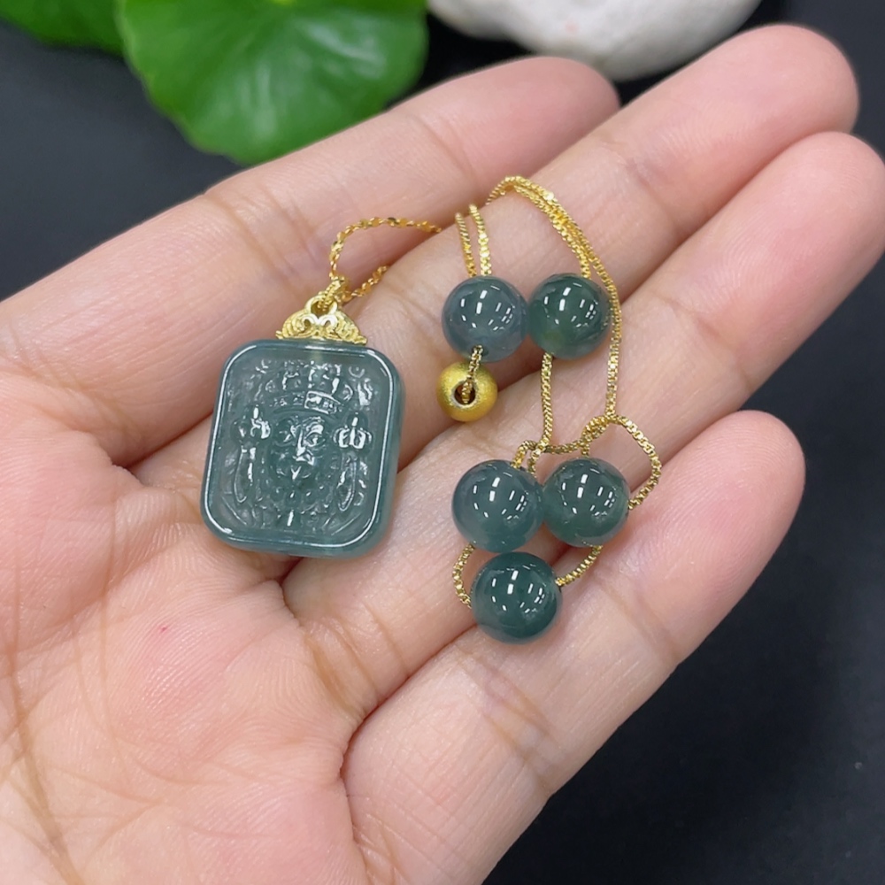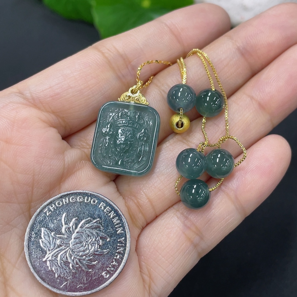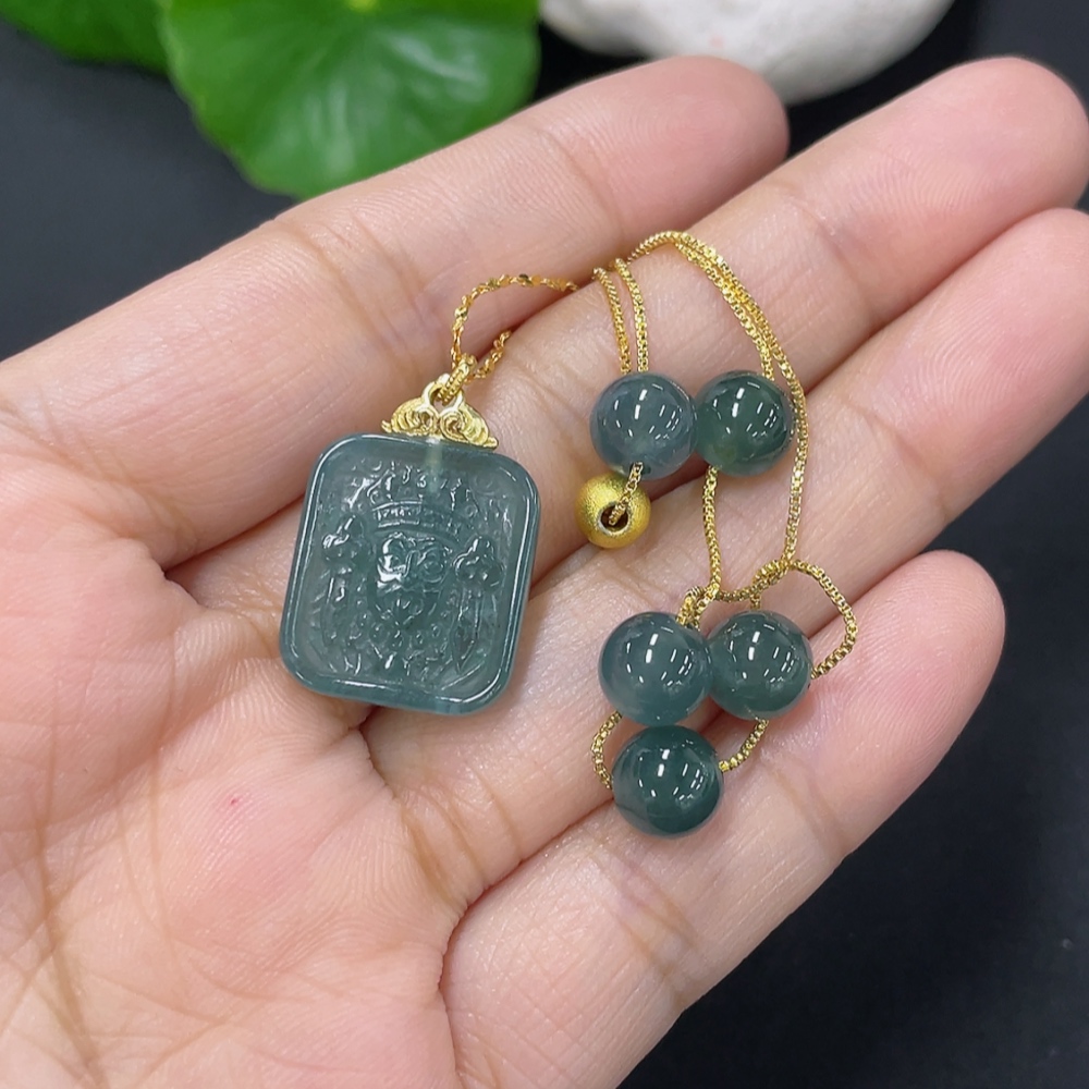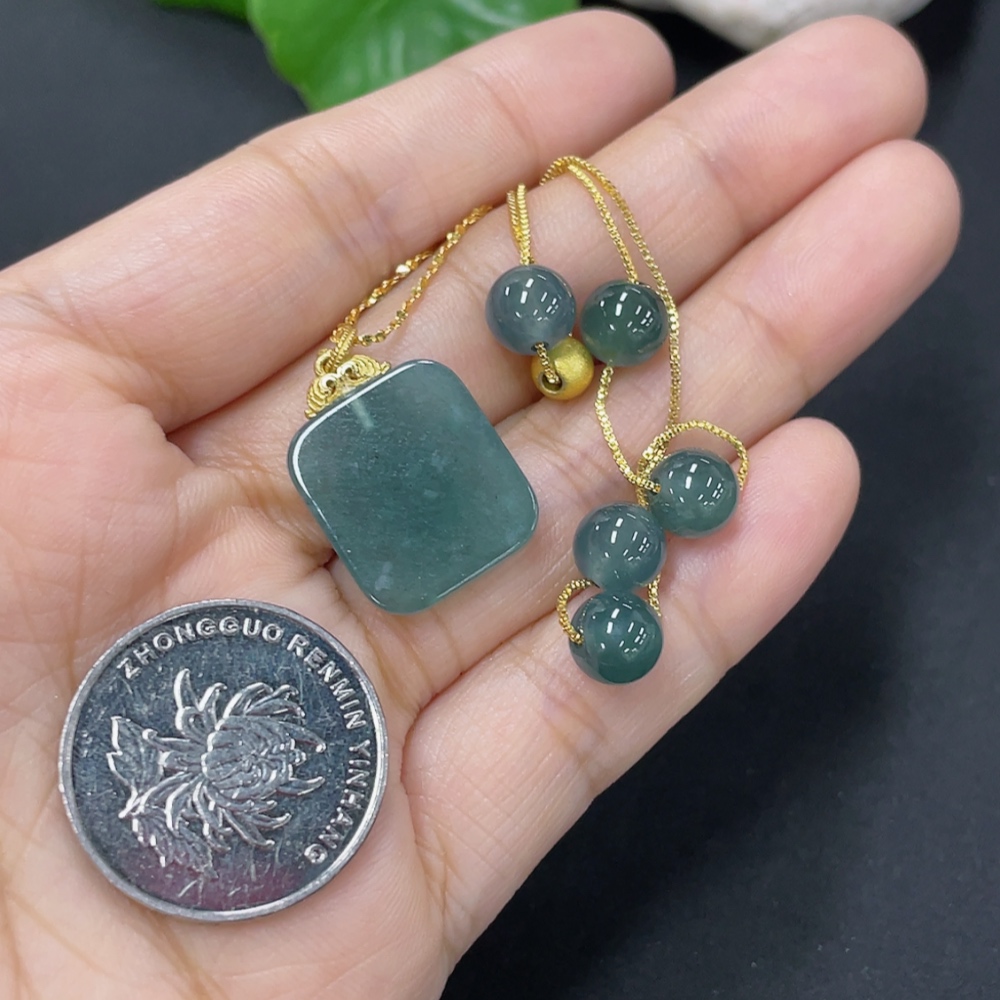 Jadeite inlaid pendant Total weight about 8.2g Non-gold inlaid