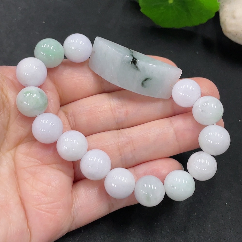 Jadeite Bracelet with Other Mineral Components, Total Weight Approximately 57.82g