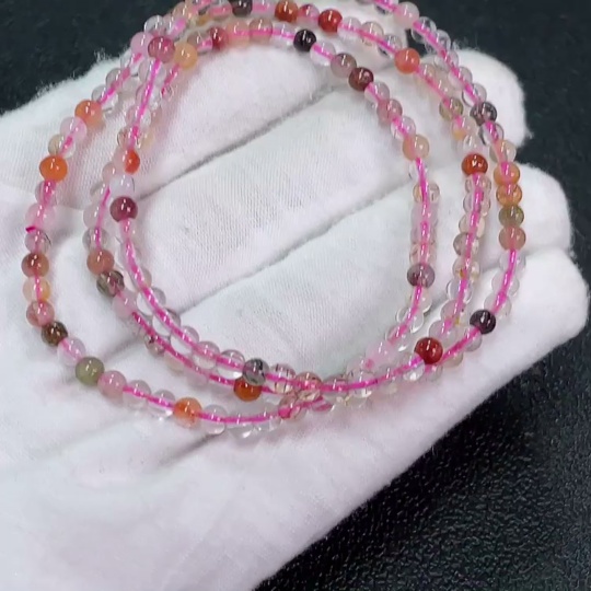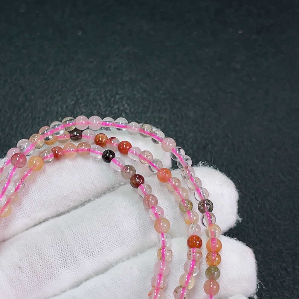 Crystal Bead Strand, Color Origin Undetermined, Visible Organic Matter, Total Weight Approx. 10.68g, Size Approx. 3.6mm (Filled)