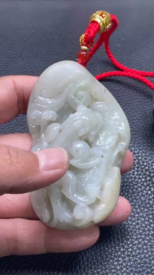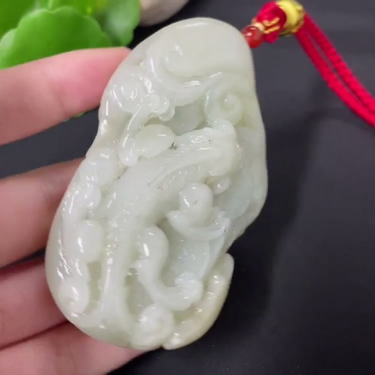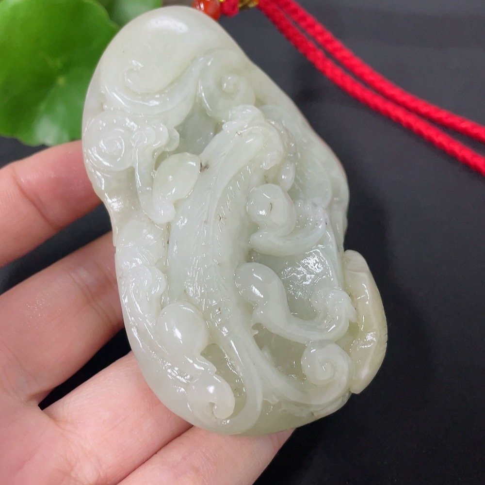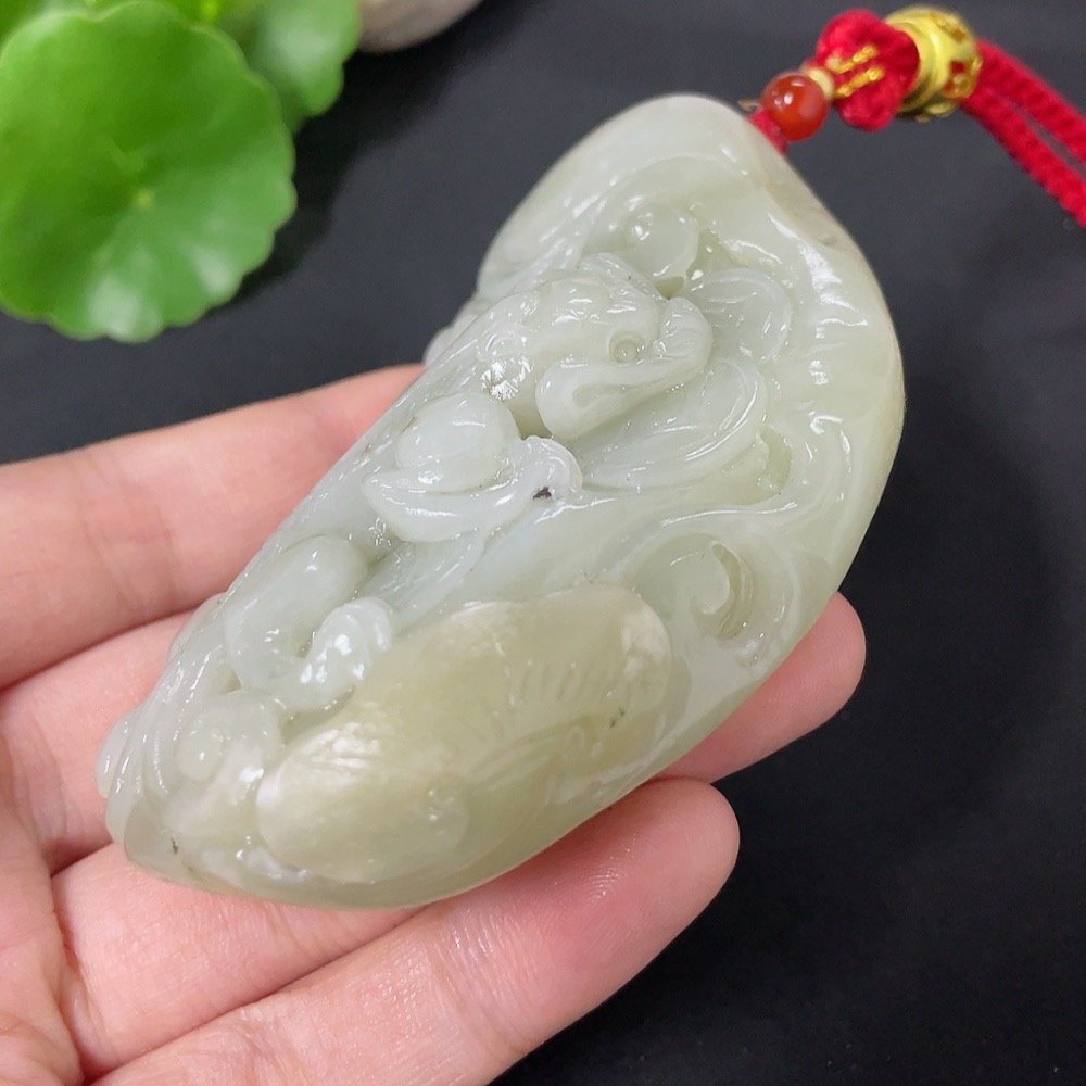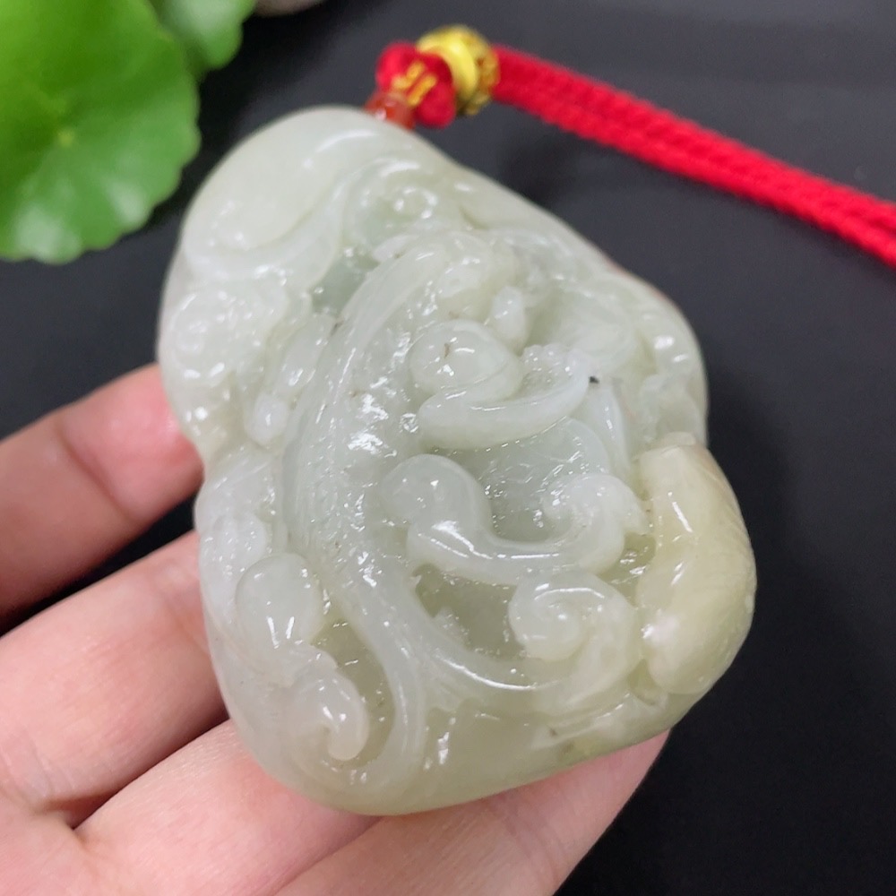Hetian Jade Handheld Carving Auspicious Beast Undetermined Skin Color Origin Total Weight Approx. (Including Rope) 138.5g