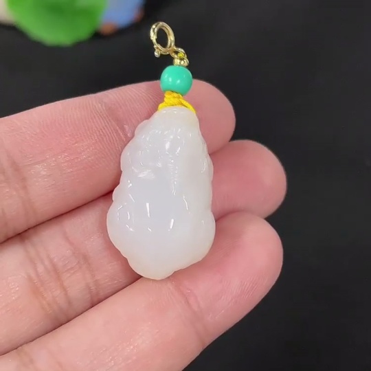 Hetian Jade Pendant Auspicious Beast Total Weight Approx. 7.6g Non-Gold