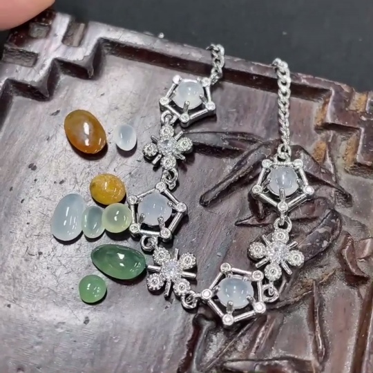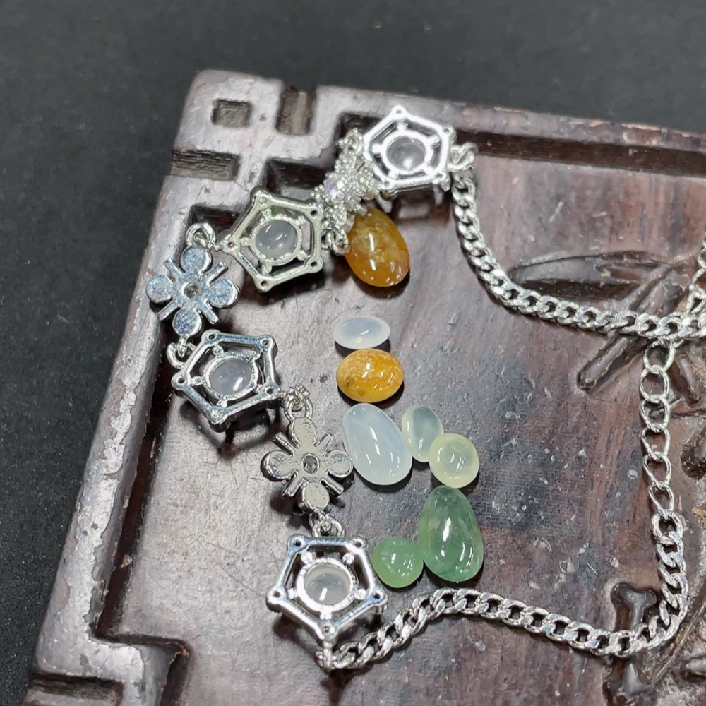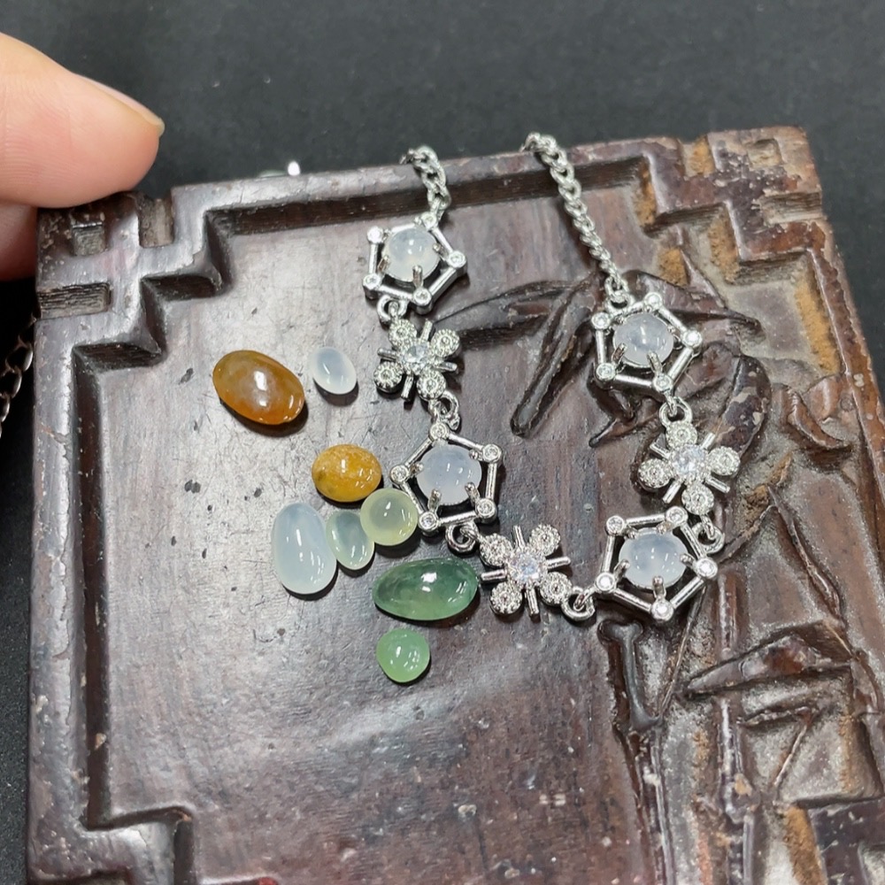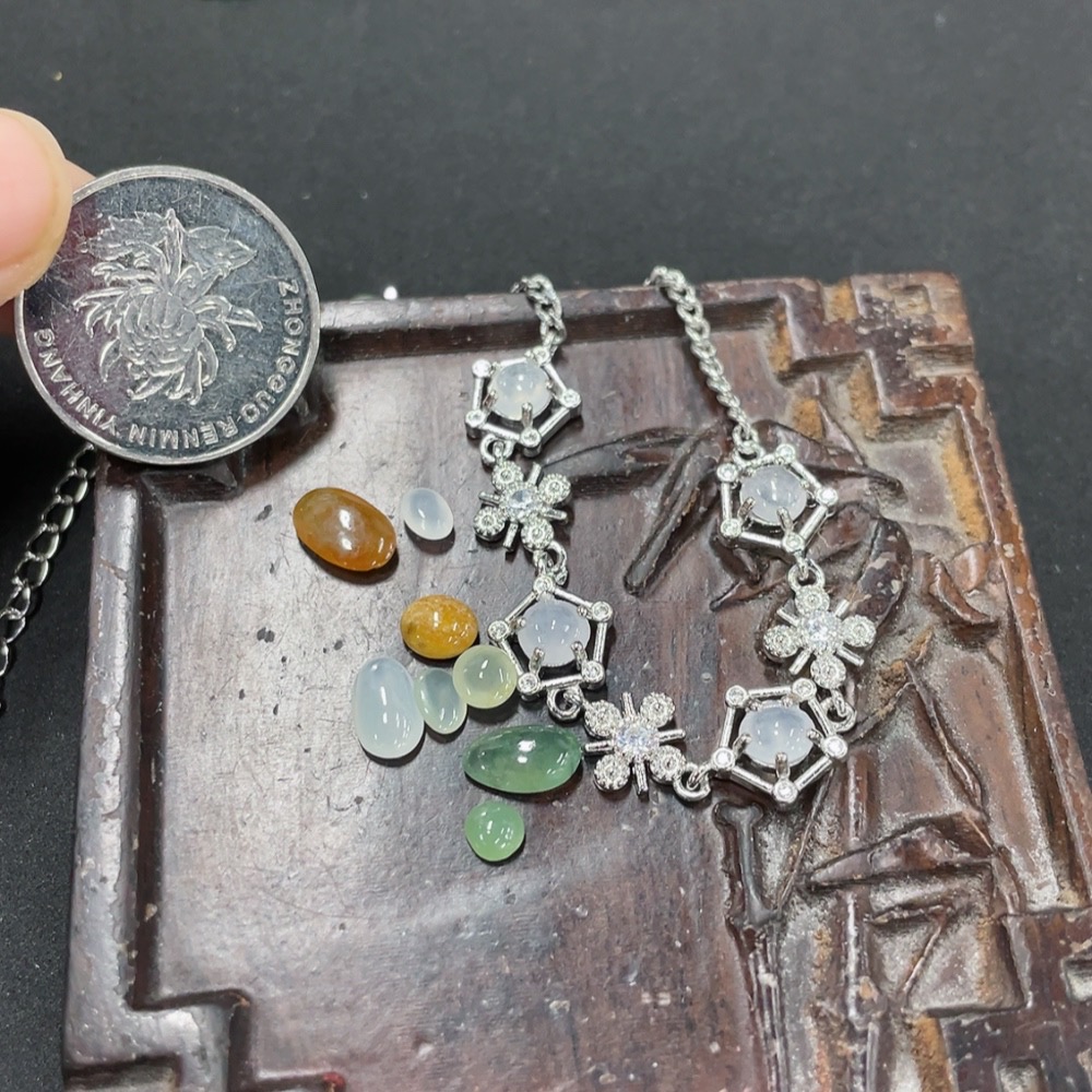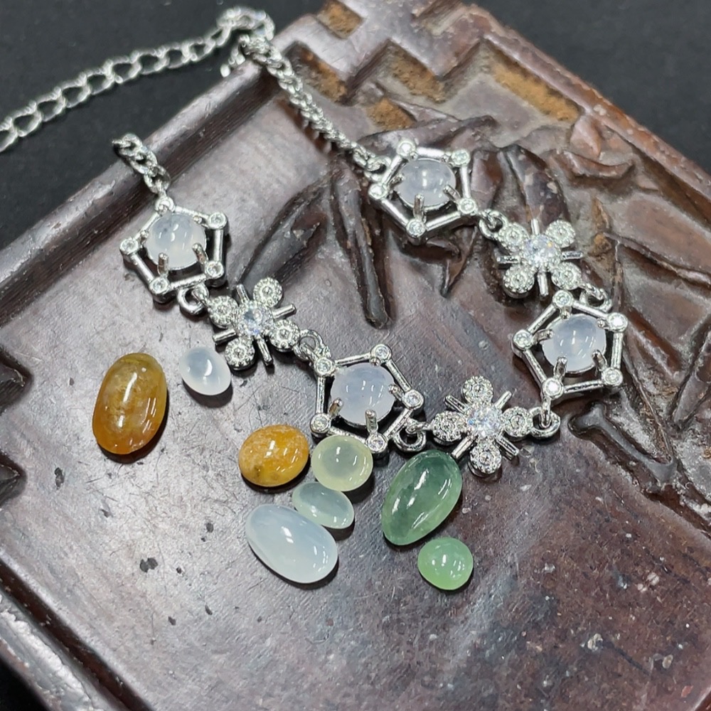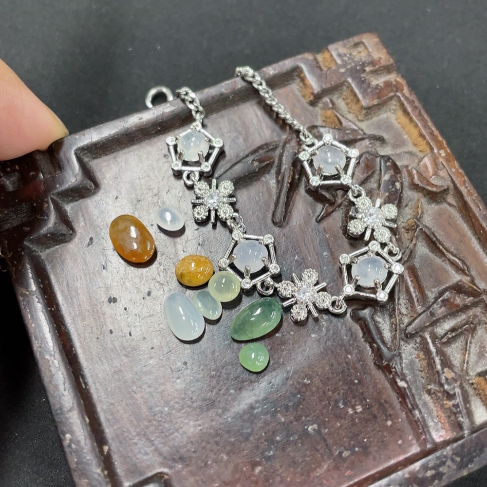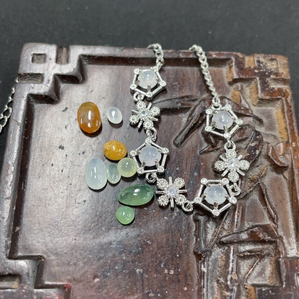 Jadeite Inlaid Bracelet + Cabochon Sell as a Lot (Non-Gold Inlaid)