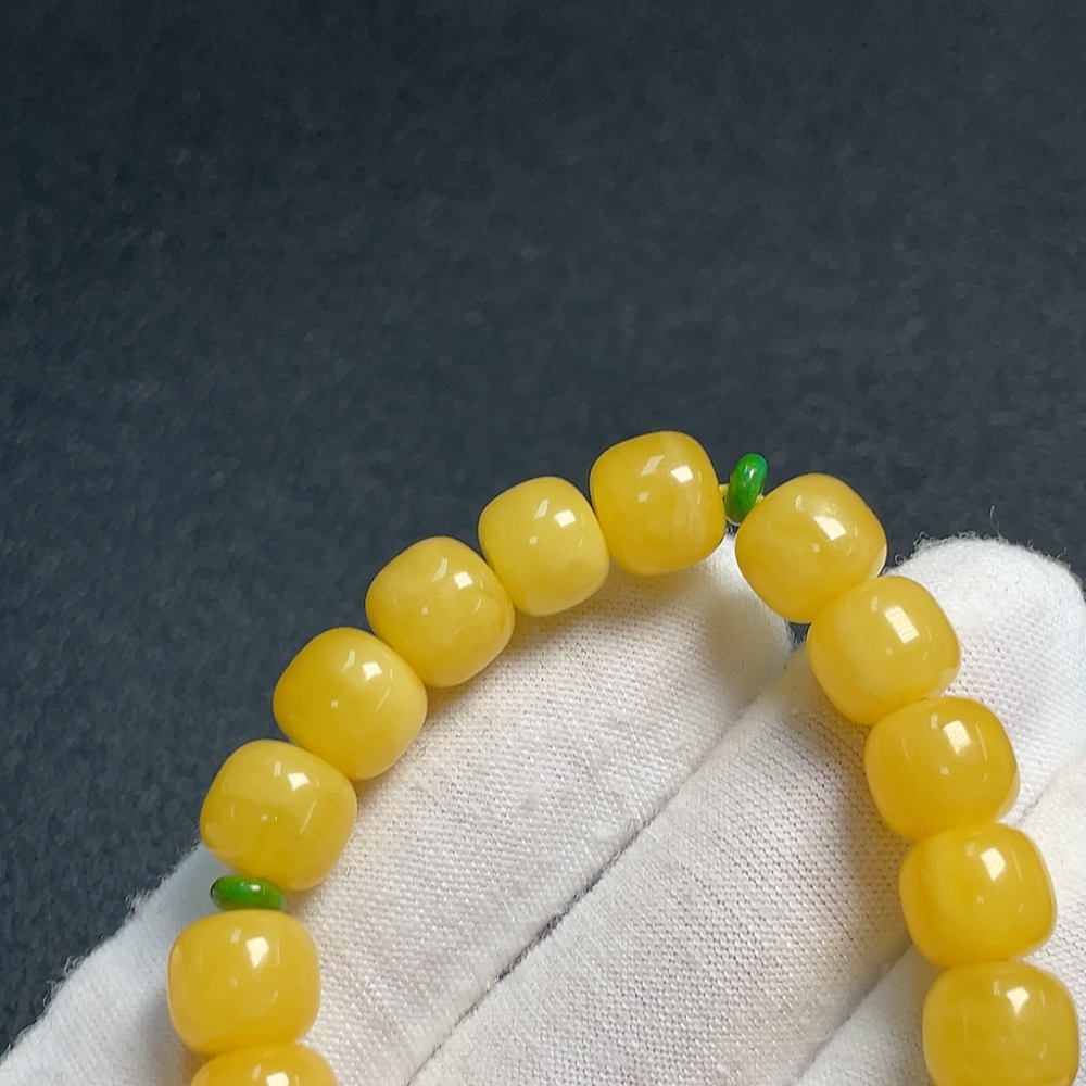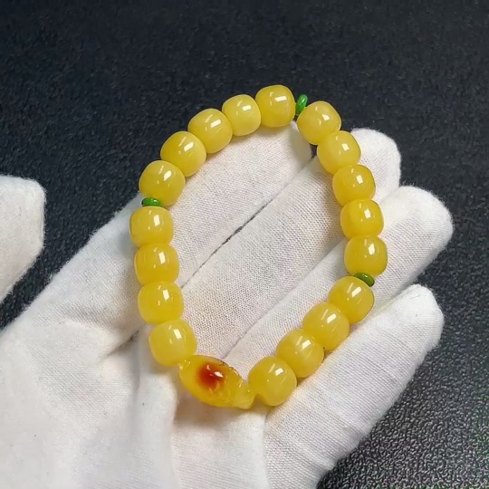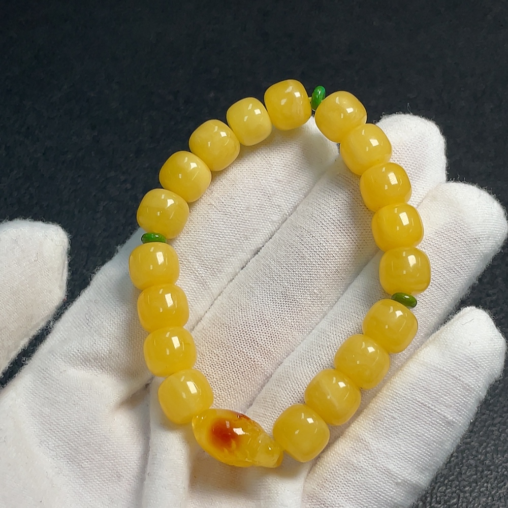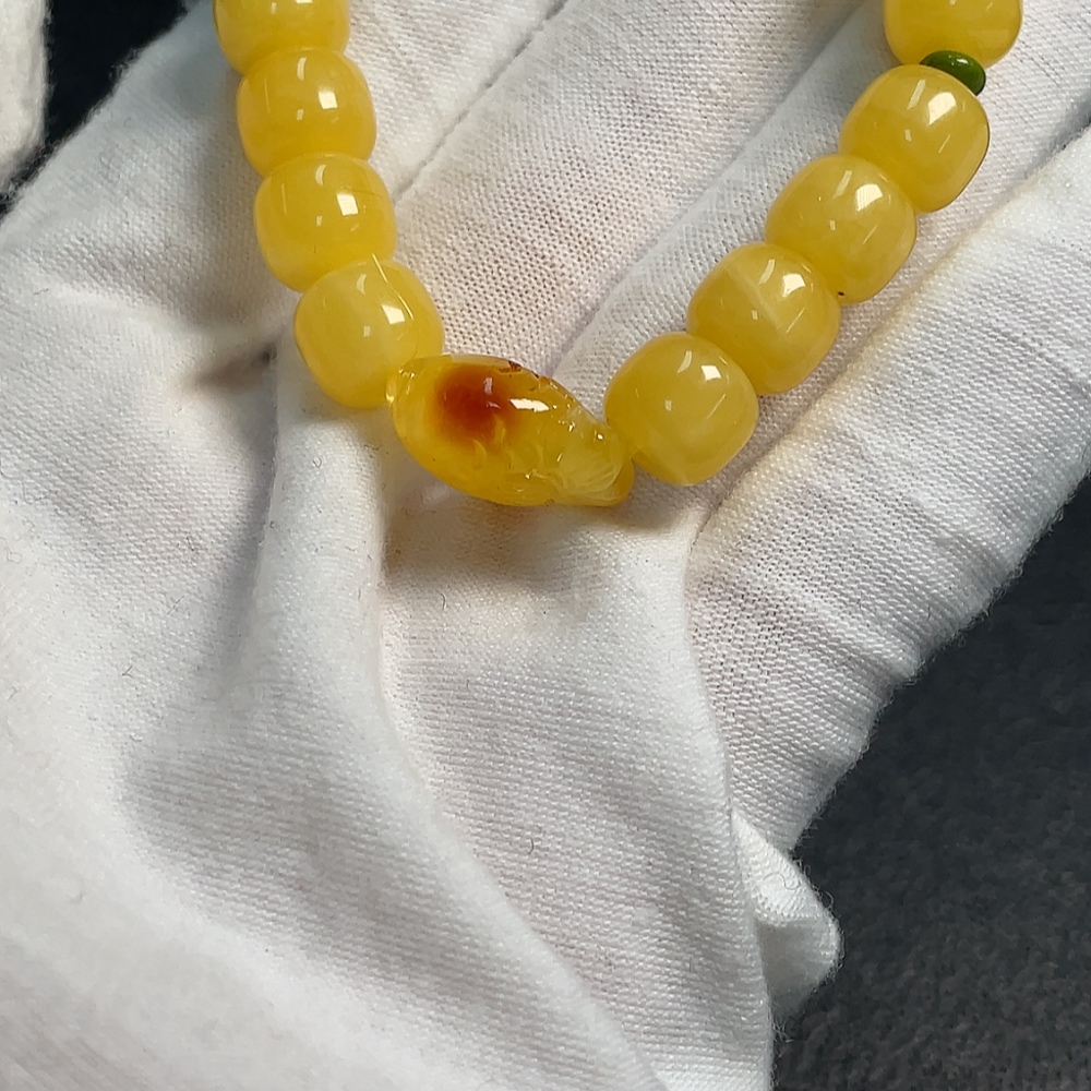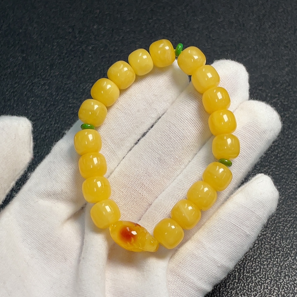 Amber Beeswax Beaded Bracelet, Carved Piece Coated with Colorless Film, Non-Natural Stones Considered, Total Weight Approx. 9.13g, Size About 8.9mm