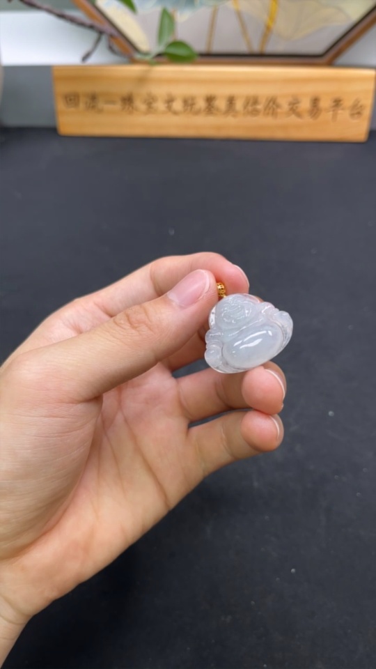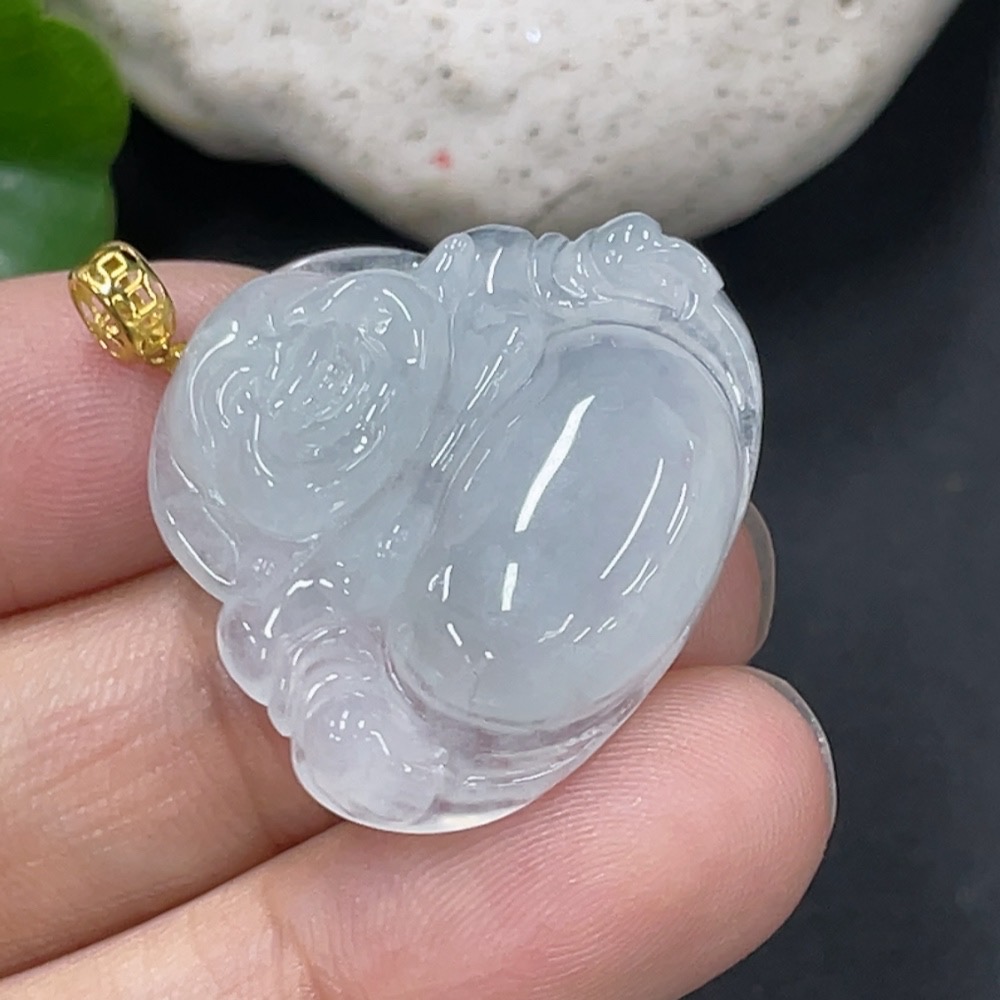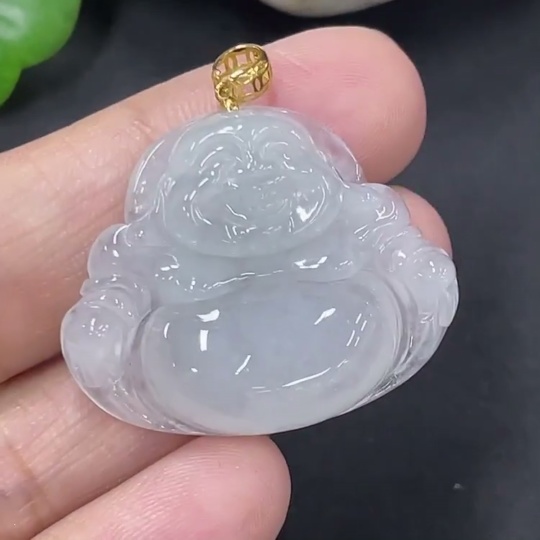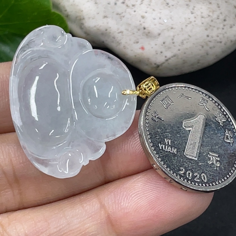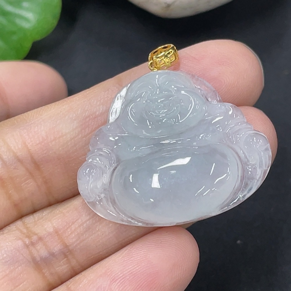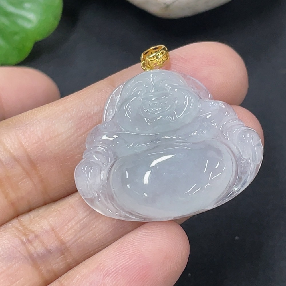 Jadeite Buddha Pendant 18K Gold Total Weight Approx. 5.9g