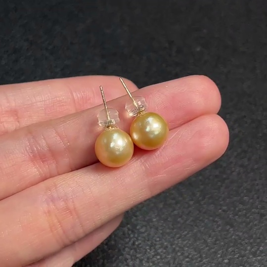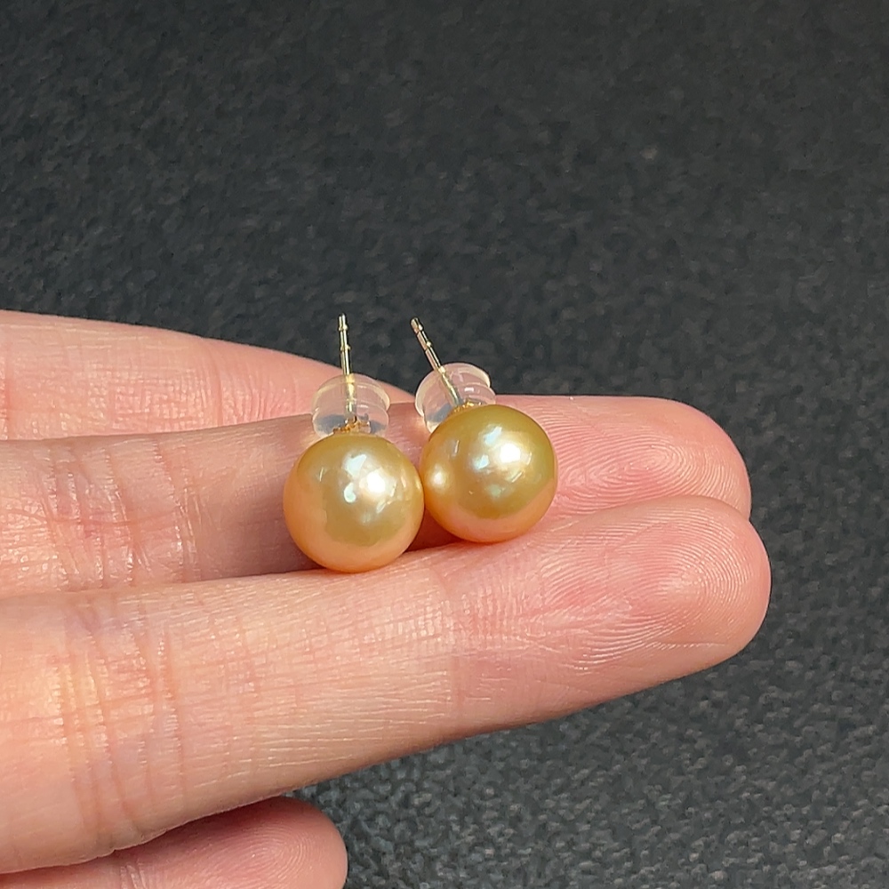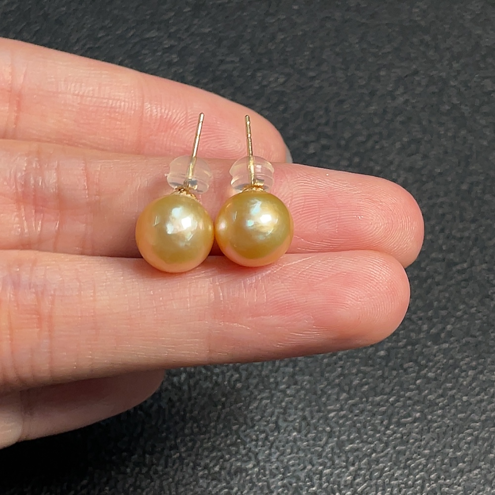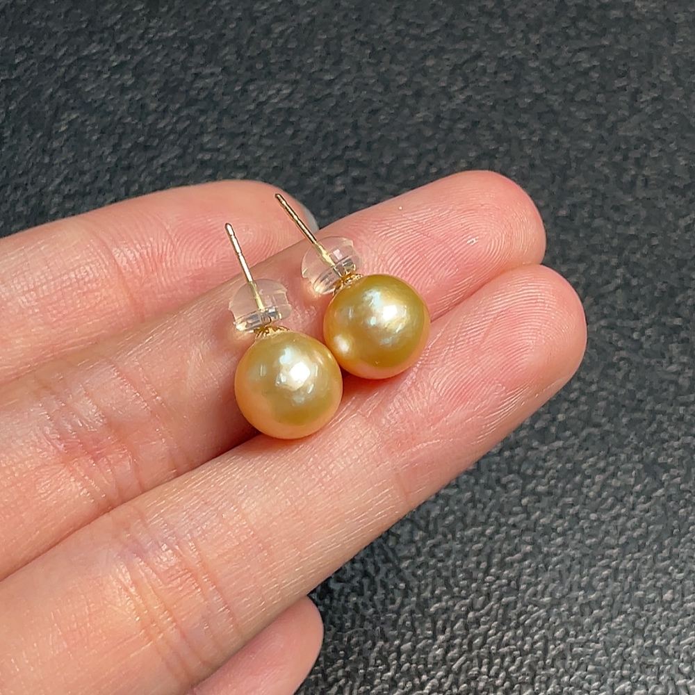 18K Sea Water Pearl Earrings, Color Origin Undetermined, Total Weight Approx. 2.55g, Size About 9.3mm