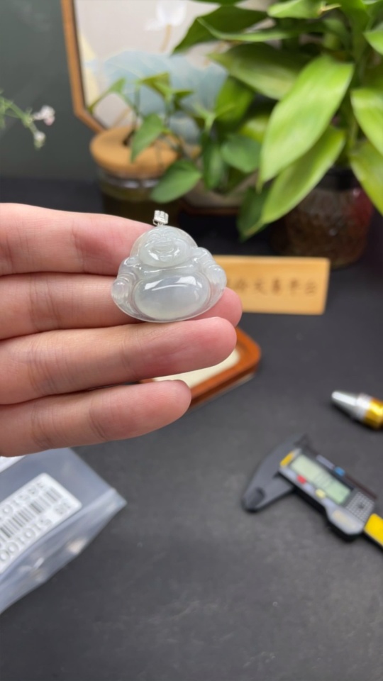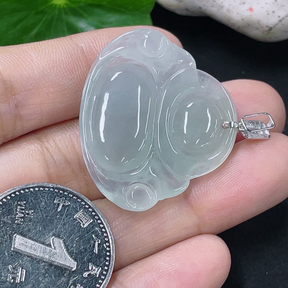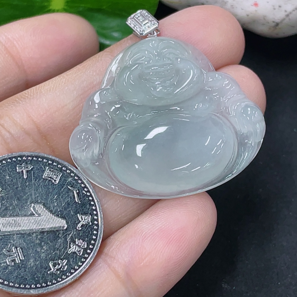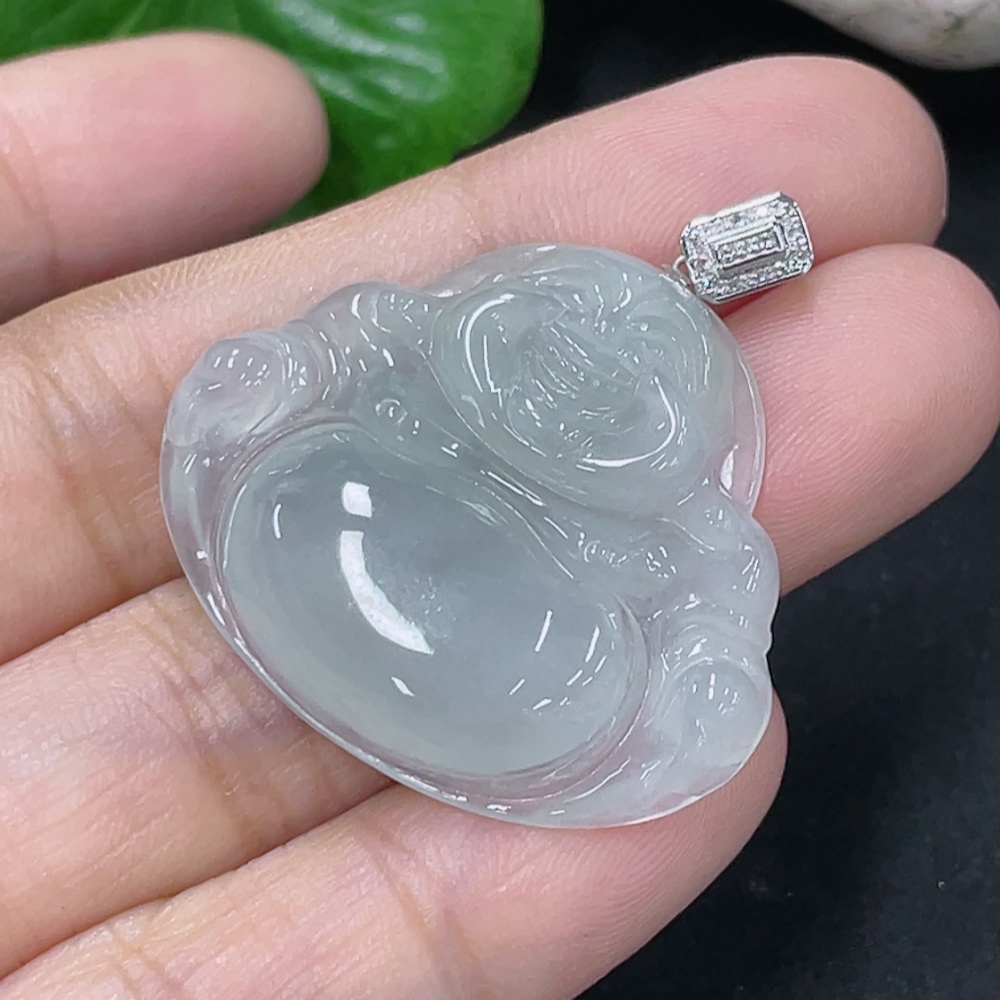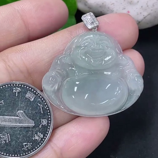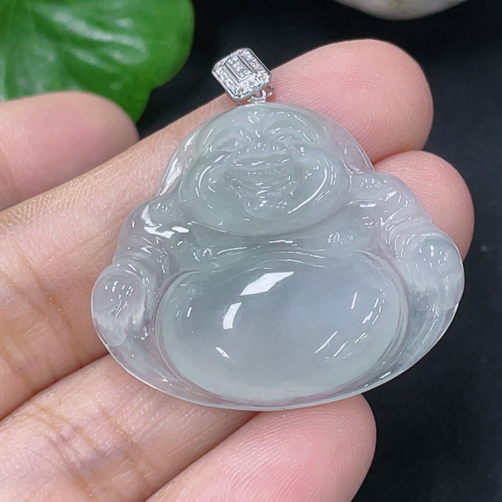 Jadeite Buddha Pendant with 18K Gold Clasp and Diamond Accents, Total Weight Approximately 6.26g