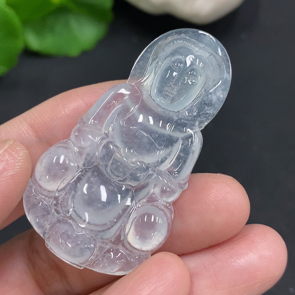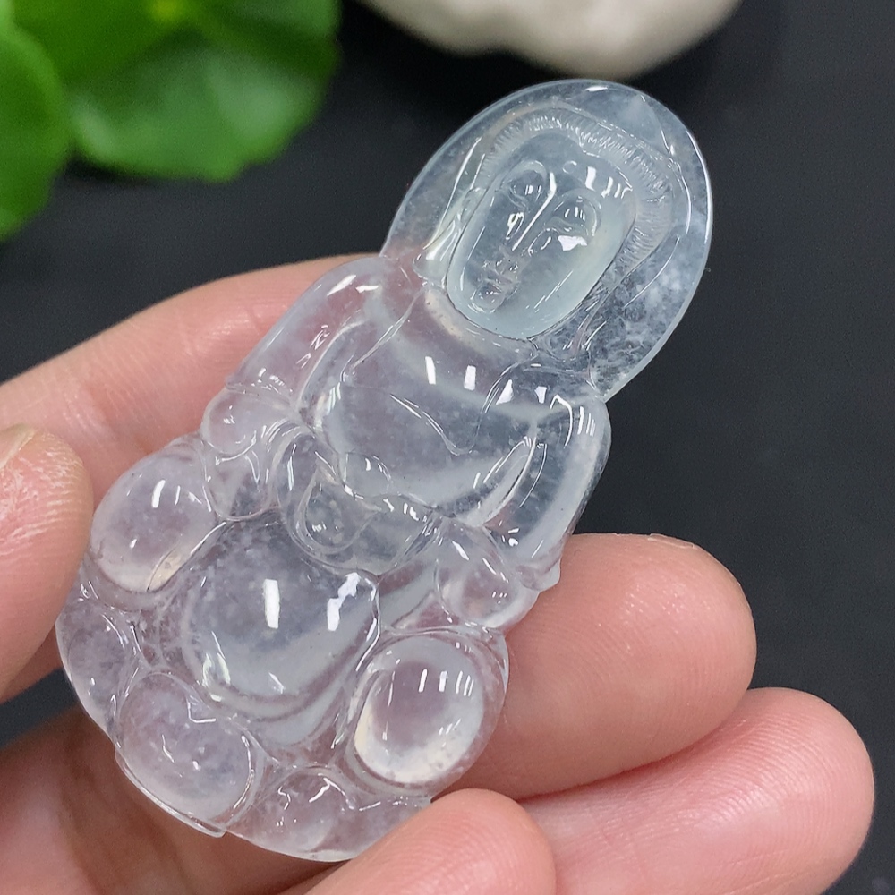 Jadeite Guanyin Pendant, Total Weight Approximately 8.9g