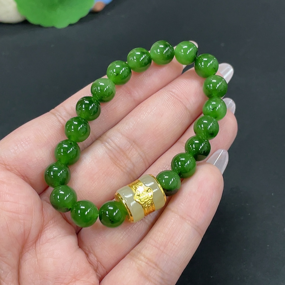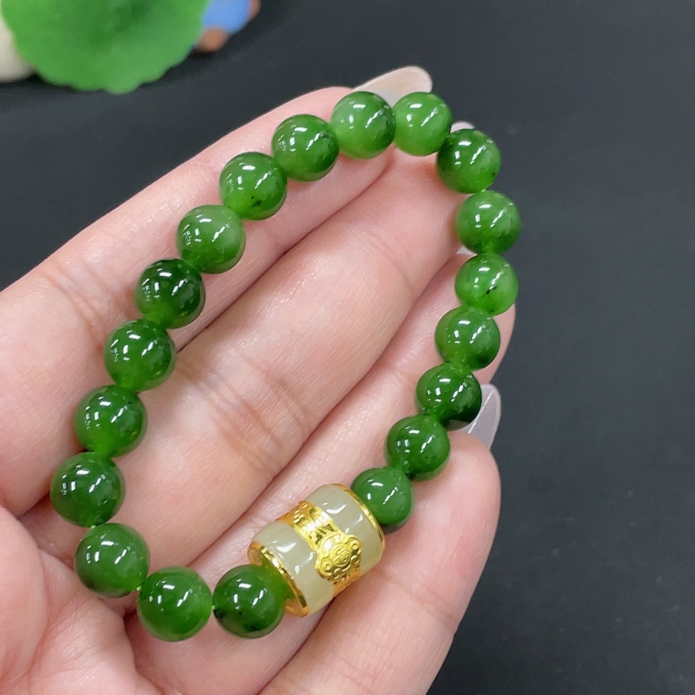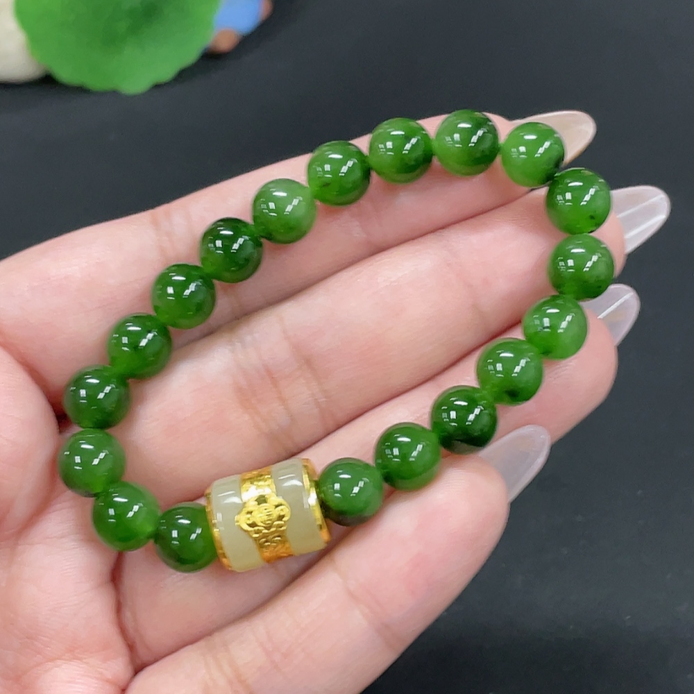 Hetian Jade Bracelet, Approx. 7.7mm, No Stamp, Gold Content 89%, Total Weight Approx. 17g