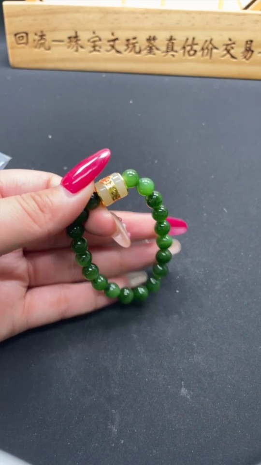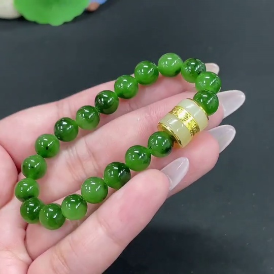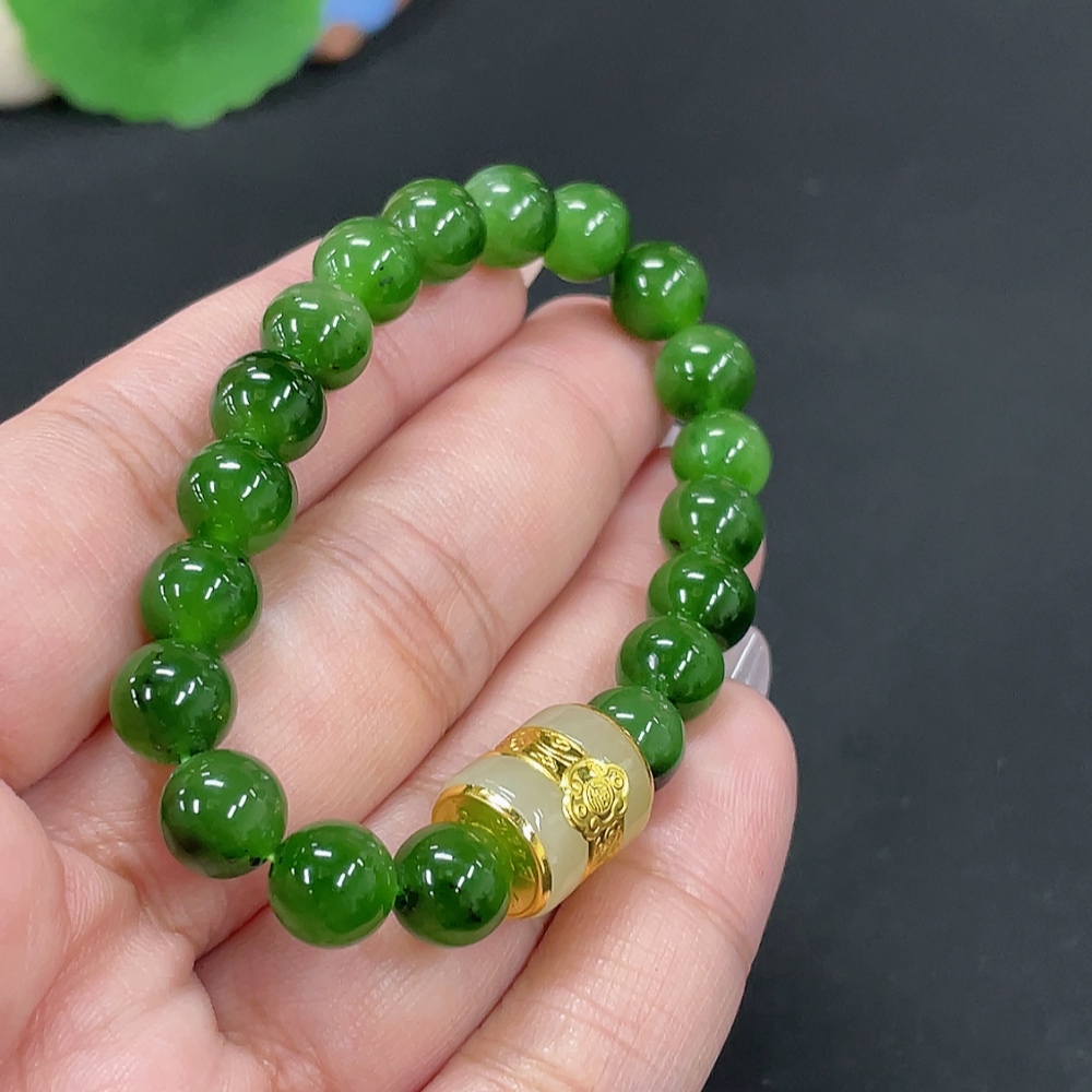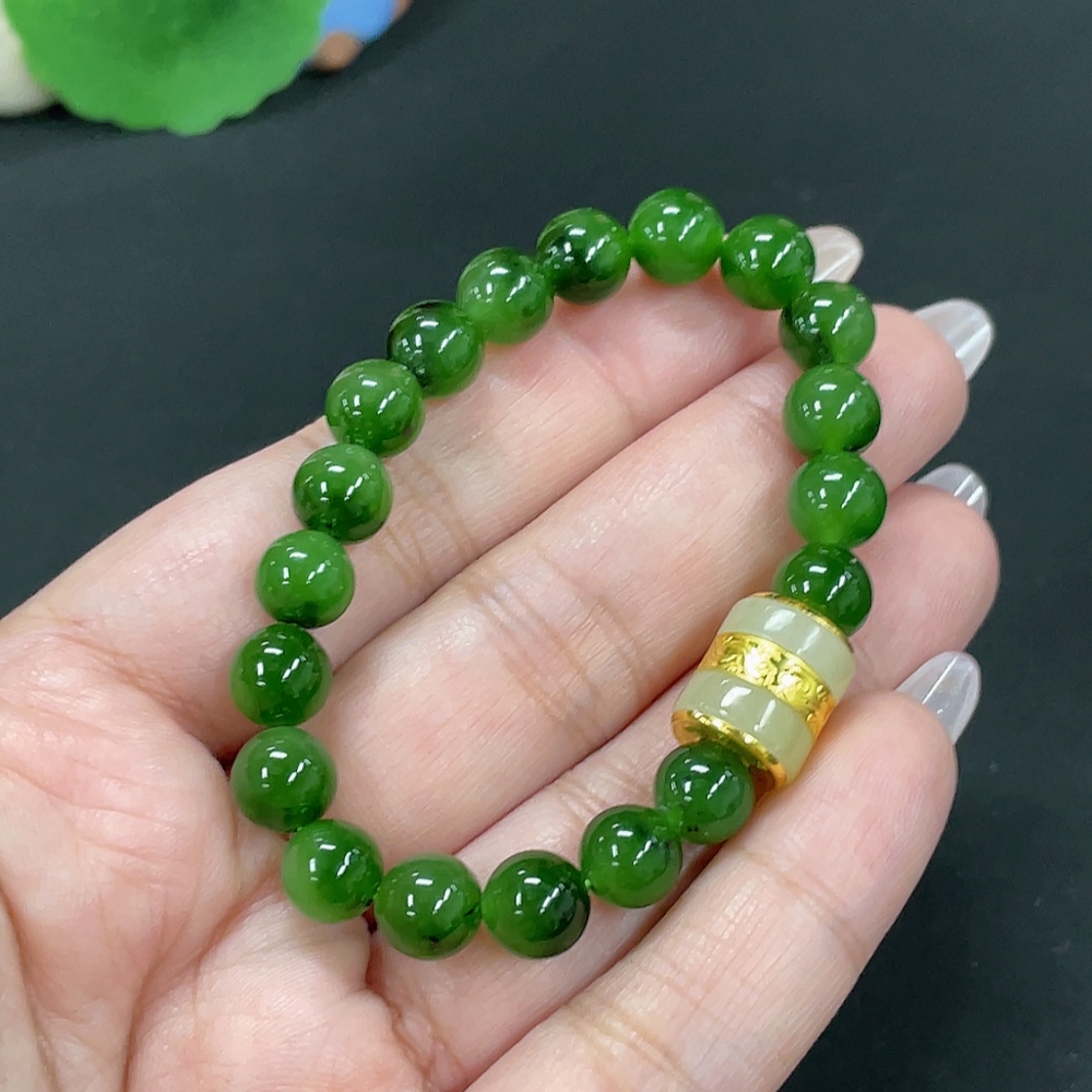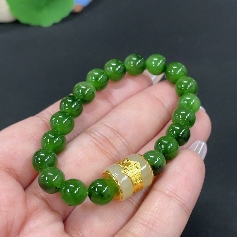 Hetian Jade Bracelet, Approx. 7.7mm, No Stamp, Gold Content 89%, Total Weight Approx. 17g