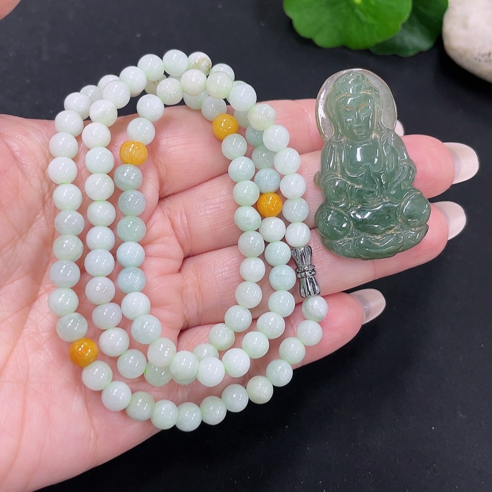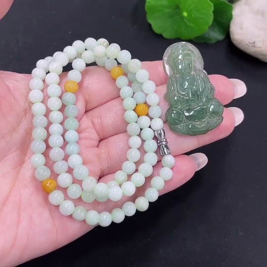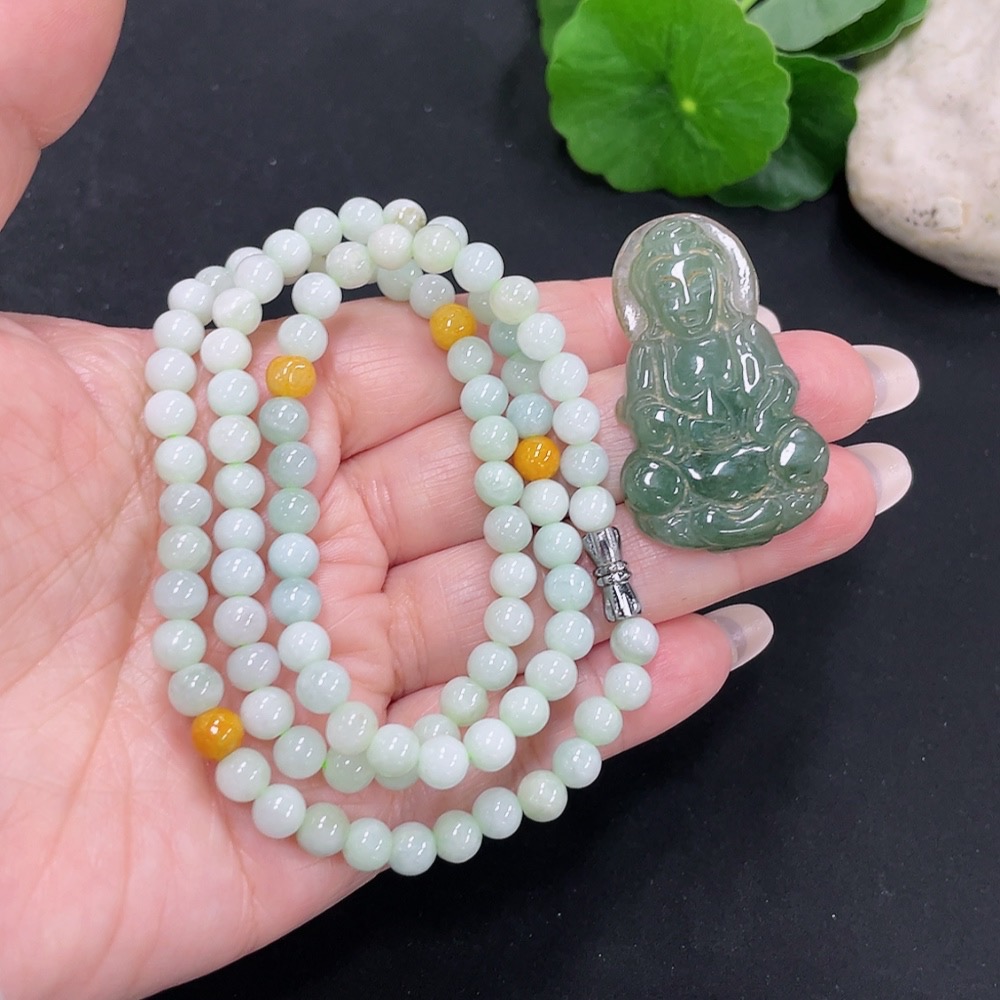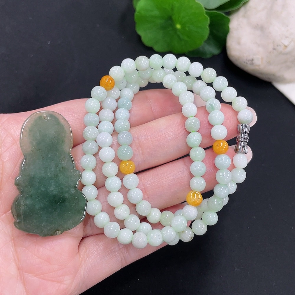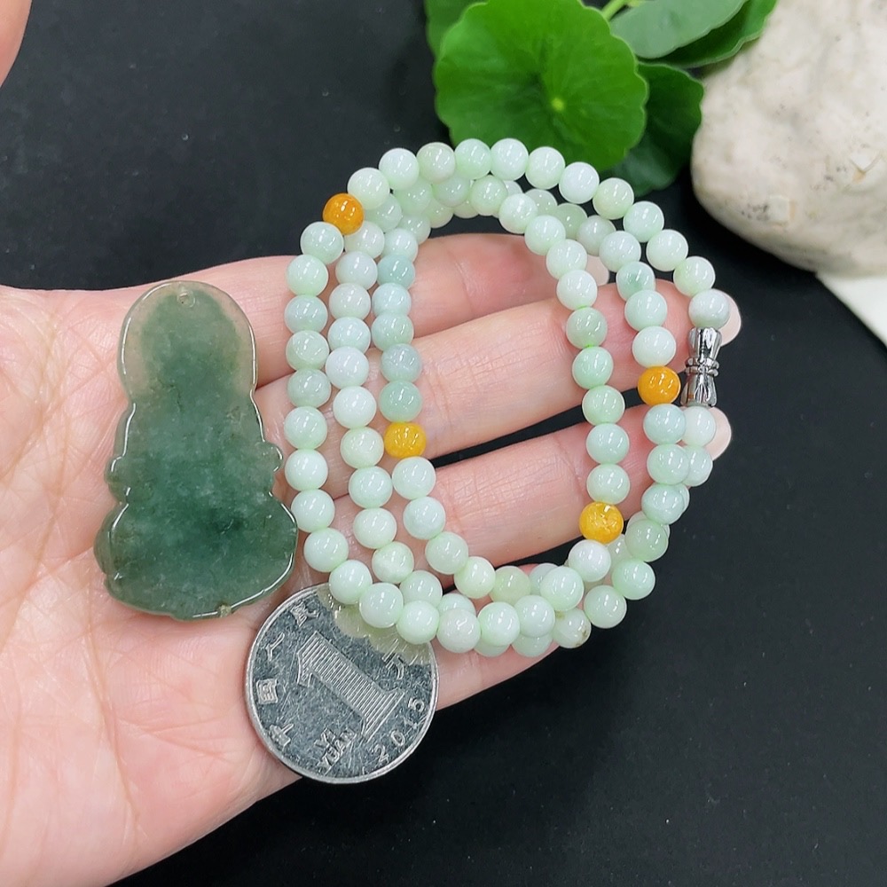 Jadeite Bead Necklace + Pendant Sell as a Lot (Non-Gold Inlaid)