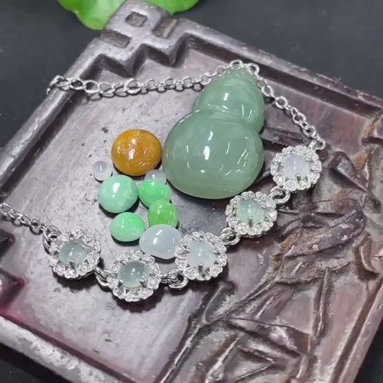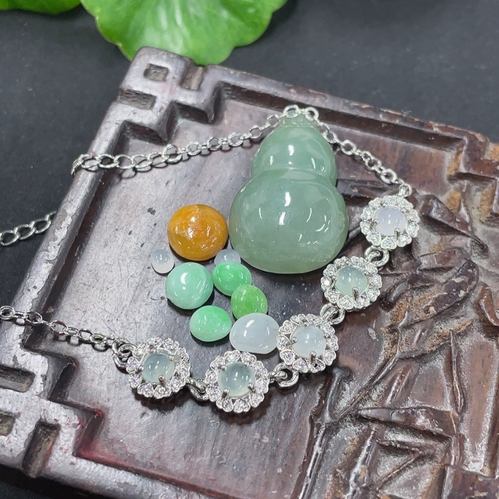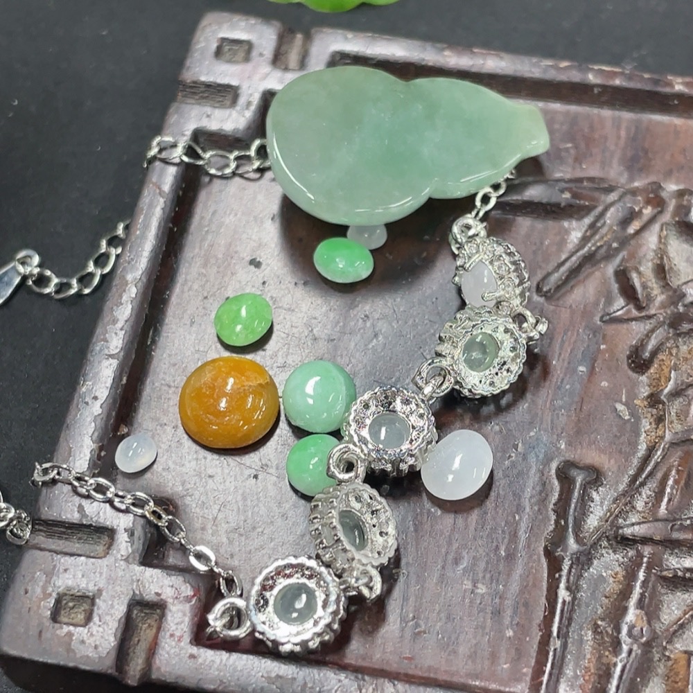 Jadeite Pendant + Bracelet + Cabochon Sell as a Lot (Non-Gold Inlaid)