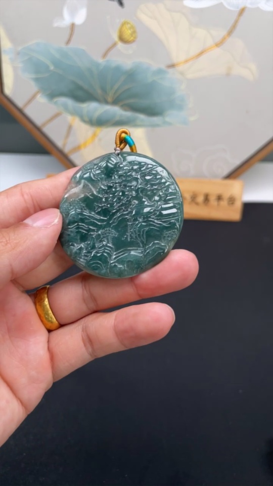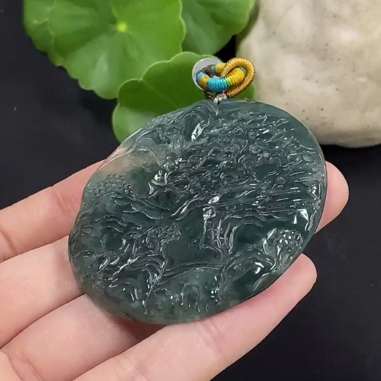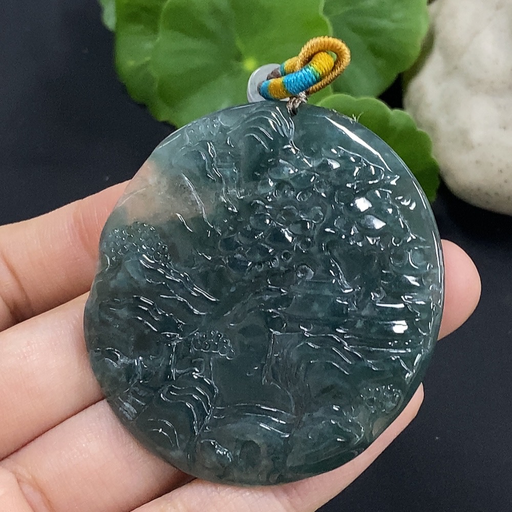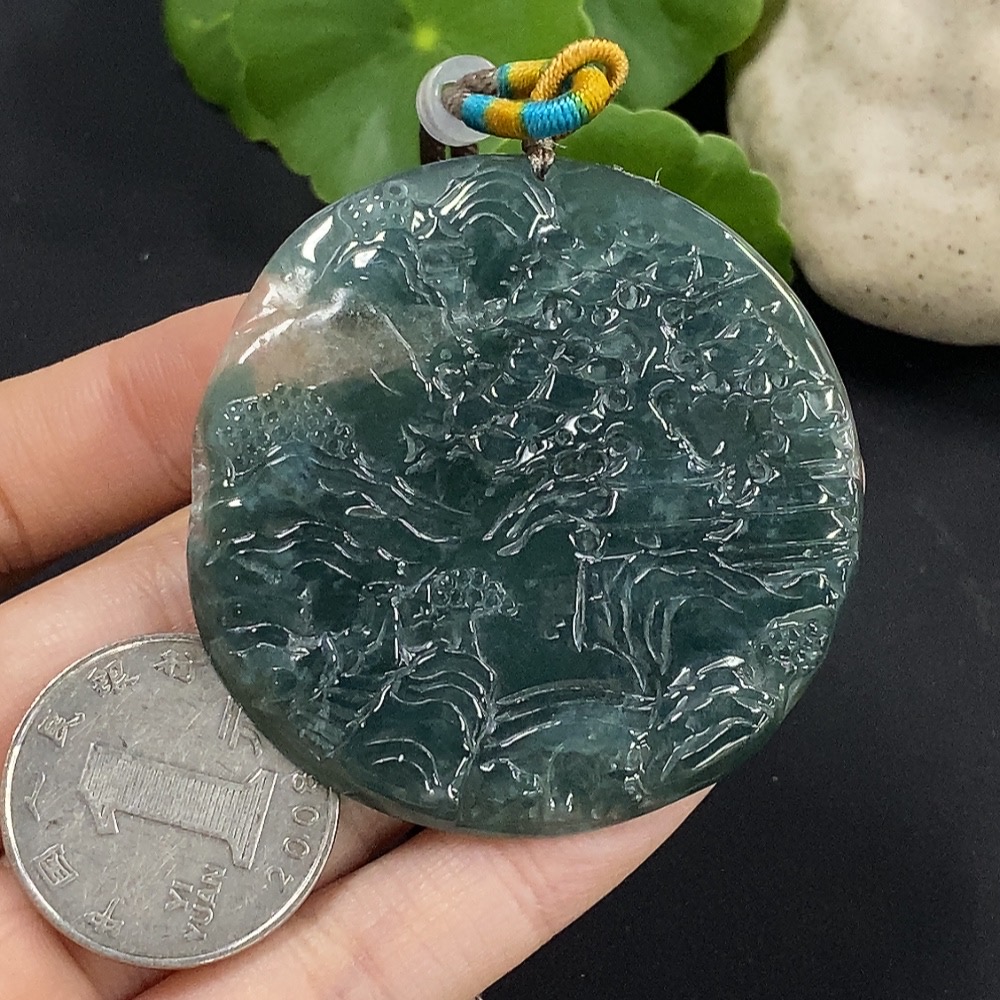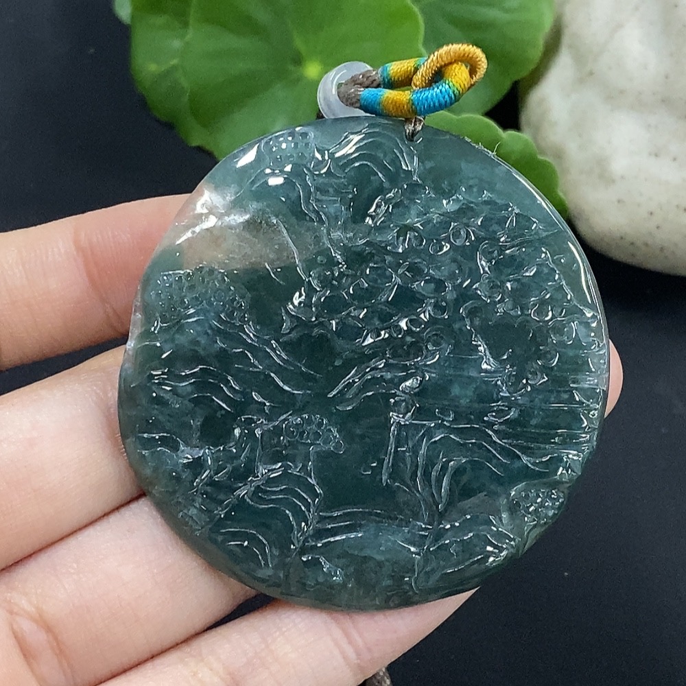 Jadeite Landscape Pendant with Non-Grade A Beads, Total Weight Approximately 25.65g