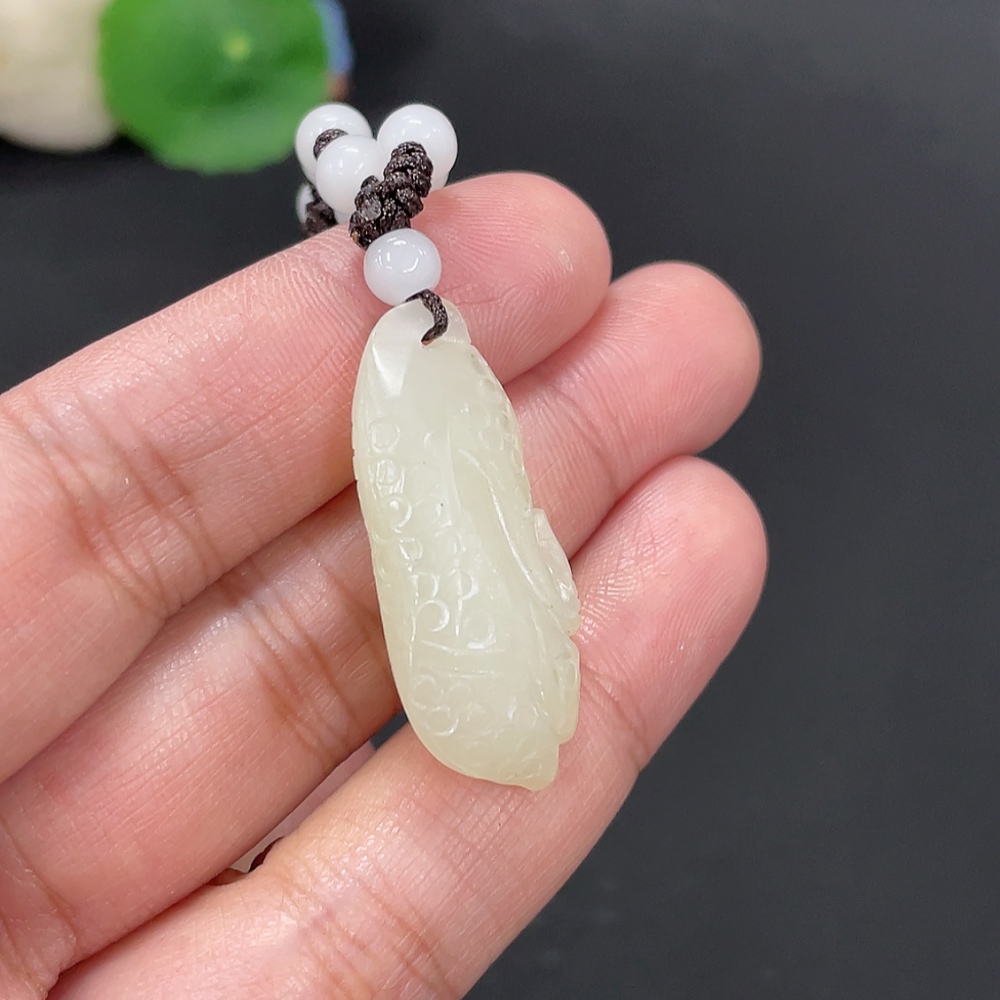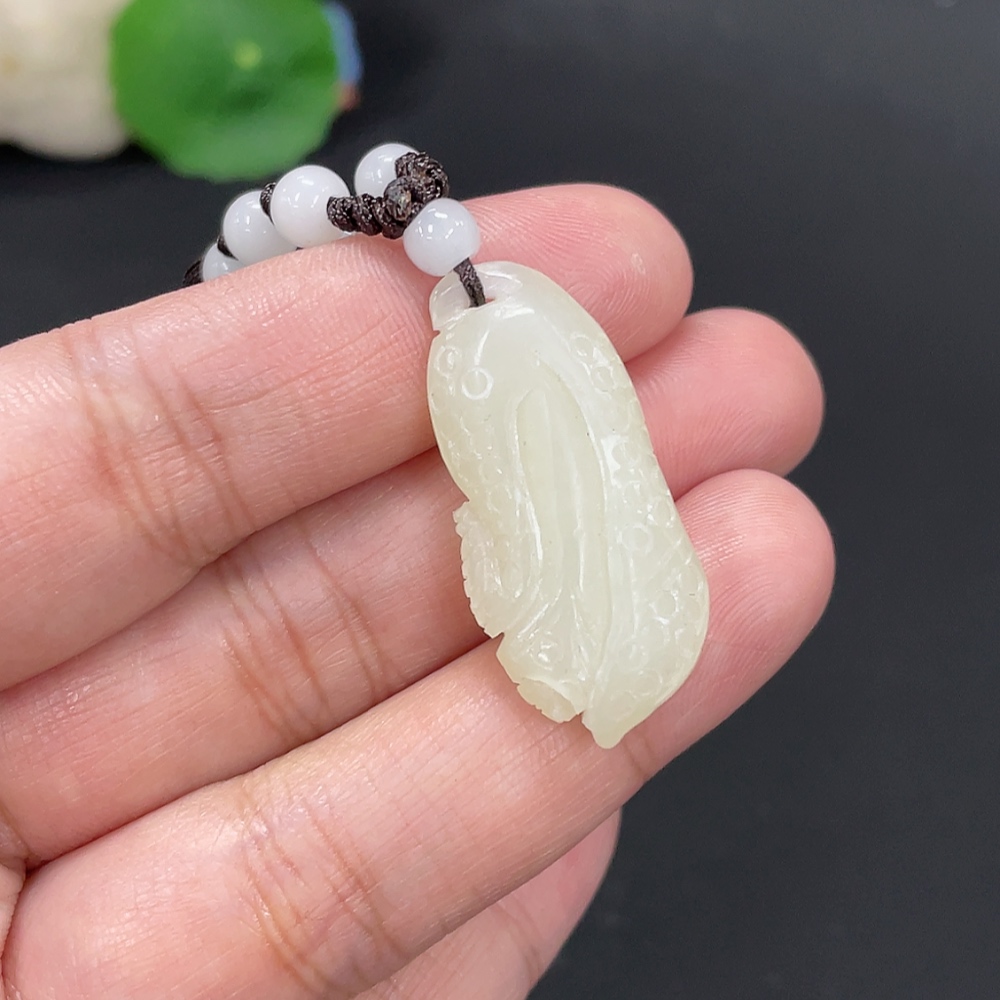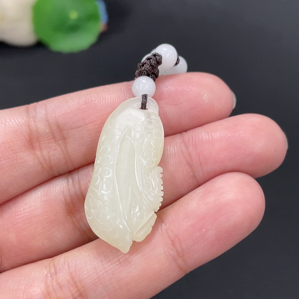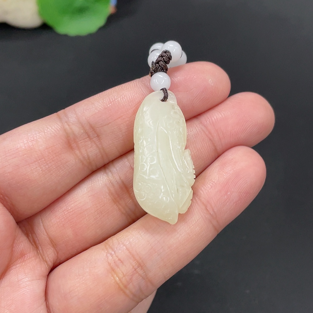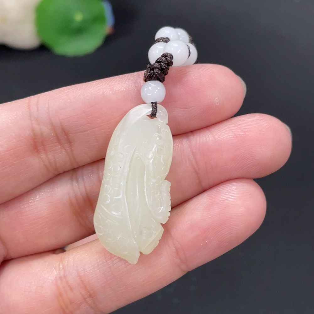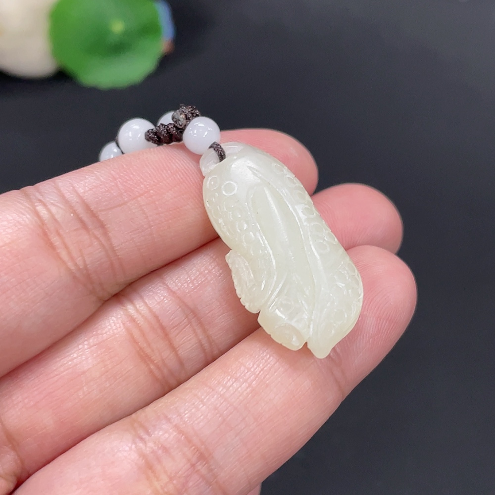 Hetian Jade Pendant, Cabbage, Total Weight Approx. 9g (including rope), Beads Not Hetian Jade