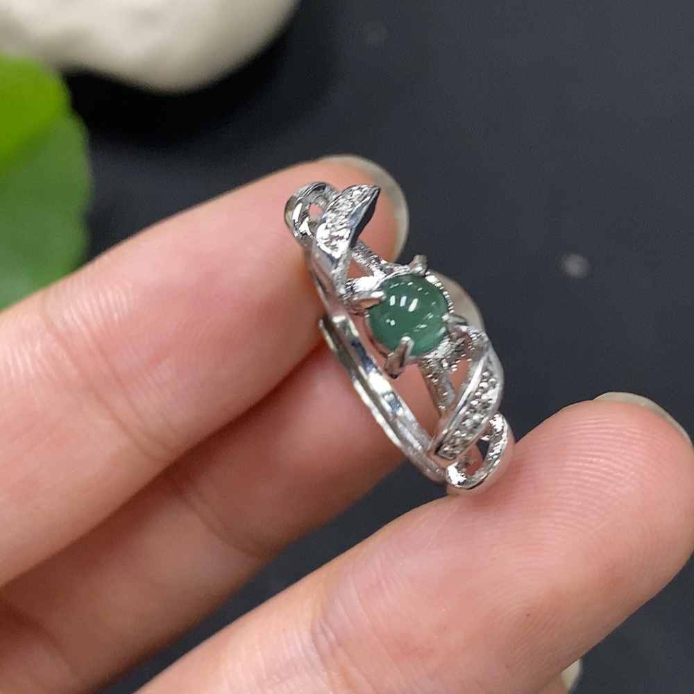 Jadeite Inlaid Piece Non-Gold Adjustable Total Weight Approx. 2.01g